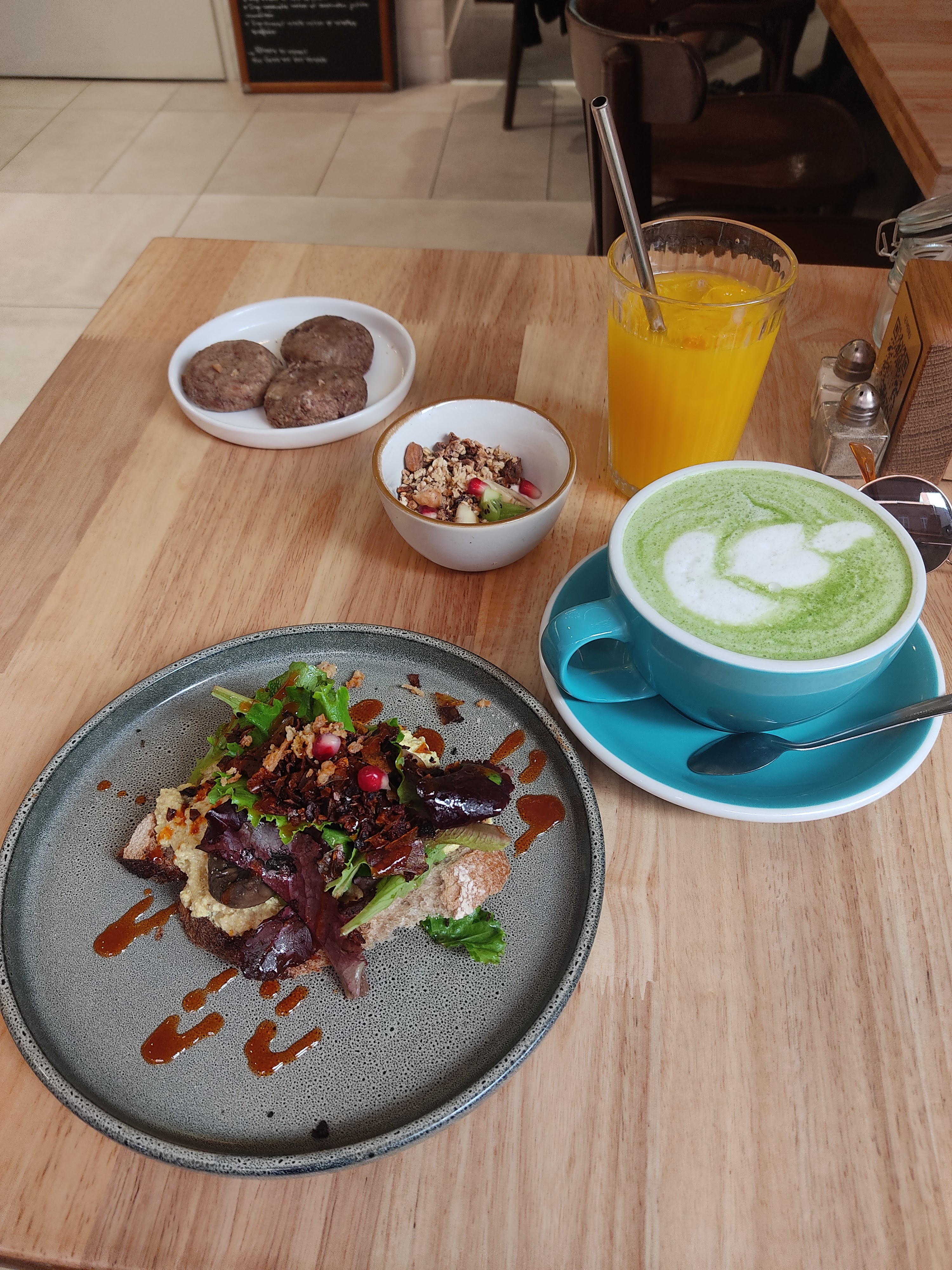 Super petit café végétalien, personnel accueillant et plats salés et sucrés excellents, en plus d’être très joliment présentés <3 5/5 sur tout ce qu’on a pris ce jour là ! En revanche dommage qu’on n’ait pas eu le droit de sortir un ordi, même si je comprends qu’à l’heure du brunch iels aient peur qu’on reste trop longtemps. Juste un peu frustrant pour nous de pas pouvoir bosser une heure tranquille ici.