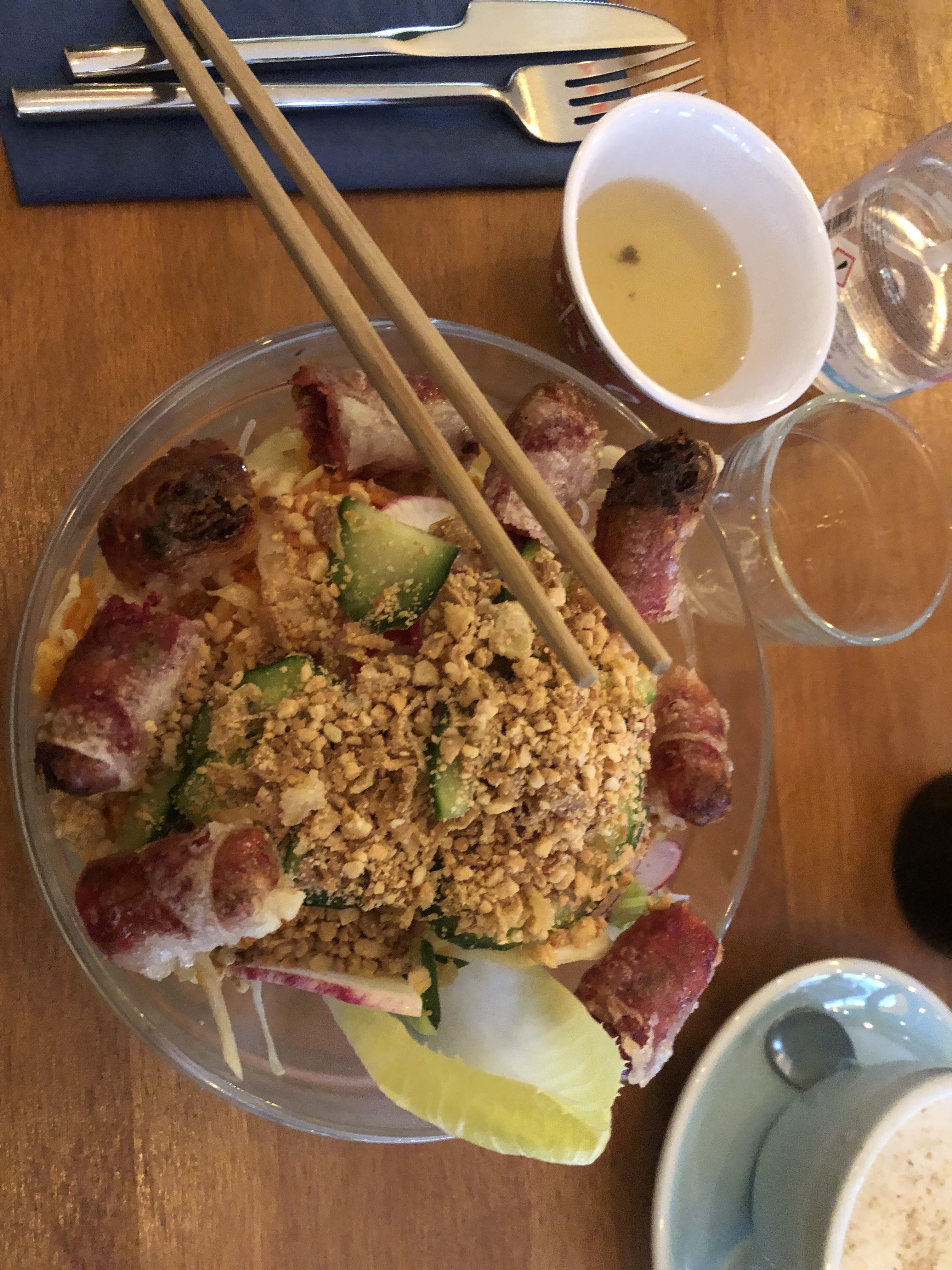 Rien d’exceptionnel, manque criant de saveurs pour un restaurant végétarien. Des nems si petits que je me demande comment on peut appeler ça des nems ! Appelez ça des mininems plutôt ! Serveur qui a apparement du mal à sourire, c’est bien dommage…. Mayonnaise (qui est bonne du reste car probablement maison) mais en supplément ! Faut pas pousser ! Il a fallu réclamer du pain aussi, en France, le pain c’est quand même la base ! Bref, nous ne reviendrons plus mais je pense que nous sommes tombés sur un mauvais jours vu les autres commentaires plutôt positifs !