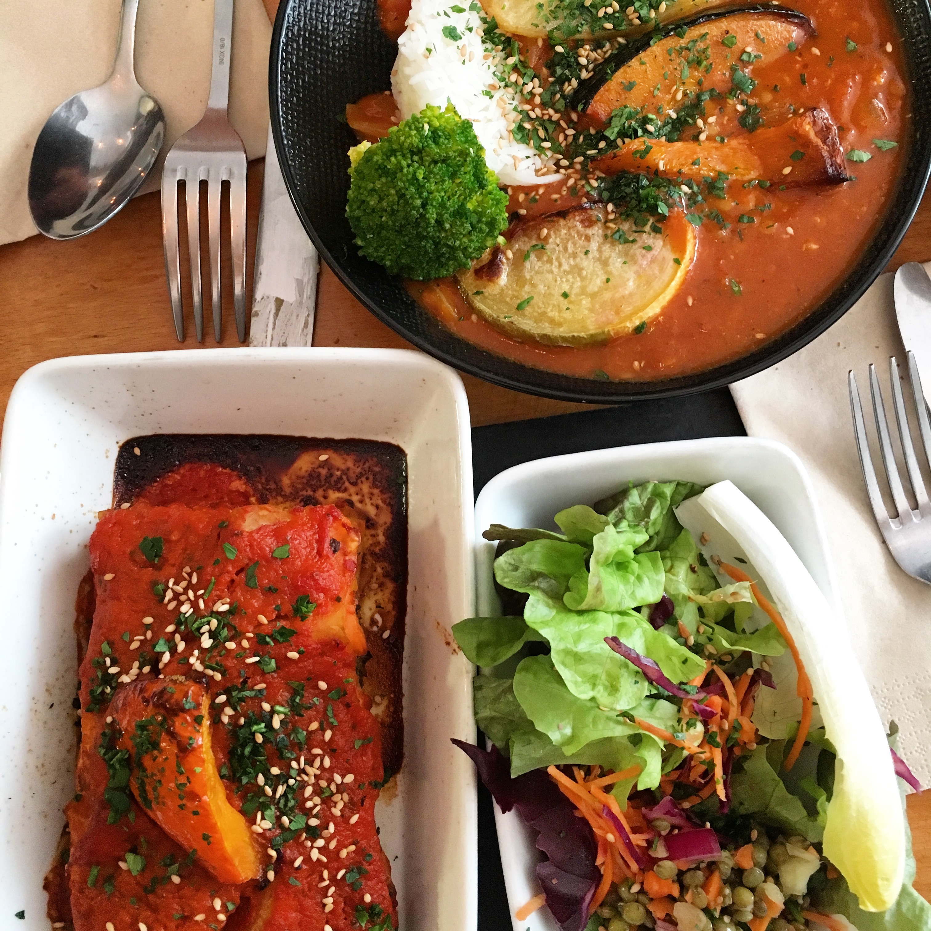 Cuisine délicieuse, saine, végétarienne, écologique et créative. Nous avons trouvé que c'était délicieux. Carte courte – dans un style « cantine » chaleureux Suggestion d'amélioration : sel, poivre, etc. sur la table ;)