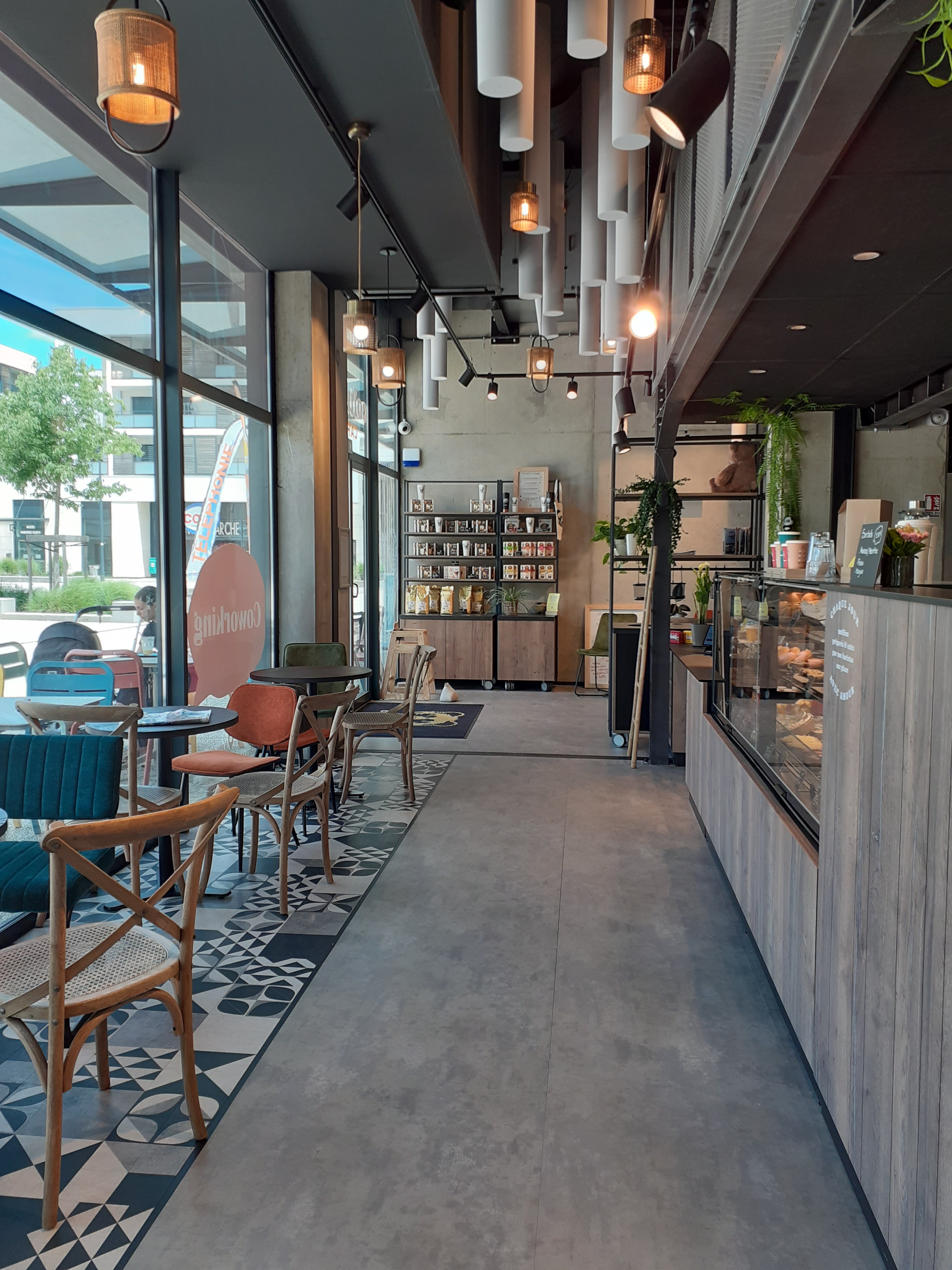 Ambiance calme dans un joli cadre, avec choix de places à table, en bar, terrasse, mezzanine, ou même salles de réunion. Très appréciable d’avoir une enseigne vegan à Bourgoin-Jallieu. Cependant, à cause de son alliance à Colombus Cafe, pas très claire lors d’une première visite, il est facile de se tromper et commander par mégarde quelque chose hors de son régime alimentaire. C’est ce qui m’est arrivé lors de ma première visite. D’extérieur, les pancartes des deux enseignes sont chacune au dessus d’une entrée différente du café, ne montrant pas qu’il s’agit d’un seul et même lieu. Une fois à l’intérieur, seul une écriture discrète blanche et malheureusement pas à hauteur des yeux indique que les commandes Copper Branch se font à droite, sur écrans tactiles, là où il n’y a généralement aucun membre de l’équipe sauf si client à servir, et où la luminosité est moins bonne que le côté Columbus où il est plus instinctif de se tourner, surtout pour une première visite où l’entièreté du lieu est nouveau est chaque coup d’oeil au café est une nouvelle information. Lors de ma deuxième visite j’ai pu donc apprécié le matcha froid au lait de coco que je recommande pour les amateurs de la boisson. Les horaires du côté Copper Branch du café sont également dommages. Pour une carte plus intéressante pour un en-cas ou goûter qu’un gros repas, je me vois bien plus souvent avoir l’envie de revenir quand seul le côté Colombus est encore ouvert, c’est à dire après 15h.