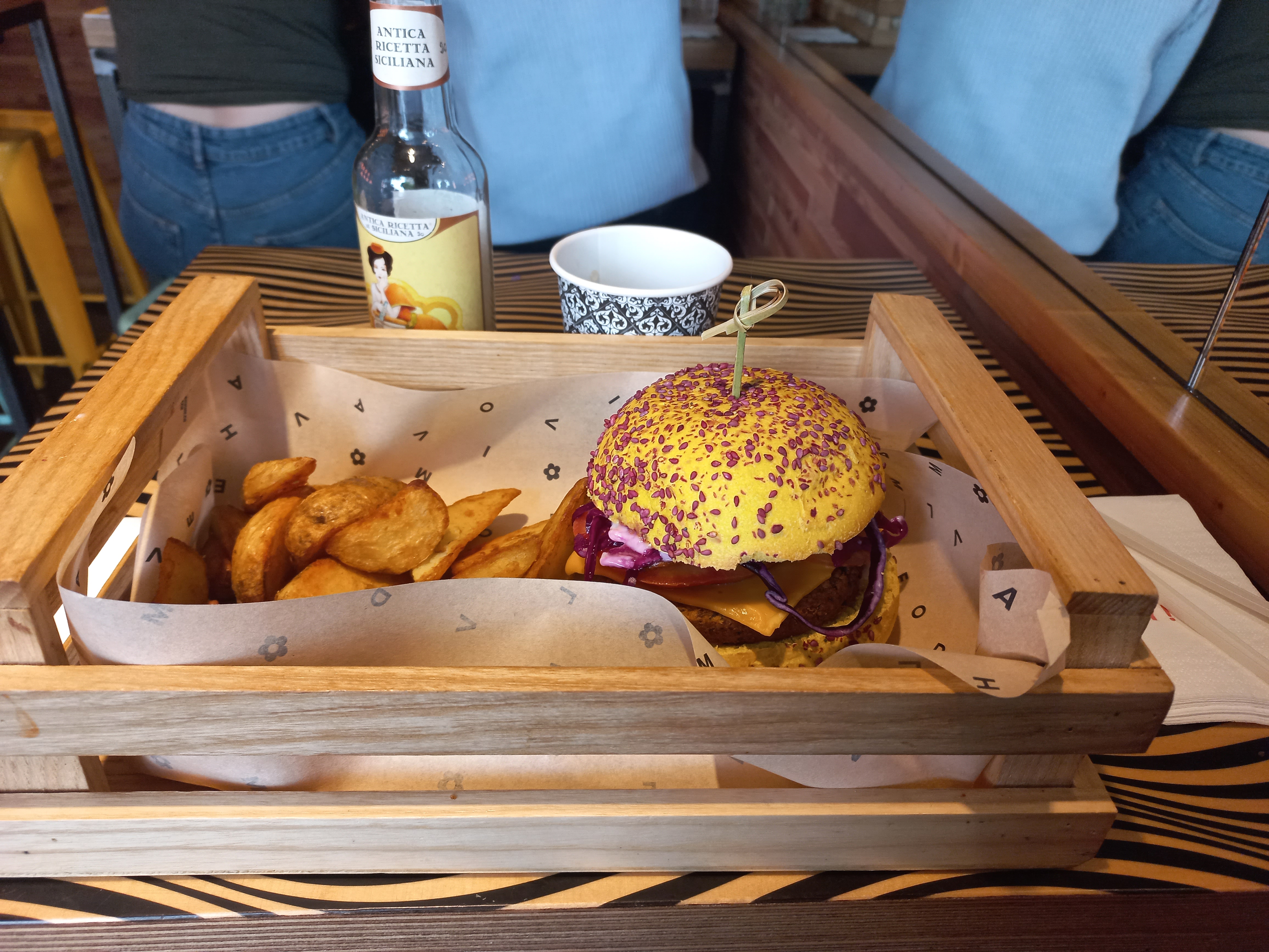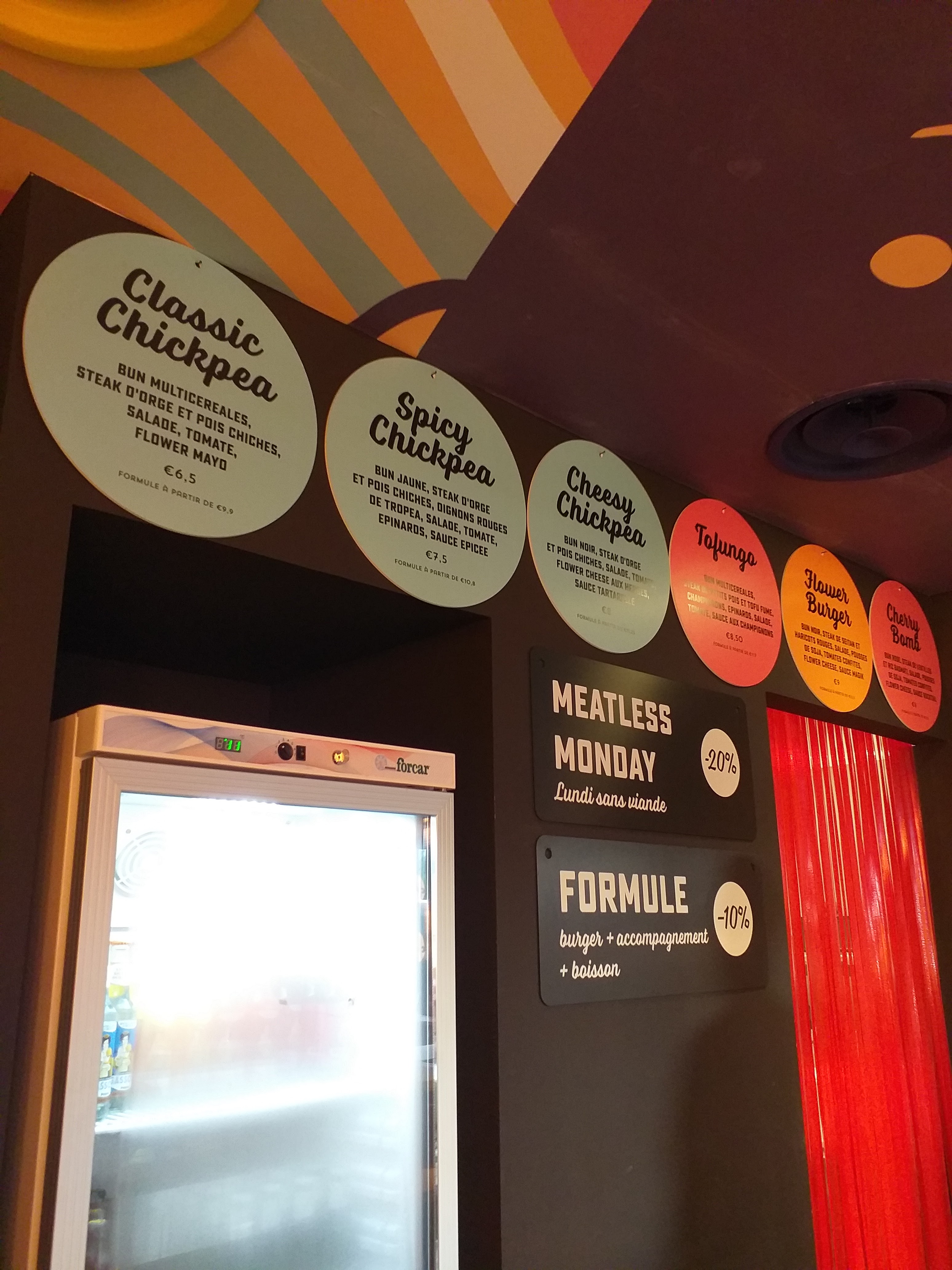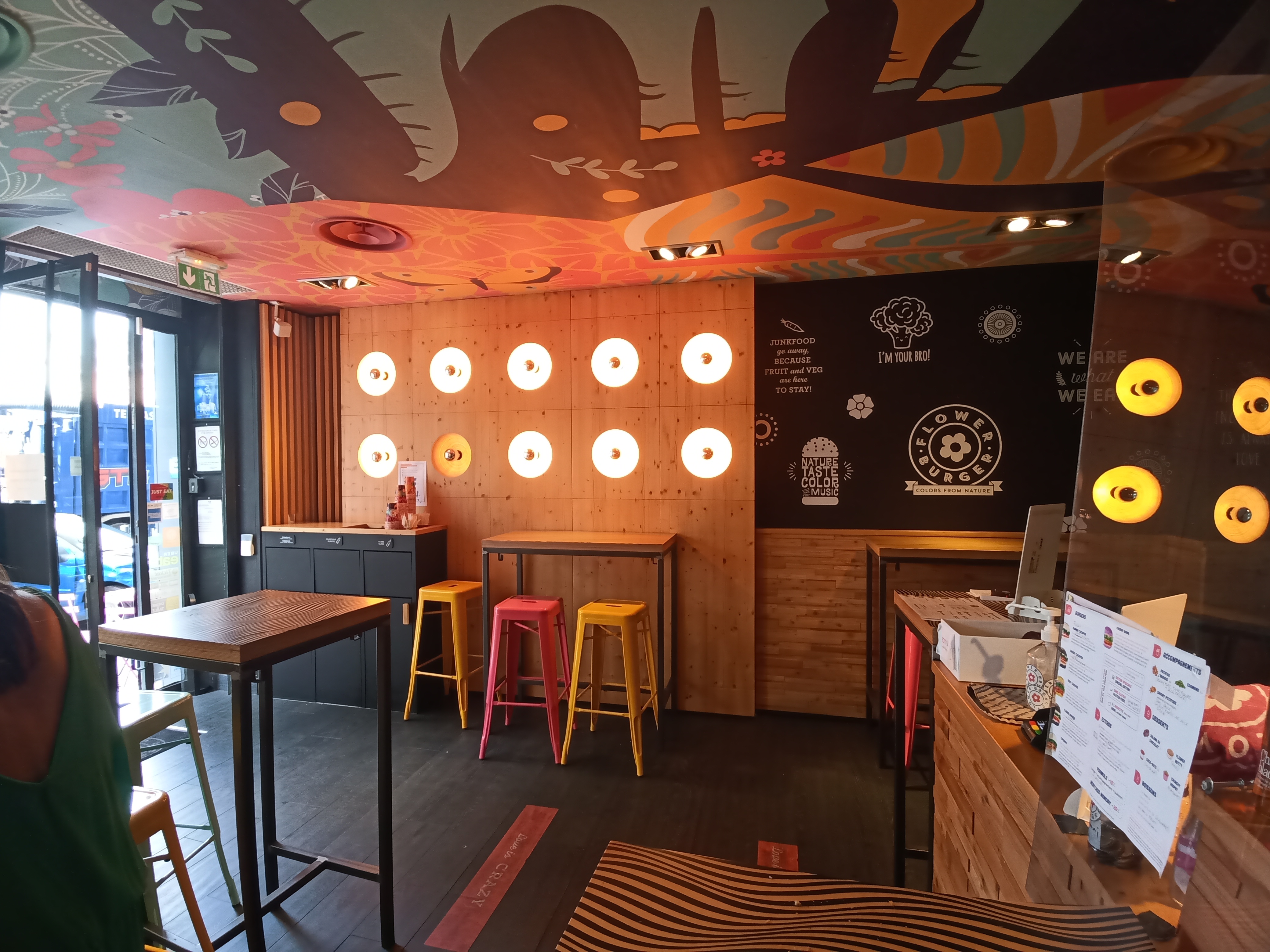 Un service sympathique pour des burgers végé colorés et de qualités. Aussi coloré que son restaurant qui plus est.