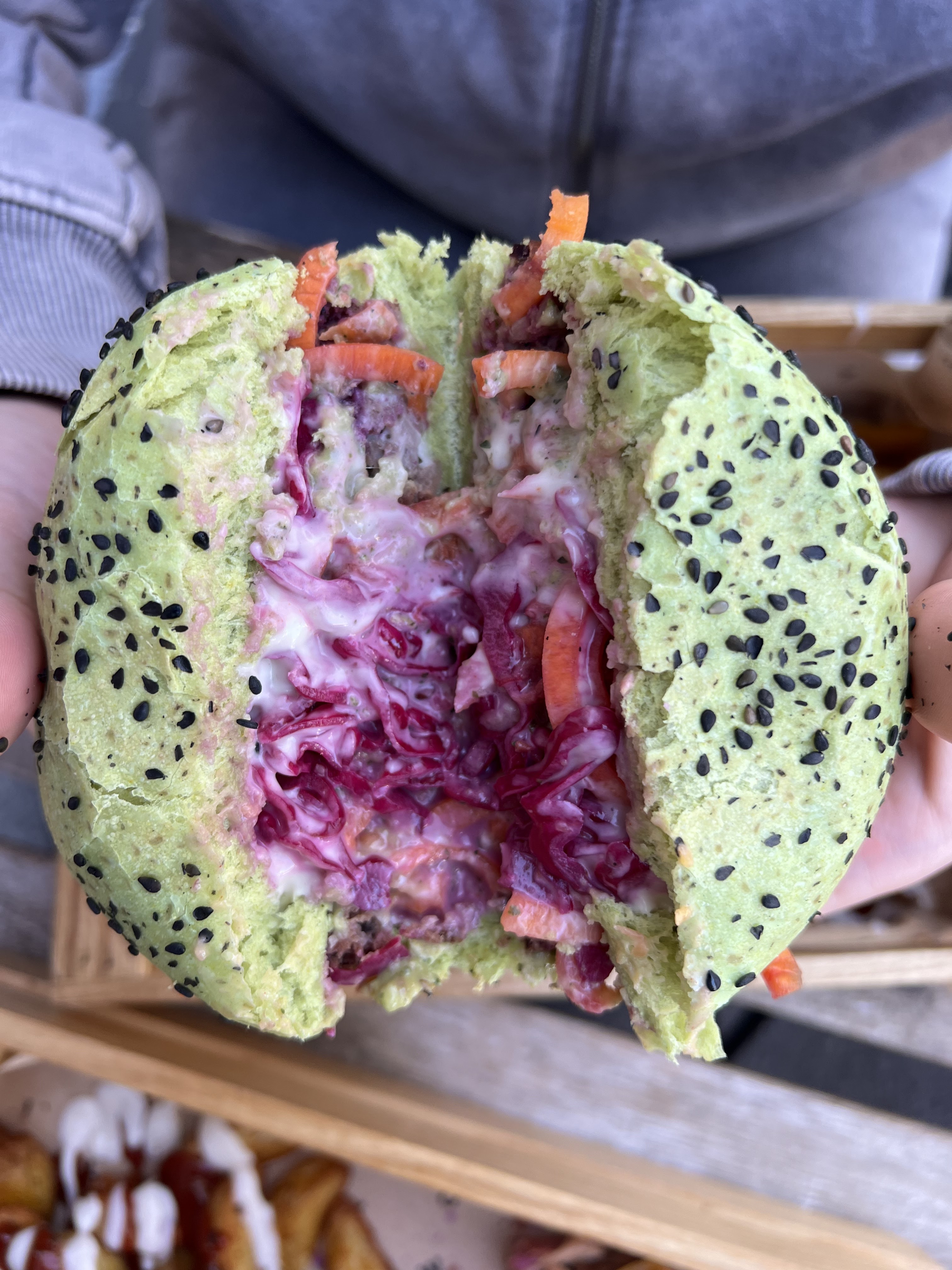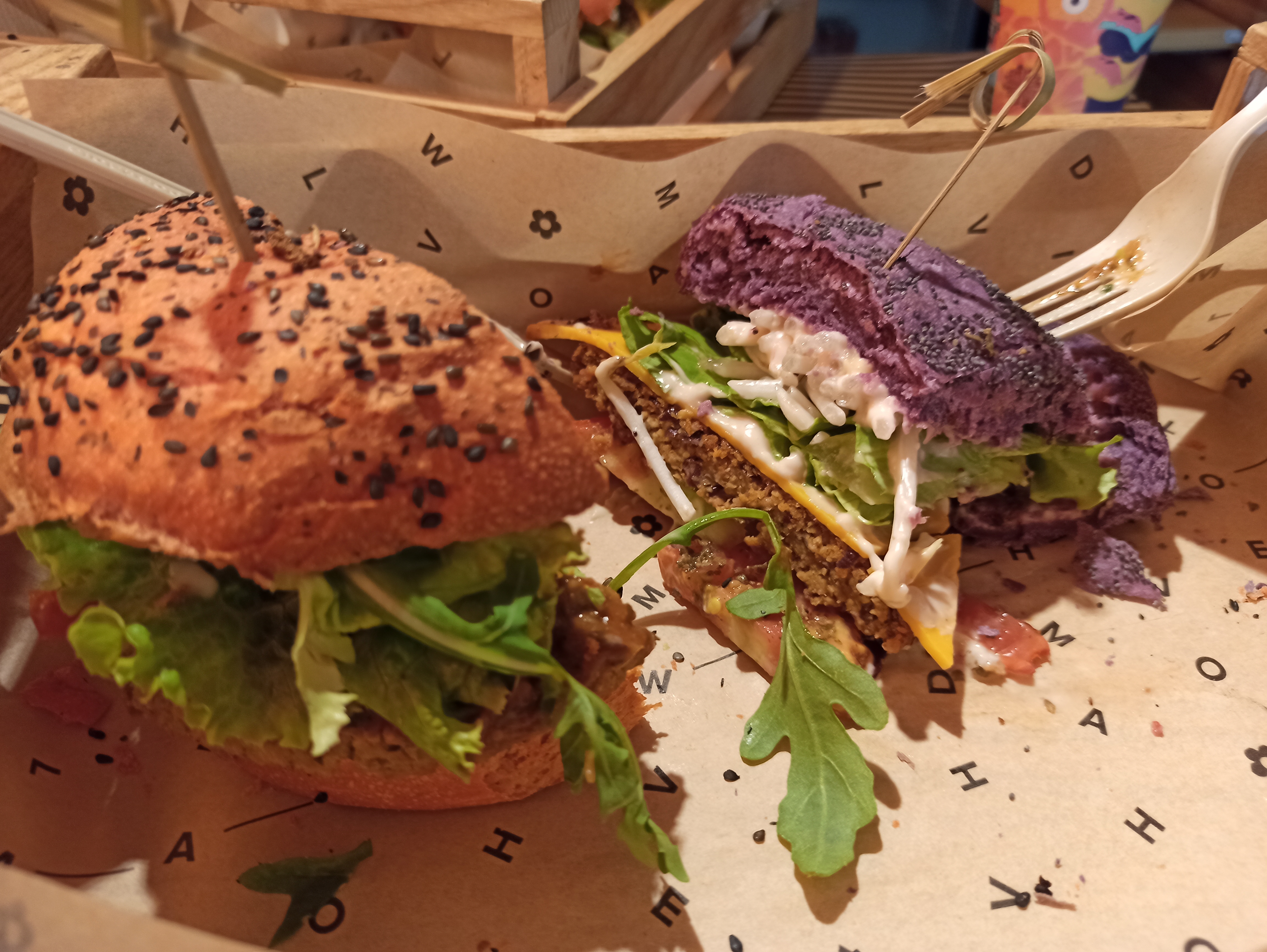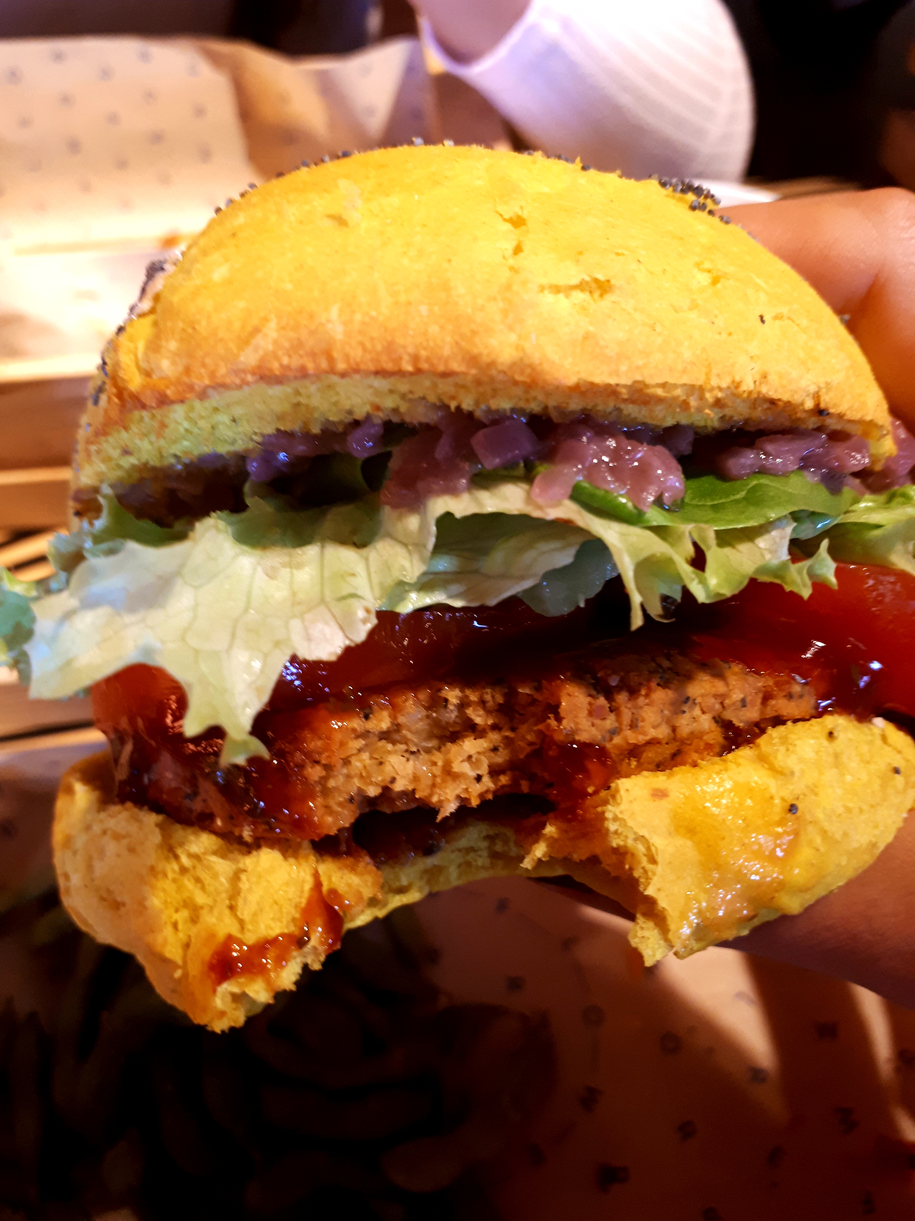 Pas mal du tout. Les pains du burger sont colorés et très bons (spiruline, curcuma, etc..). Tout est vegan.