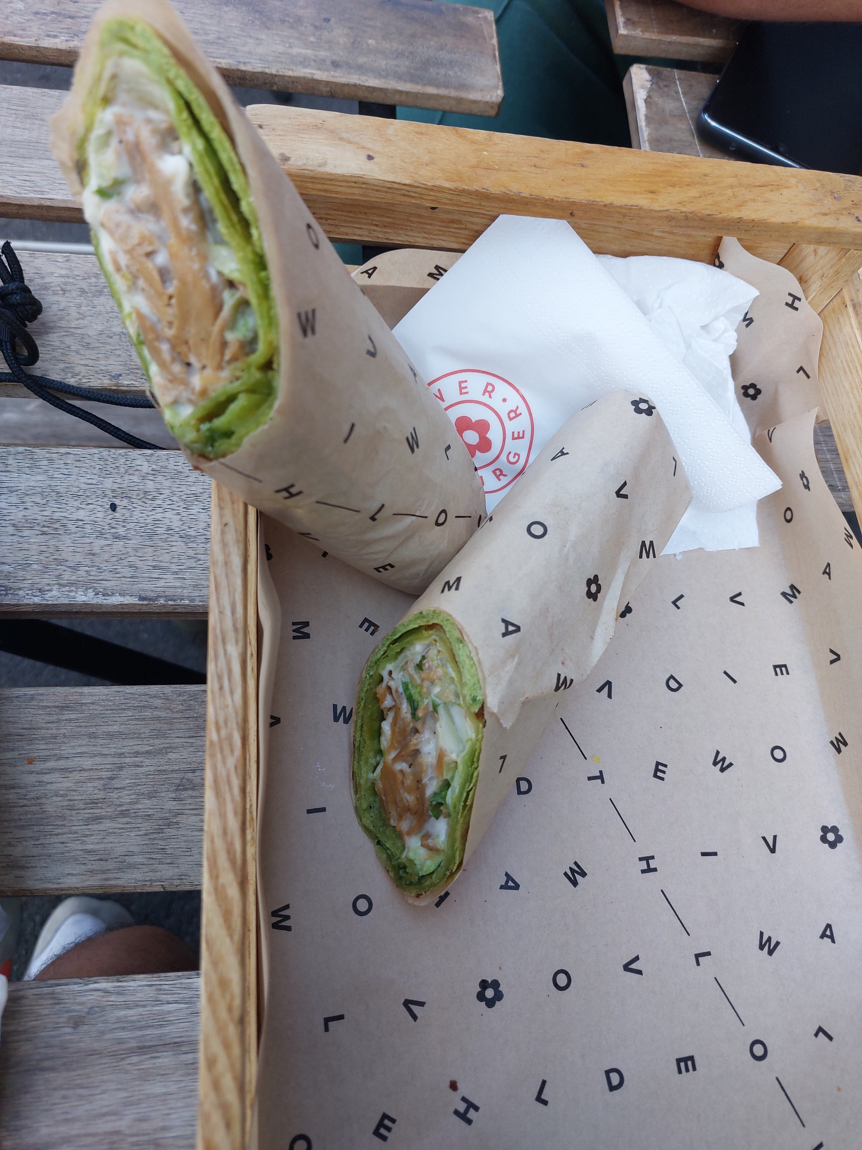 Nous avons choisi à emporter. Déjà aucun dechet plastique : bravo. Par ailleurs, les photos sont de pietre qualité et ne reflètent pas la qualité, le goût et la plus jolie présentation que nous avons eu à la base. Le goût est au top. Vegan. On a adoré vraiment ! Dommage nous ne sommes pas de Marseille sinon ce serait difficile de ne pas y manger chaque semaine !