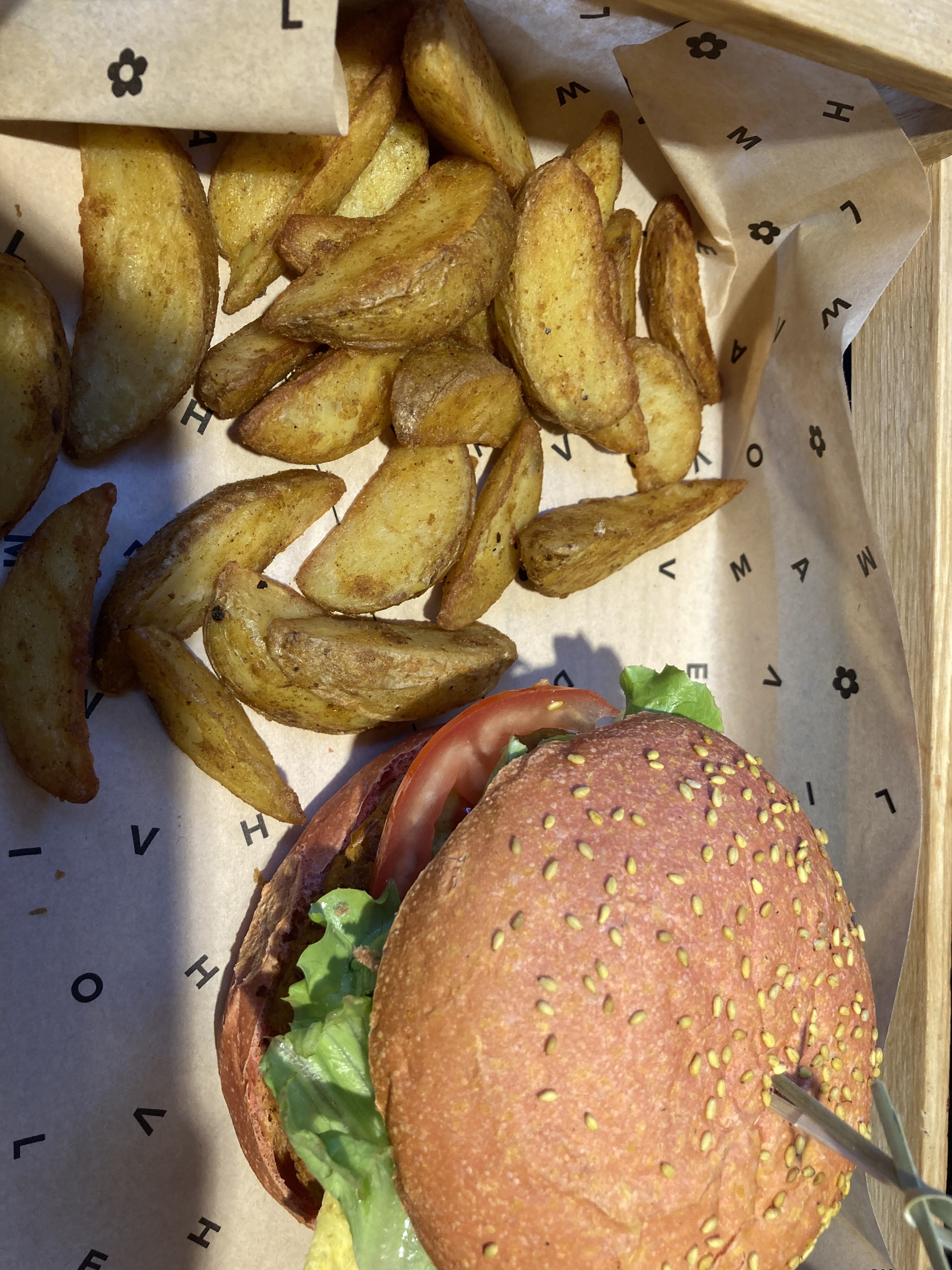 Très agréablement surprise ! Les burgers sont énormes et hyper bons. J’ai pris le flower burger et la sauce ressemble à celle du big mac hehe. Potatoes très bien assaisonnées et salami au choco hyper original 😋 tout a très bien supporté la livraison Deliveroo. merci ! Emballages eco friendly, bravo rien à redire