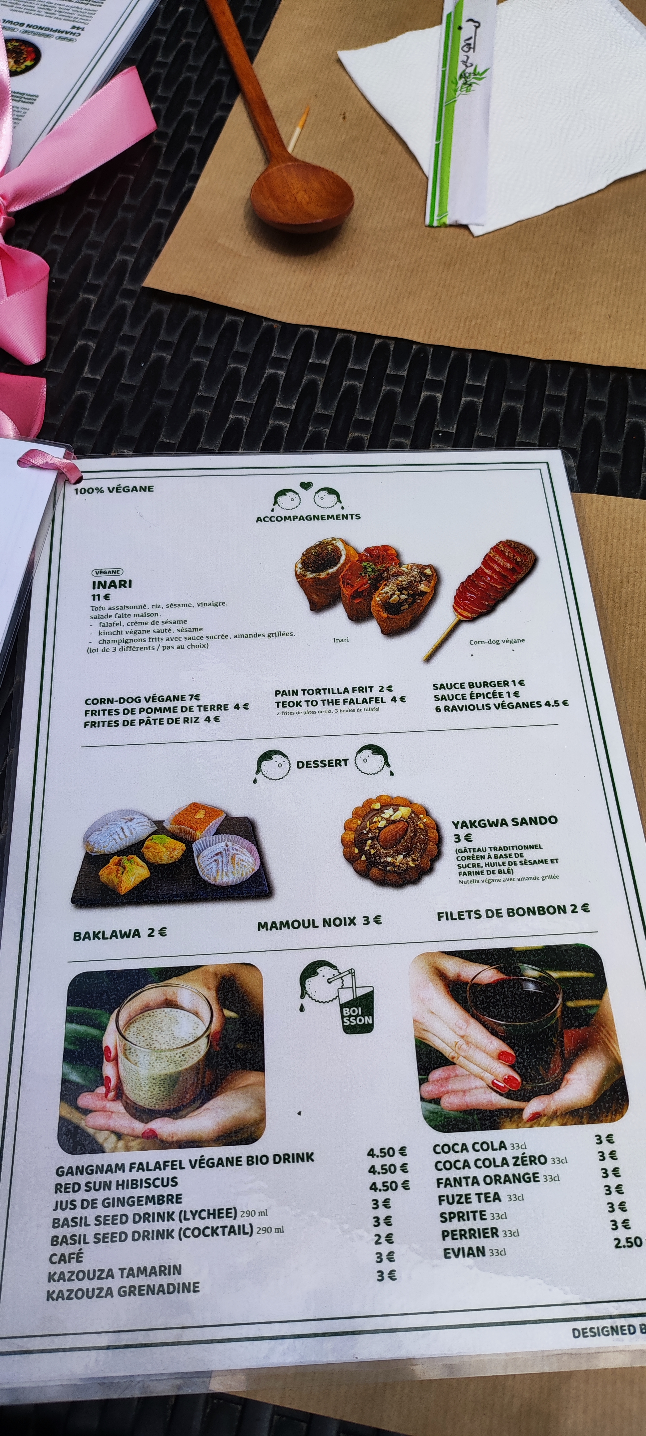 Posté le 09/11/2021 à 09:20"Restaurant unique et véritablement délicieux ! Le cheffe est adorable, nous avons passé un super et délicieux moment! Le fameux corn dog vegan sucré salé délicieux, un assortiment de inarizushi à tomber ainsi que qu’un kimchi bibimbap bowl et un Gangnam falafel bowl que nous avons tout simplement adoré! Le mélange des saveurs et des épices est époustouflant !! J’ai déjà hâte d’y retourner 😍😍😍"