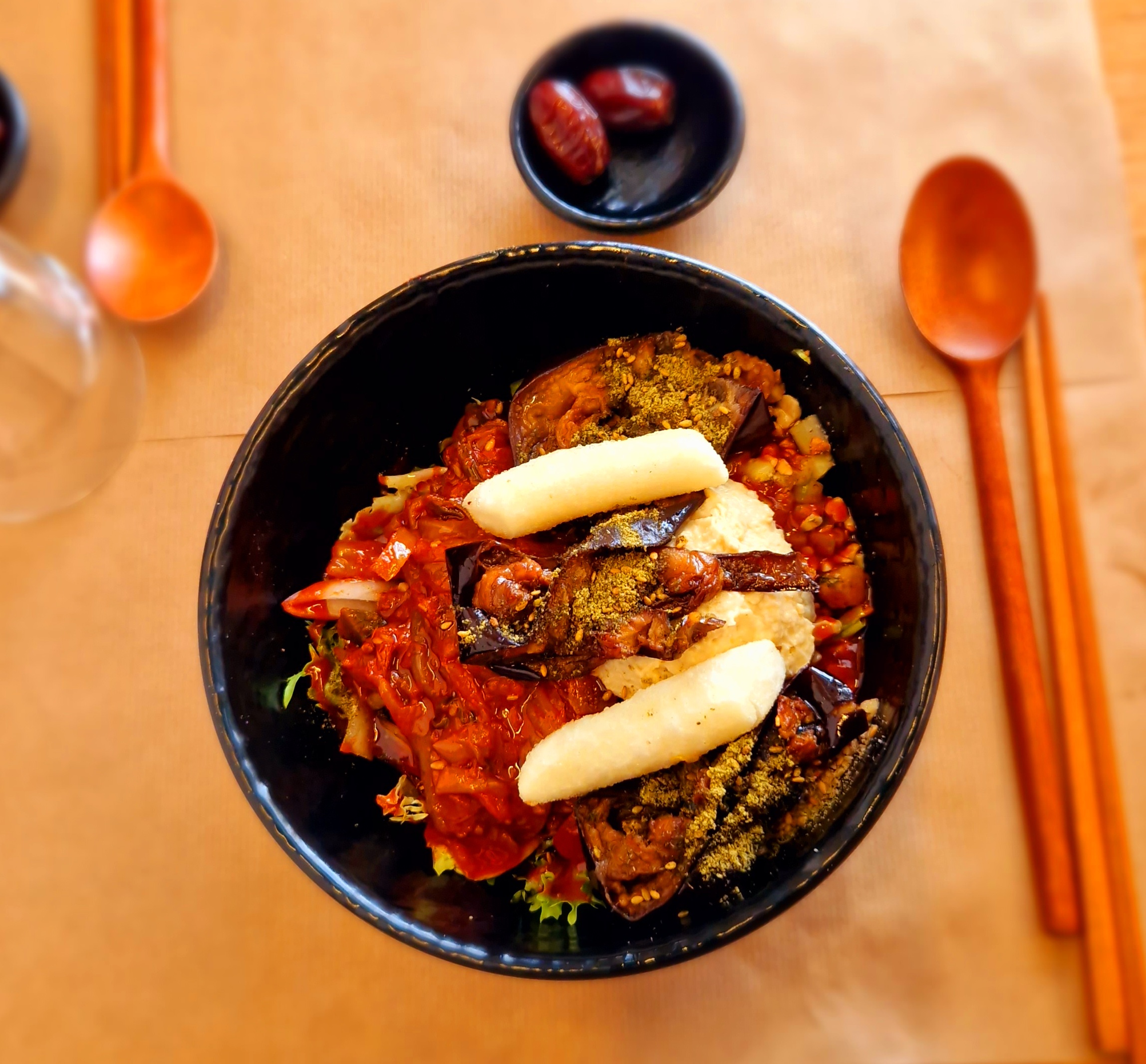 Posté le 09/09/2023 à 21:26"Le restaurant propose une cuisine fusion libano-coréenne 100% vegan et fait maison"