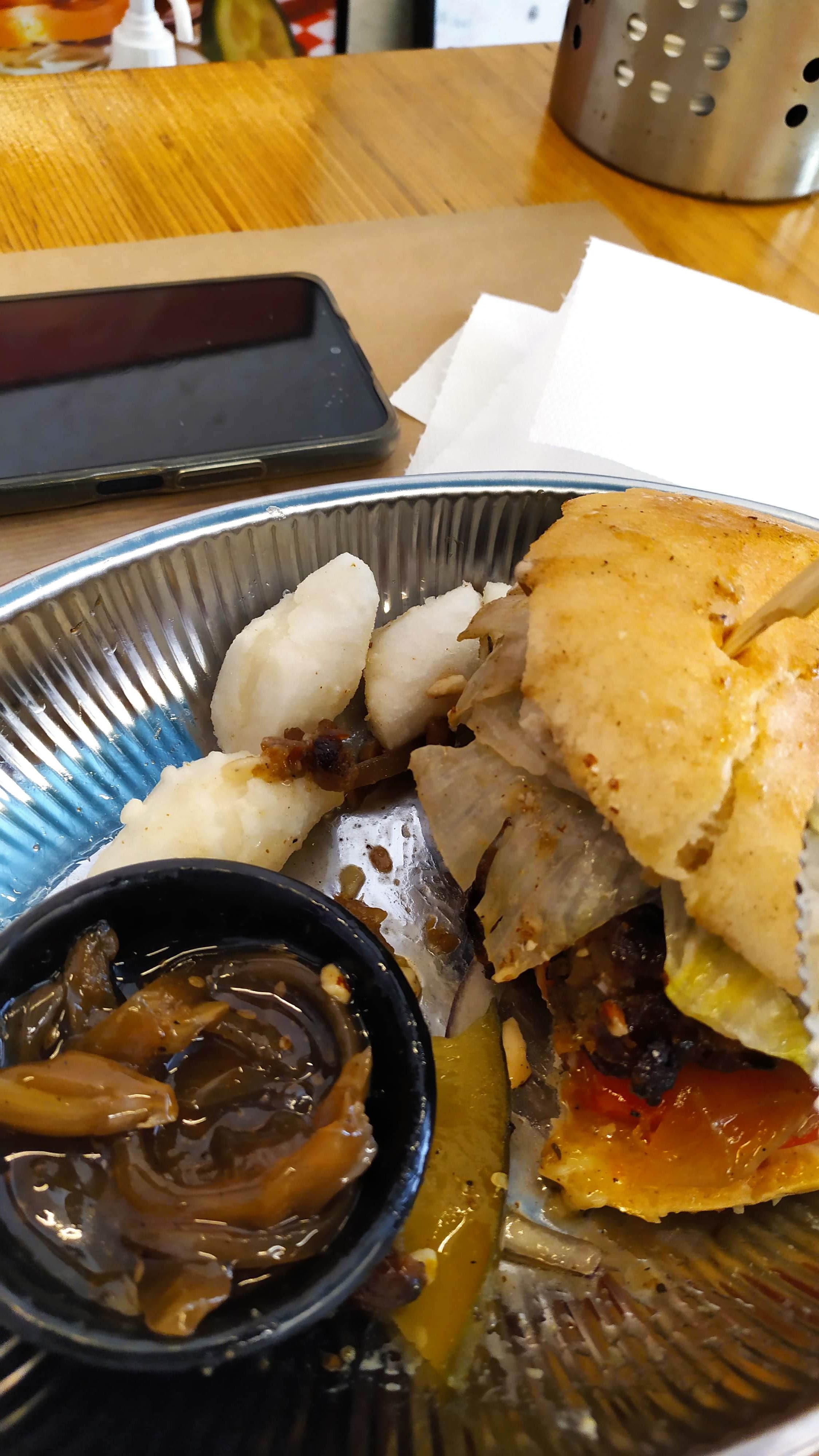 Posté le 17/07/2021 à 19:33"Bonjour a tous et toutes. Alors l’accueil est vraiment top, vous êtes super bien accueillis, ensuite J’ai pris un hamburger aux falafels.... comment dire c’est très copieux, vous ne mourrez pas de faim, par contre prévoir une grande mâchoire ou utilisez des couverts, ça risque de dégouliner. C’est original et bon. Désolé pas de photos, j’ai tout mangé 🥺"