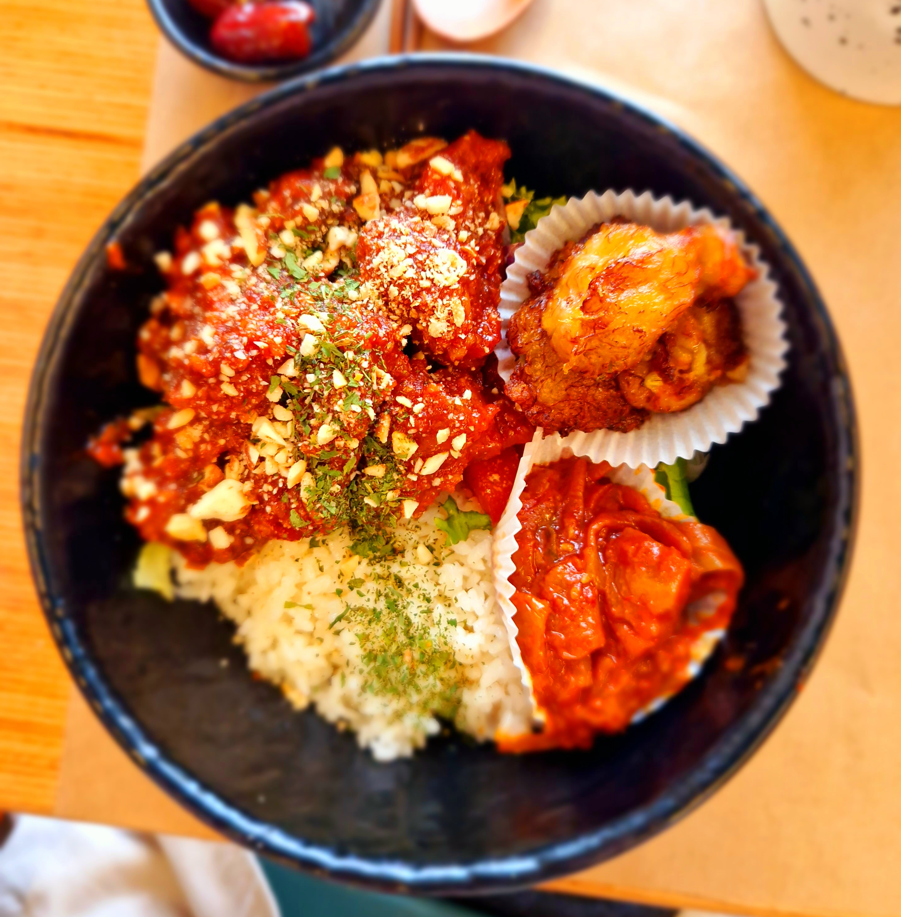 Posté le 03/03/2023 à 20:59"Serveuses souriantes et adorables qui font goûter des petites choses lors de la commande. Corndog surprenant et délicieux, mais bols trop sucrés et lourds. Vraiment dommage car chaque ingrédient est bon en lui-même, mais l'ensemble combiné entraîne une surcharge de saveurs (surtout de sucre) qui rend difficile de finir les bols, notamment celui au champignon. Merci pour la soupe gratuite mais attention, elle est 🌶️🌶️🌶️"