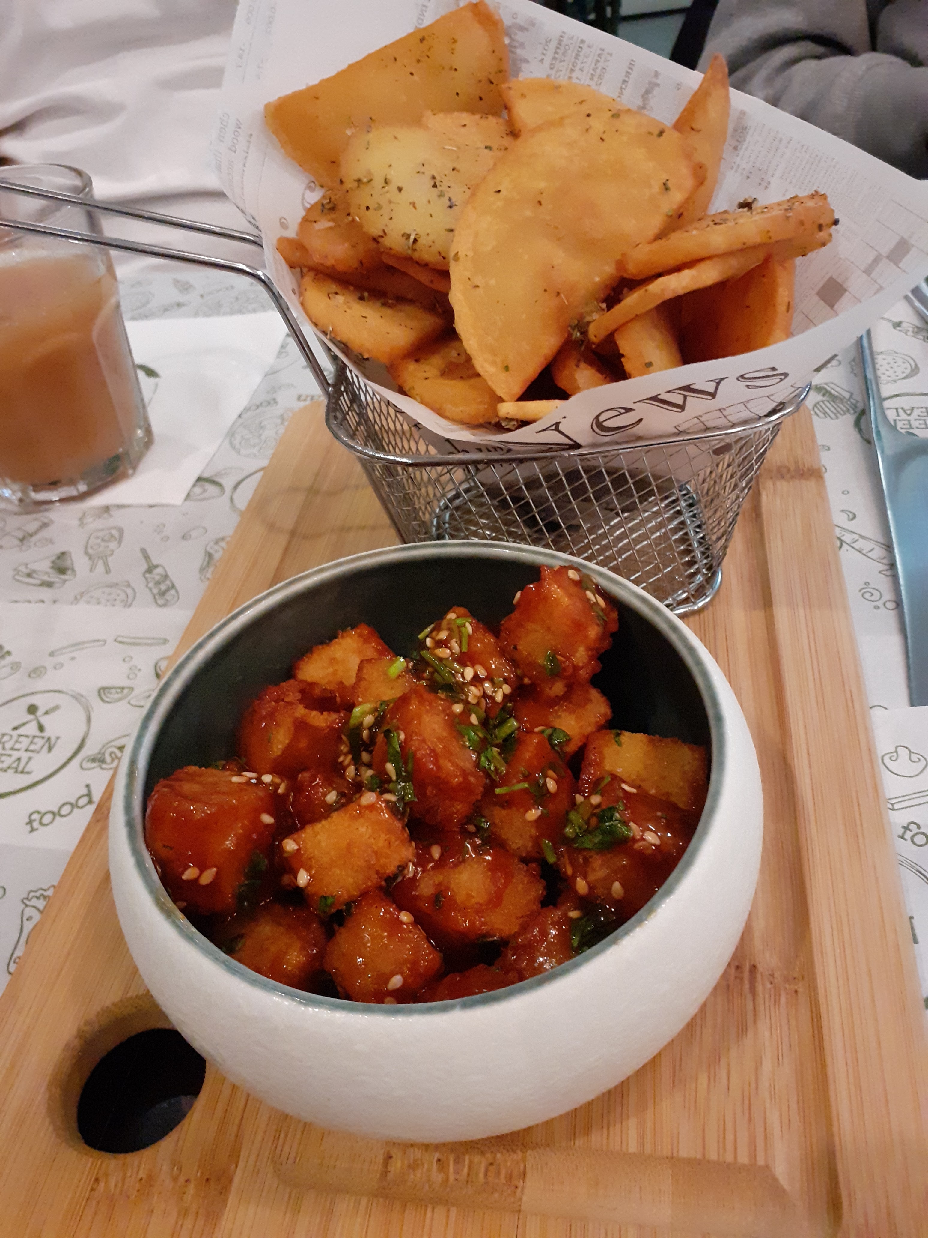 Posté le 17/06/2023 à 19:17"Délicieuse soirée au Green Meal: les tapas sont excellents et le Burger chorital avec les frites de patates douces 🍠 un régal. Serveurs très sympathiques, le ski jets en dessert était trop bon! Une adresse à retenir pour manger délicieux, sain et végan!"