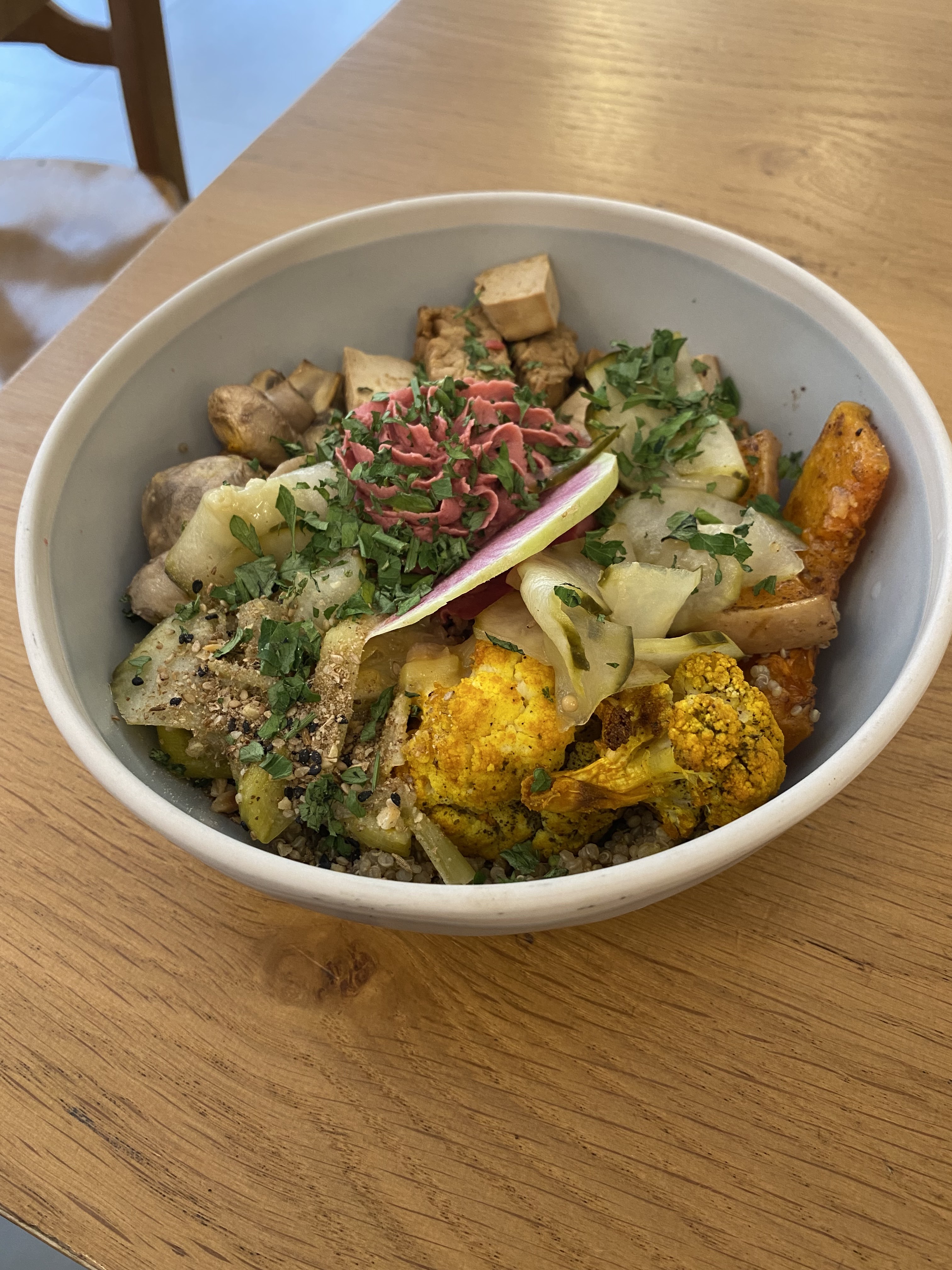 Cuisine colorée et savoureuse ! Le dirty chaï et les jus délicieux. L'équipe est ADORABLE, le lieu sublimée t cosy, je recommande chaudement !