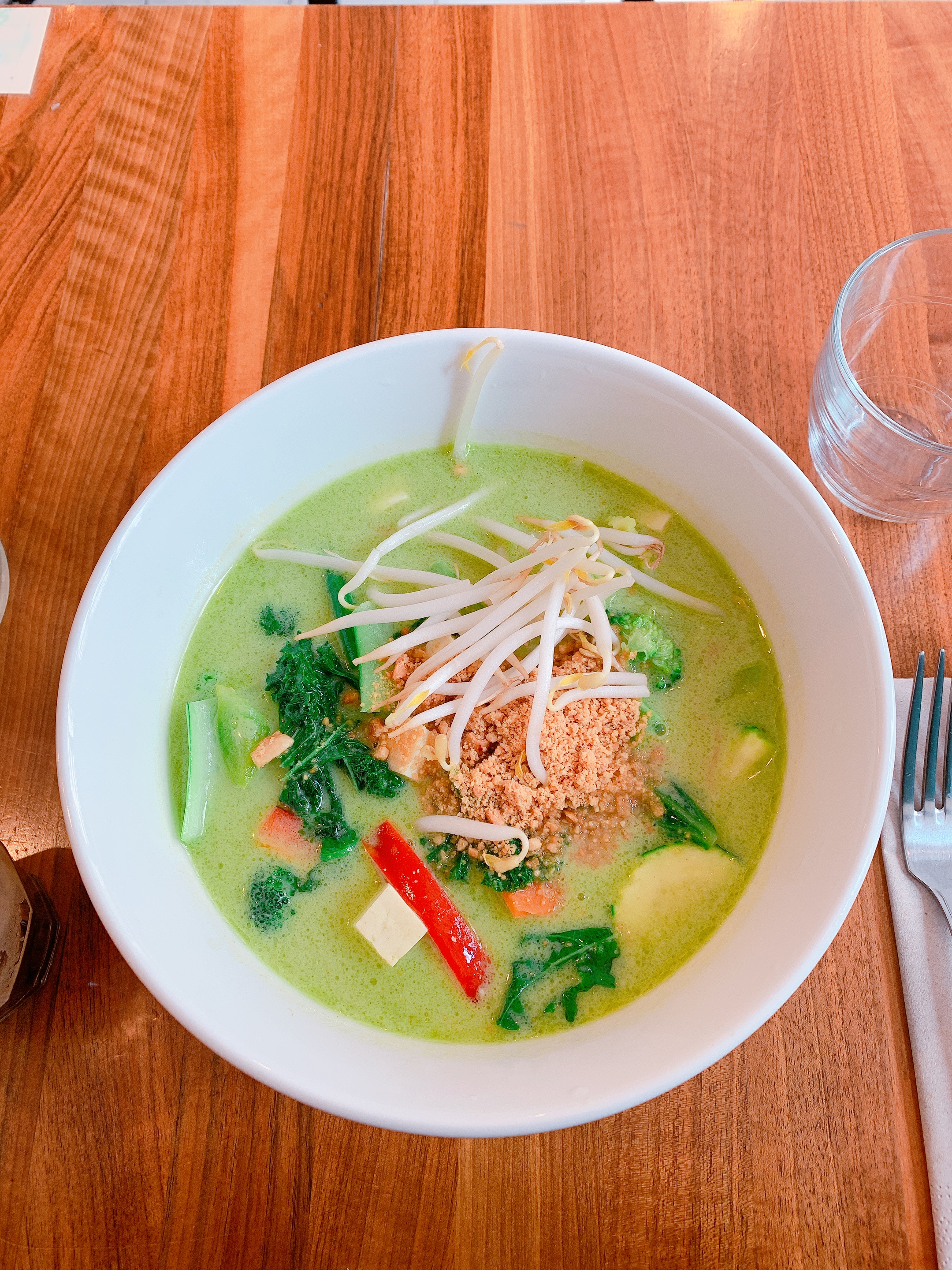 Je ne suis pas végan et pourtant, j'ai adoré ! Le curry vert était juste TOP : épicé sans trop l'être, goûtu, savoureux et bien présenté. Service simple et efficace.