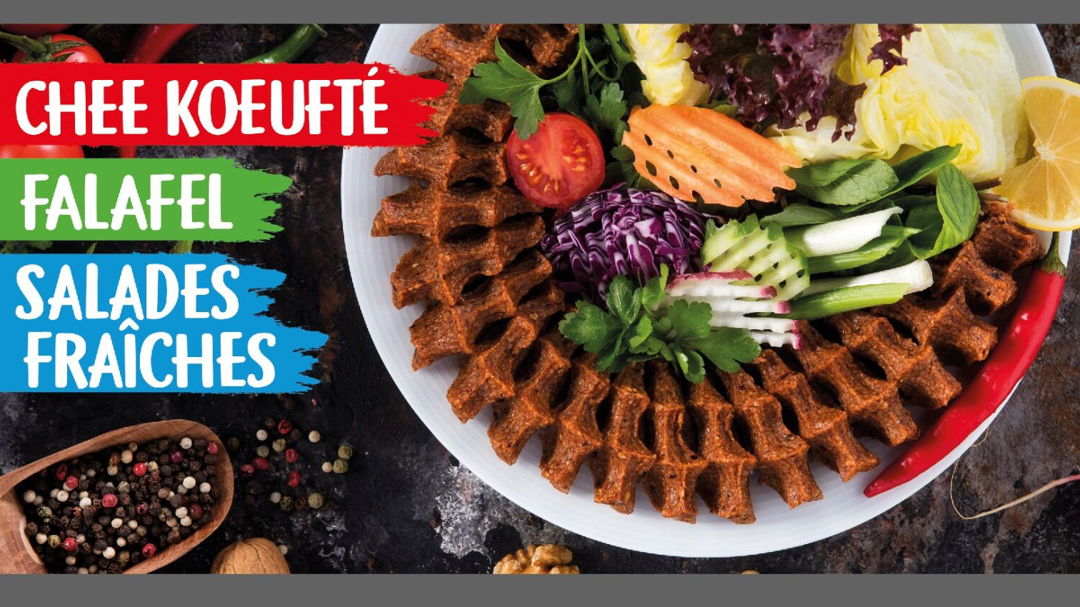 J’ai découvert ici en retirent un colis Mondial Relay. Je recommande vivement les falafels! Très bon et pas cher. La salade crudité est toujours fraise. À découvrir