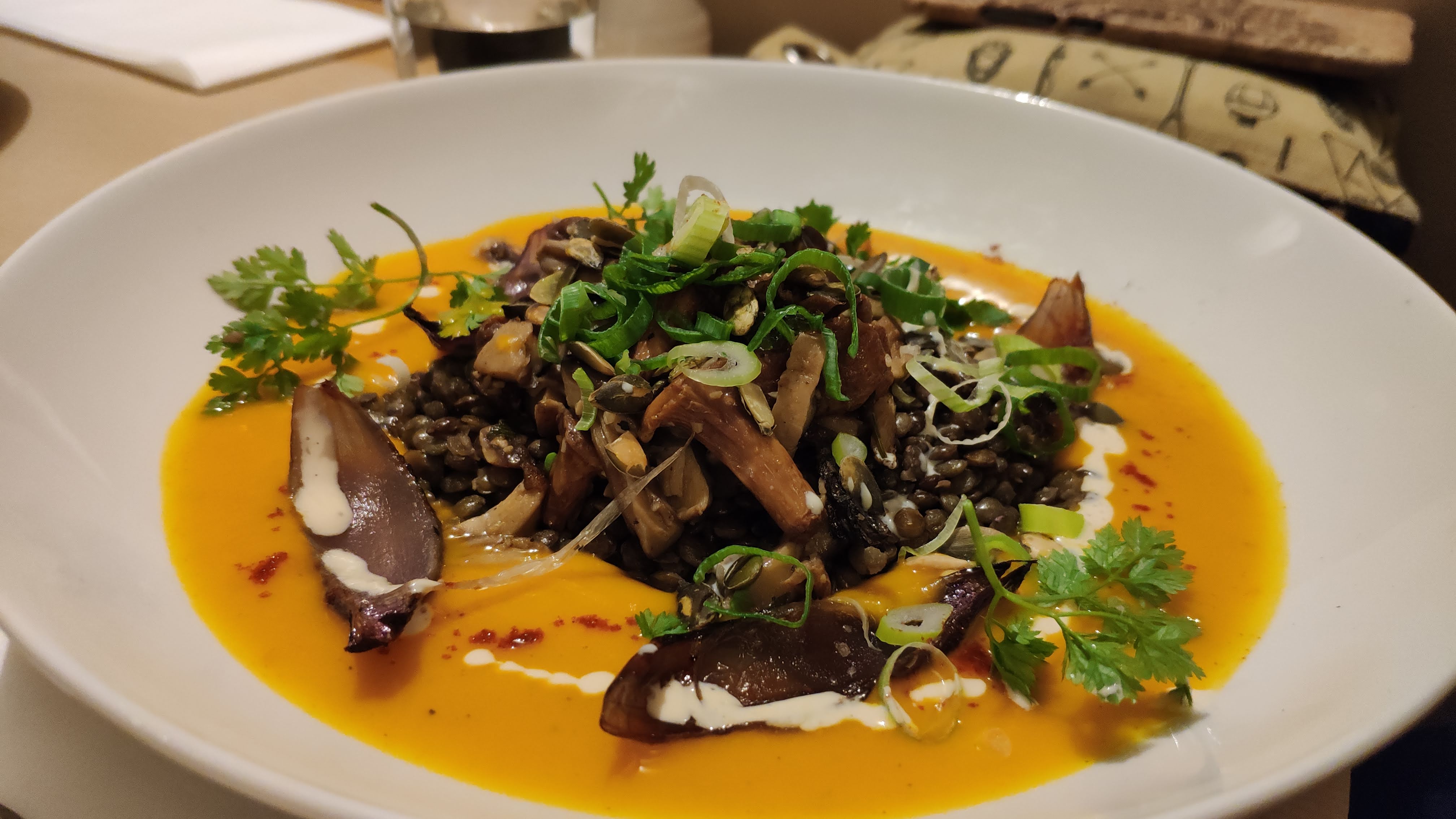 Mon assiette était aussi belle que savoureuse, avec des ingrédients simples mais bien maîtrisés J'ai pris des pâtes sauce à la courge aux girolles . Ça fait du bien de manger quelque chose d'aussi bon (et de saison) sans prix excessif :) et non, je ne suis pas végétarienne. Je reviendrai !
