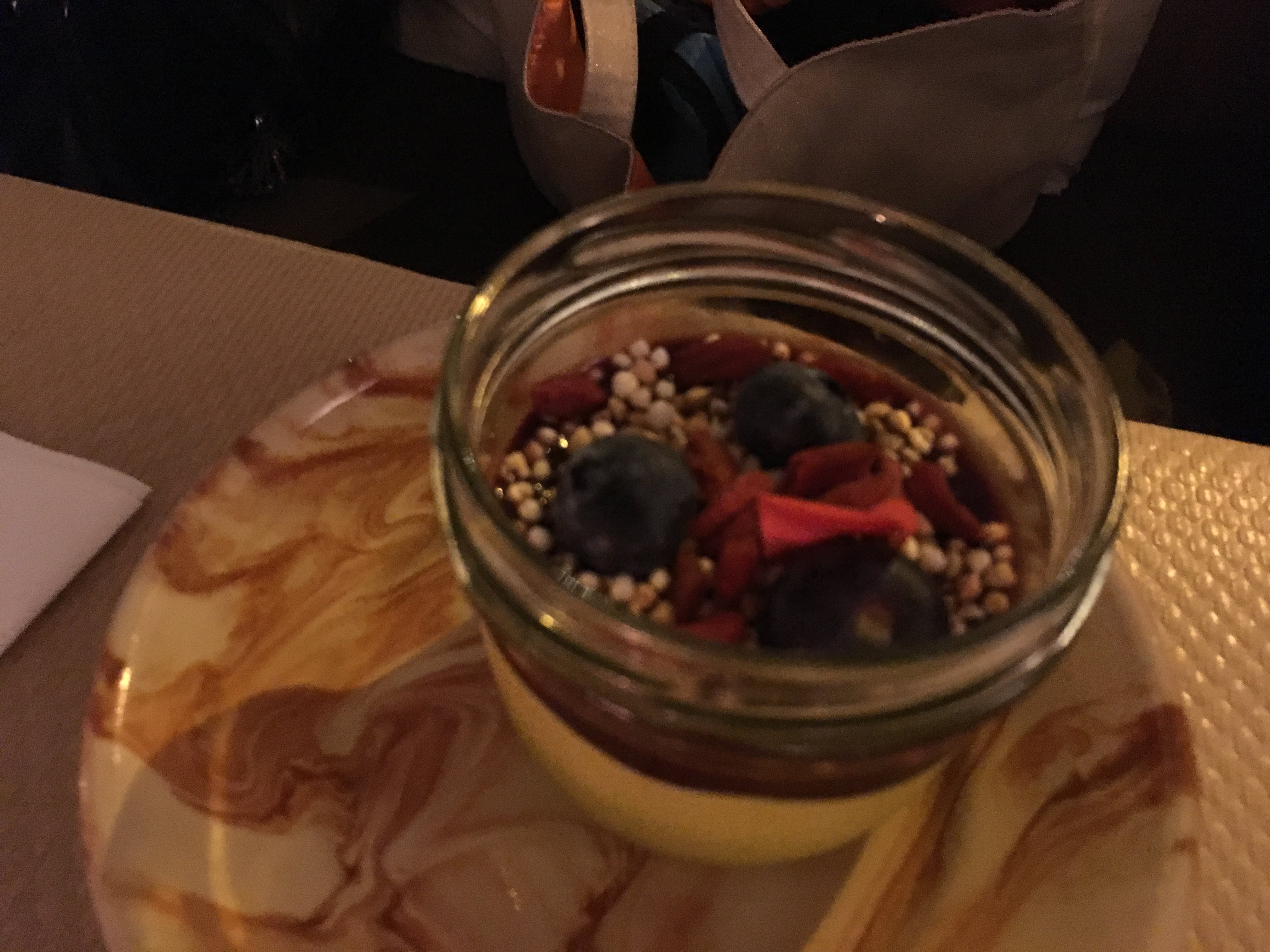 Posté le 01/01/2017 à 09:52"Excellent restaurant, très recherché et gouteux : pris le purée de potimarron, croustillant patate douce, coriandre et en dessert gâteau au chocolat et crème citron aux fruits et graines, smoothie kiwi top, ... betterave moins top ... Le seule hic ou l'on aimerait une évolution: la carte n'est pas bio hormis les jus et farine ... pour le prix élevé on aimerait plus de bio :)"