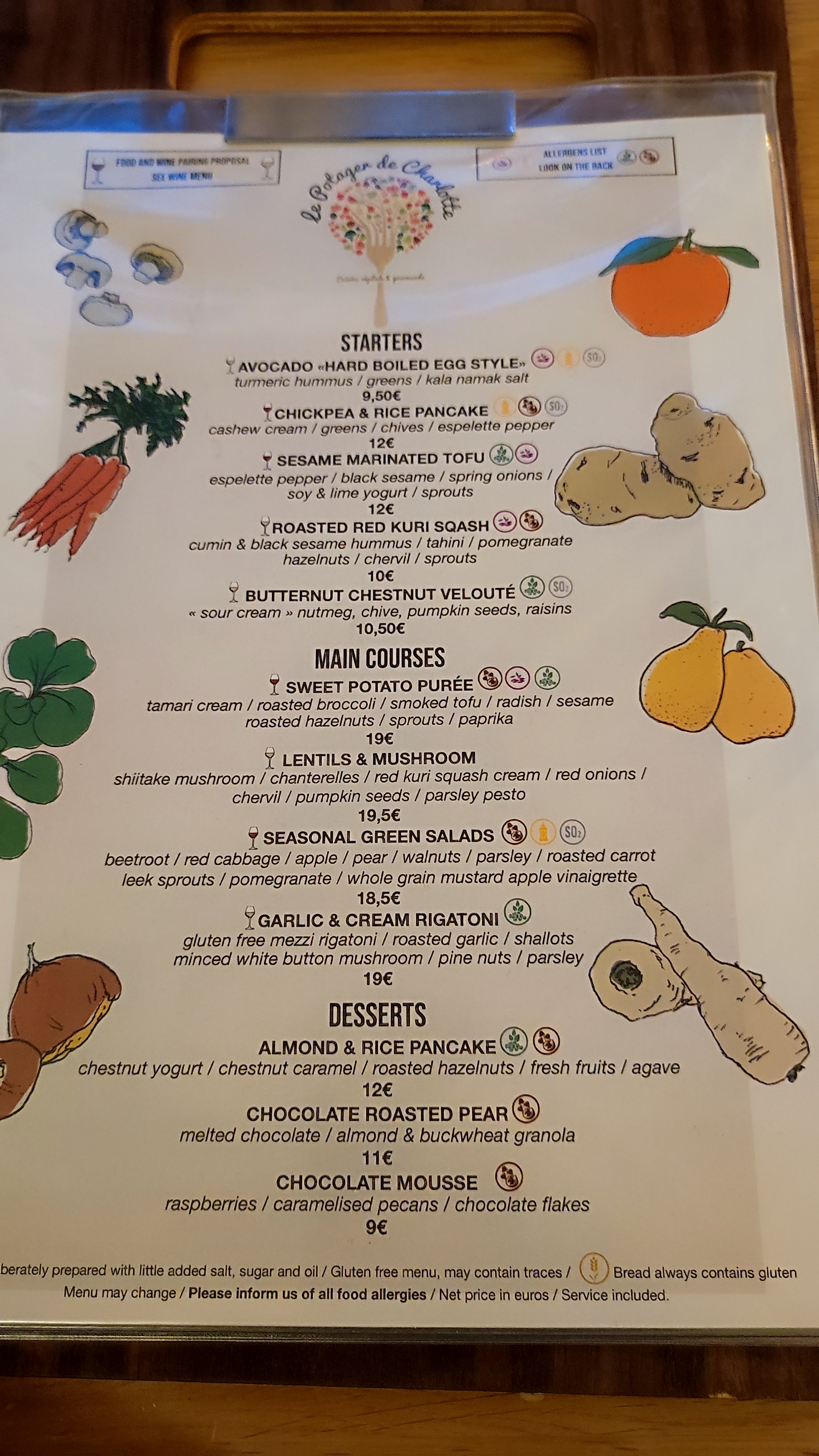 Cuisine de saison, bio et local et vegan ! Un restaurant que je considère comme gastro et 100% éthique ! Il me semble que c’est aussi sans gluten ! Les plats sont raffinés et c’est vraiment excellent ! Les prix sont pas excessifs, et le service et vraiment top !