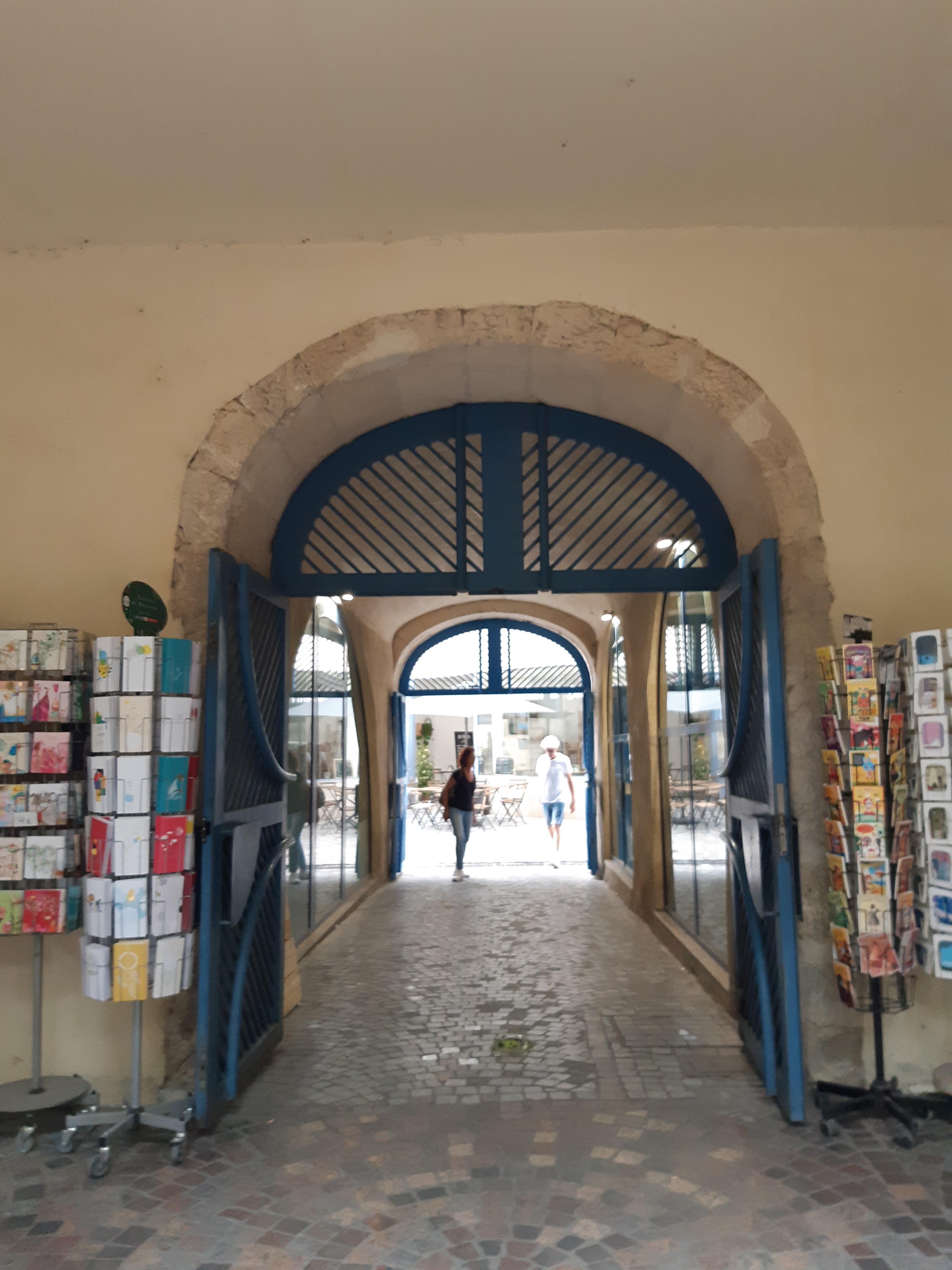 - Assiette VG type Tapas et cocktail de légumes, - Tarte salée et cocktail de fruits, Délicieux, À faire absolument. On découvre une cours intérieure ombragée magnifique où se trouve la terrasse du restaurant. Ouvert de 9h à 17h, Très fréquenté de 12h à 14h30.