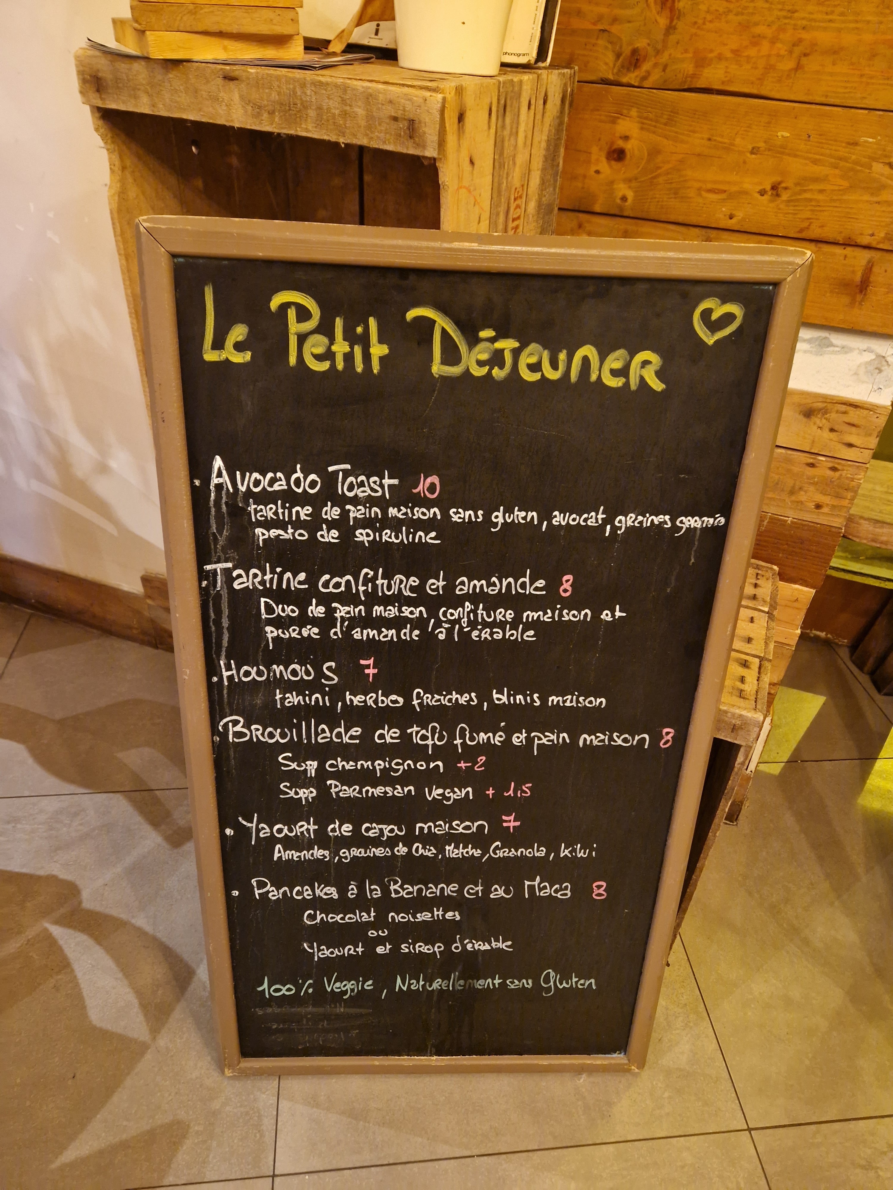 Posté le 17/03/2019 à 07:45"Habituée des restaurant végétariens. Quelle déception!!! Service médiocre, 20 mins d attente sans aucun accueil ni clients malgré une réservation. Carte illisible, sans explications sur la composition des bols... enfin si vous êtes habitué à manger salé au déjeuner vous n aurez qu' un choix très très restreint avec un seul bol, le deuxième étant servie jusqu a 11h45 faisant partie du petit déjeuner. Enfin n attendait pas une sourire ou un conseil du personnel. Ils ne vous verrons qu' à la caisse. Passez donc votre chemin et préférez d autres restaurant vegetariens de la rue Alexandre Dumas"