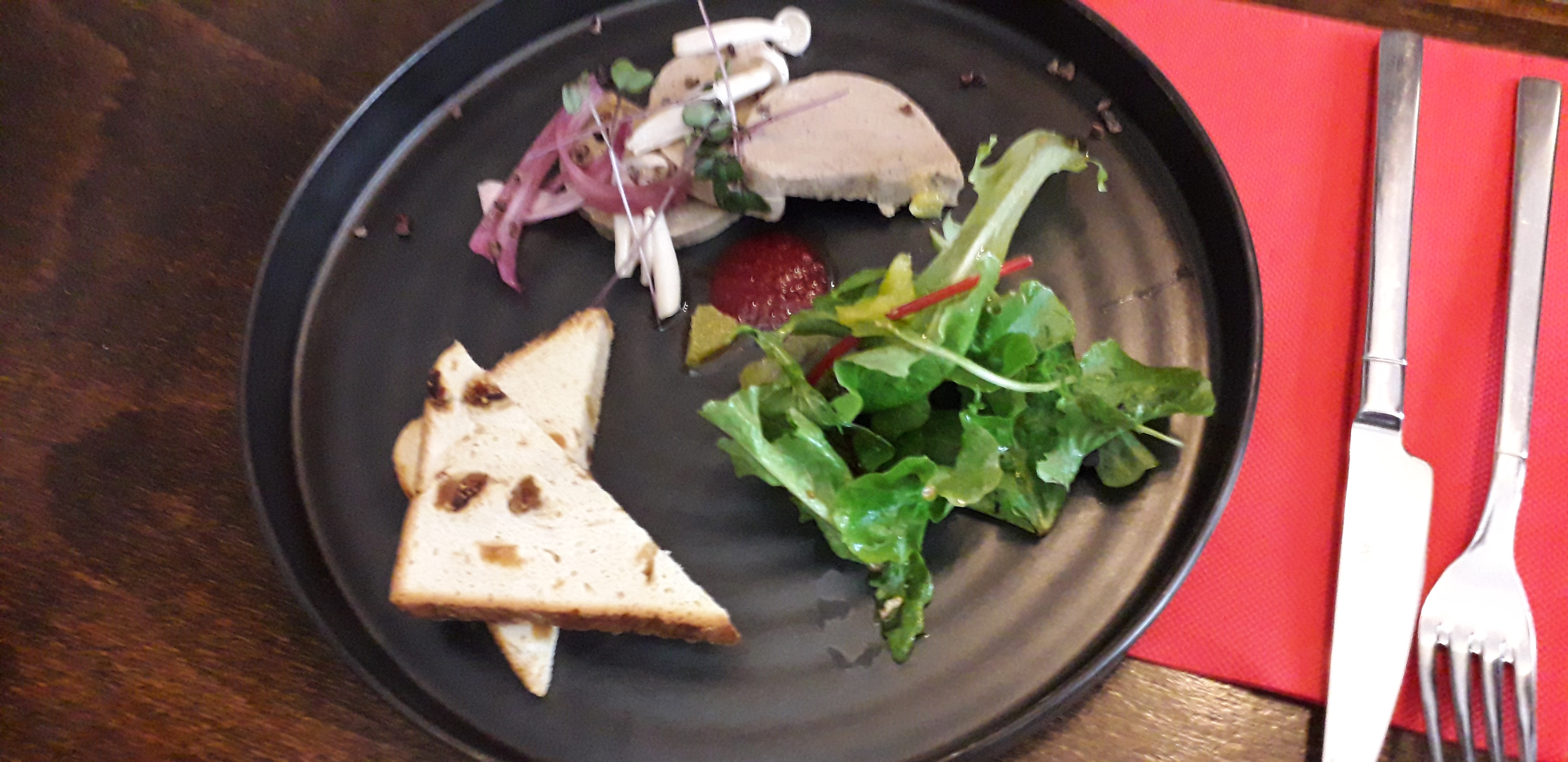 Un lieu charmant, cosy, un patron/serveur souriant, à l'écoute, qui, ça se sent est passionné par ce qu'il fait ! Un chef/patron qui maîtrise son sujet comme personne ! Félicitations et bravo messieurs ! Mention spéciale pour le faux gras que j'ai trouvé excellent et étonnamment ressemblant à son cousin animal ! Au top pour les petits mots d'humour disposés un peu partout dans le resto ! On adore ! On reviendra avec plaisir c'est certain ! Petit conseil pour ceux qui voudraient tester cette merveille, réservez !
