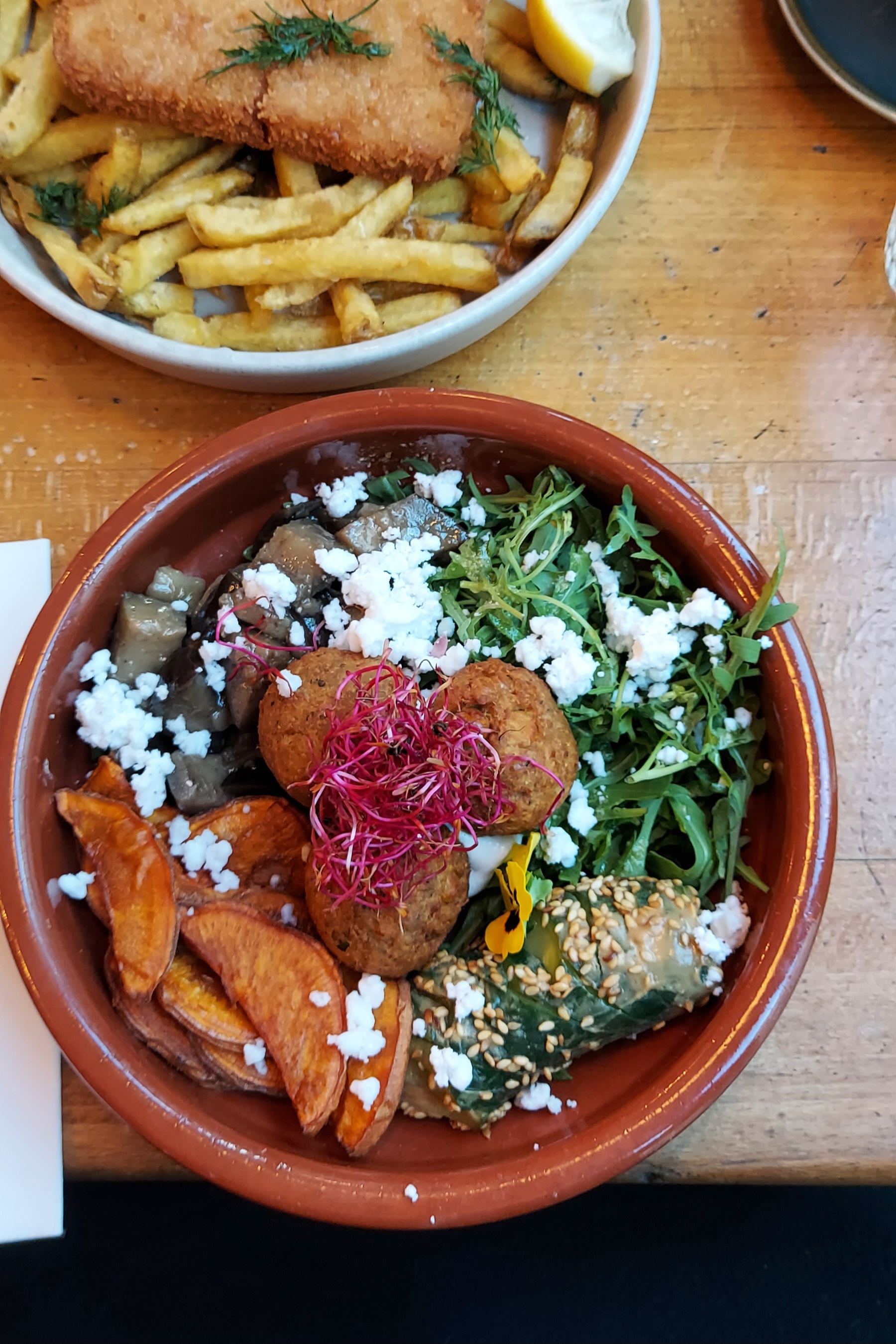 Très bon restaurant qui ne paie pas de mine. Moi qui n'avait plus mangé de fish and chips depuis que je suis devenue végétarienne, je suis ravie, je me suis régalée ! Resto vegan qui bluffera les omnis :D