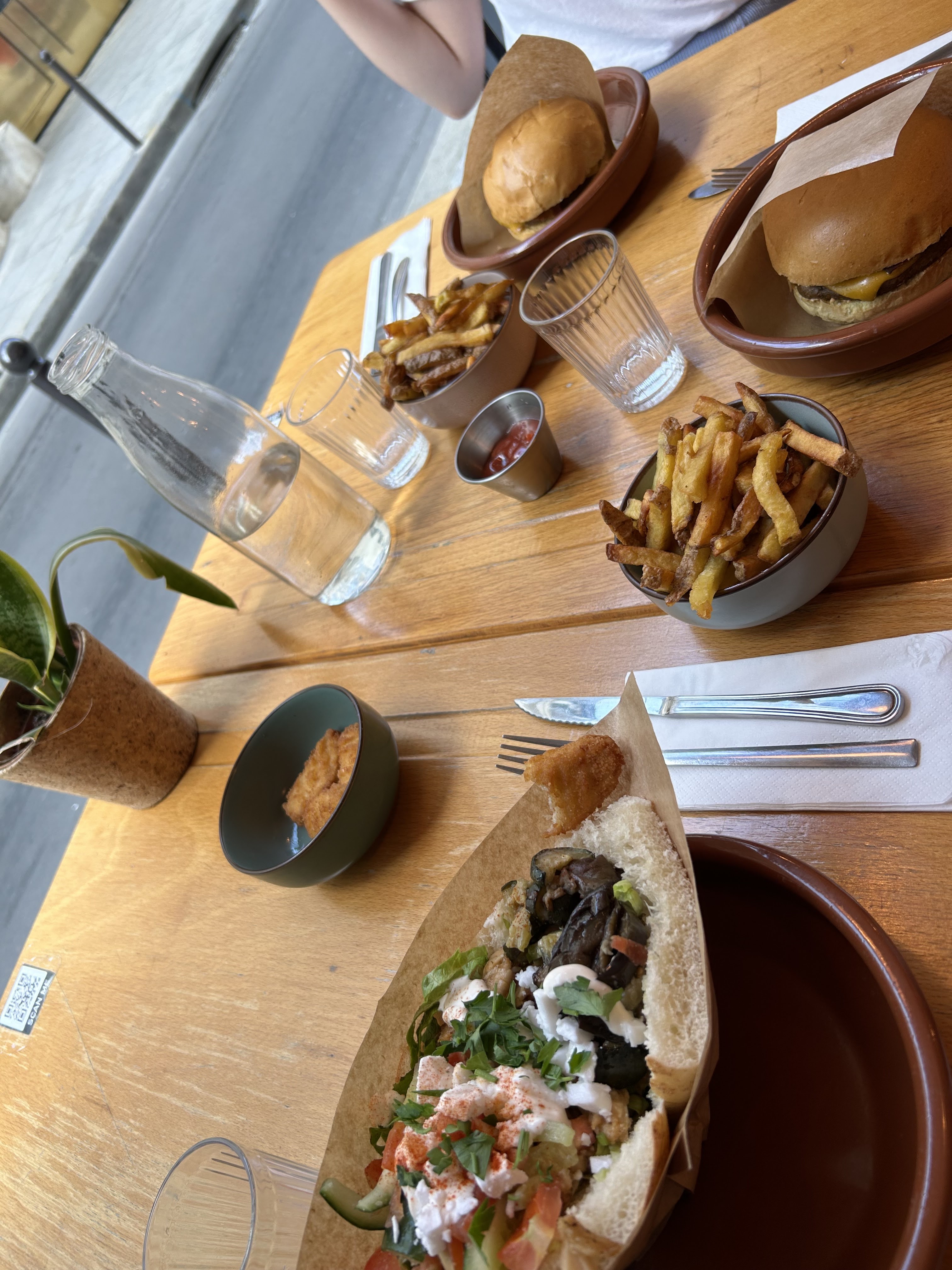 Très belle découverte et prix très largement accessibles (9.9€ = burger + frites). La quantité est un peu limite mais le bacon est excellent. Très bonne idée que ce kebap végétalien ! Service rapide et agréable !