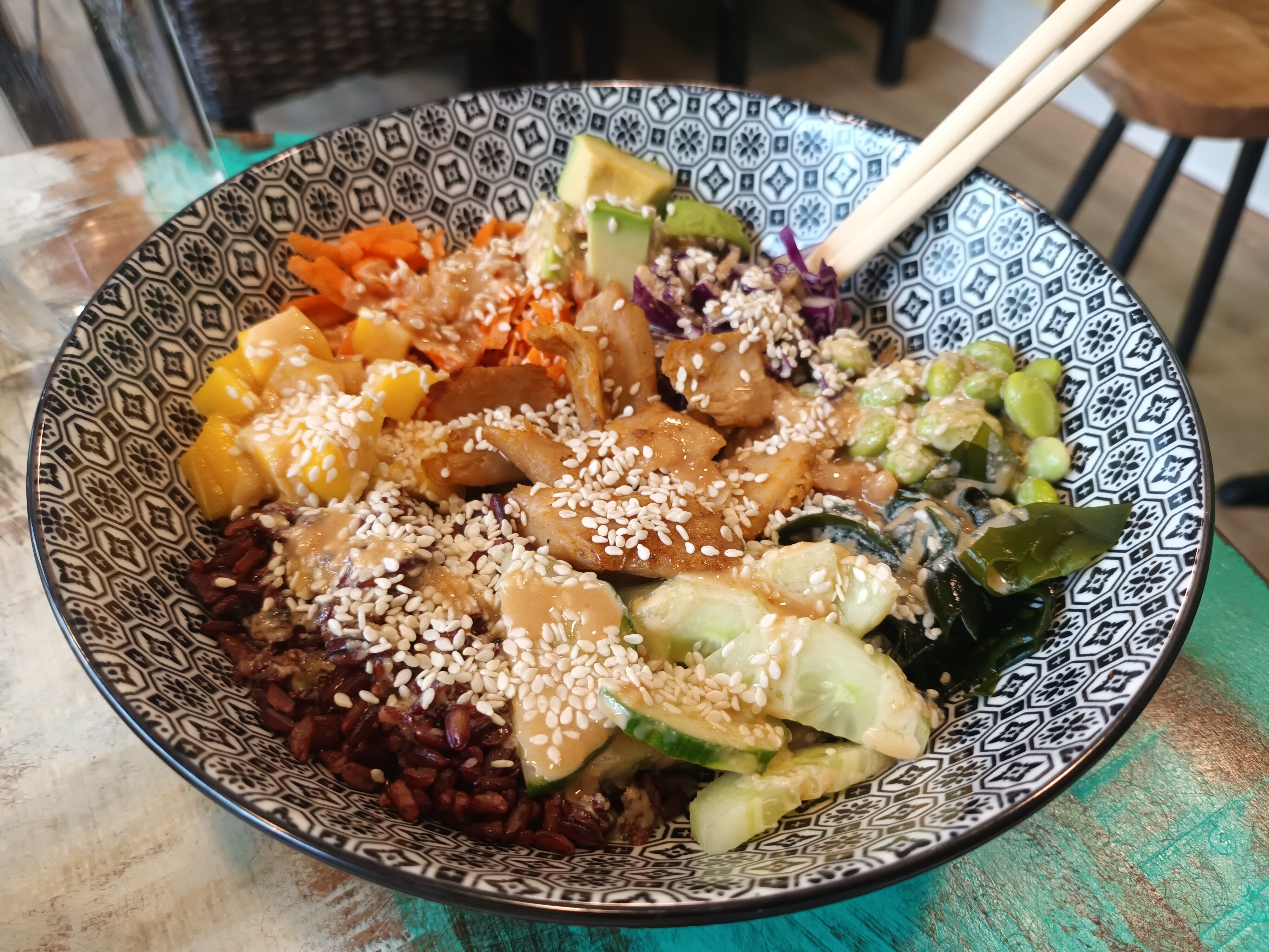 Acceuil très agréable et chaleureux. Bowl copieux, préparé avec des aliments frais, de qualité et savoureux. Nous pouvons choisir et confectionner nos bowl selon nos goûts et envies. Je recommande !