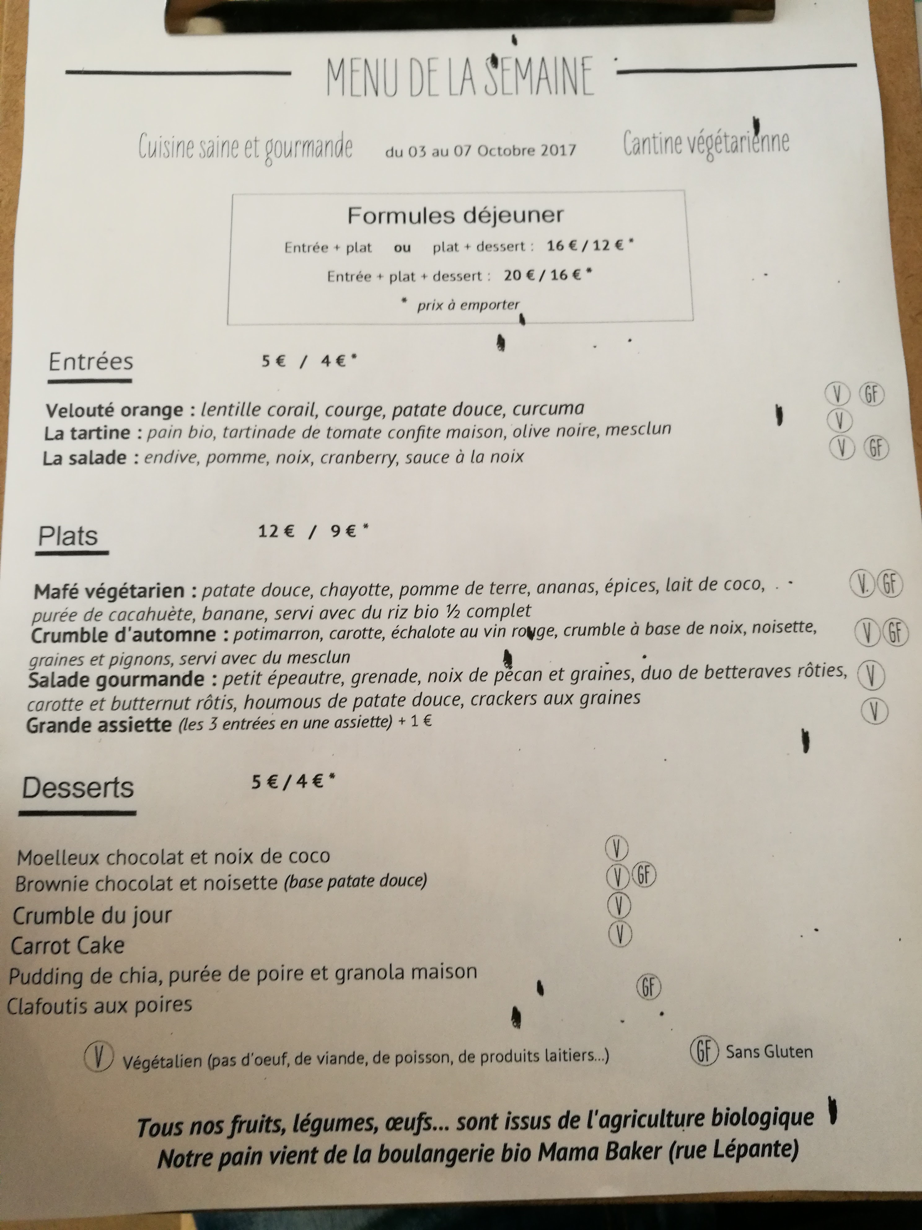 Posté le 11/02/2018 à 08:38"Excellent petit restaurant vegan et bio ! <3 Je conseil tout le monde même les personnes qui ne sont pas forcément vegan à y aller au moins une fois ! Attention, il est victime de son succès et je vous conseille de réserver votre table avant d'y aller! Sinon c'est vraiment parfait, top tip top, même l'ambiance est à son comble ! Allez y les yeux fermés, ils sauront vous surprendre ! <3"