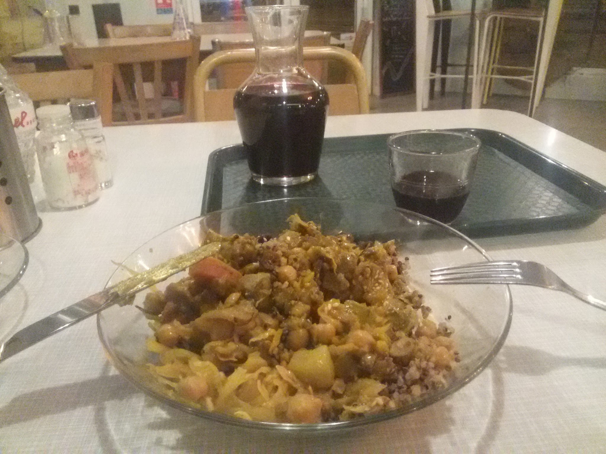 Boulettes délicieuses. Le reste manquait un peu de saveur. Le concept cantine à fond : on va chercher son plateau, son eau, ses couverts. Après manger, on débarrasse.😀