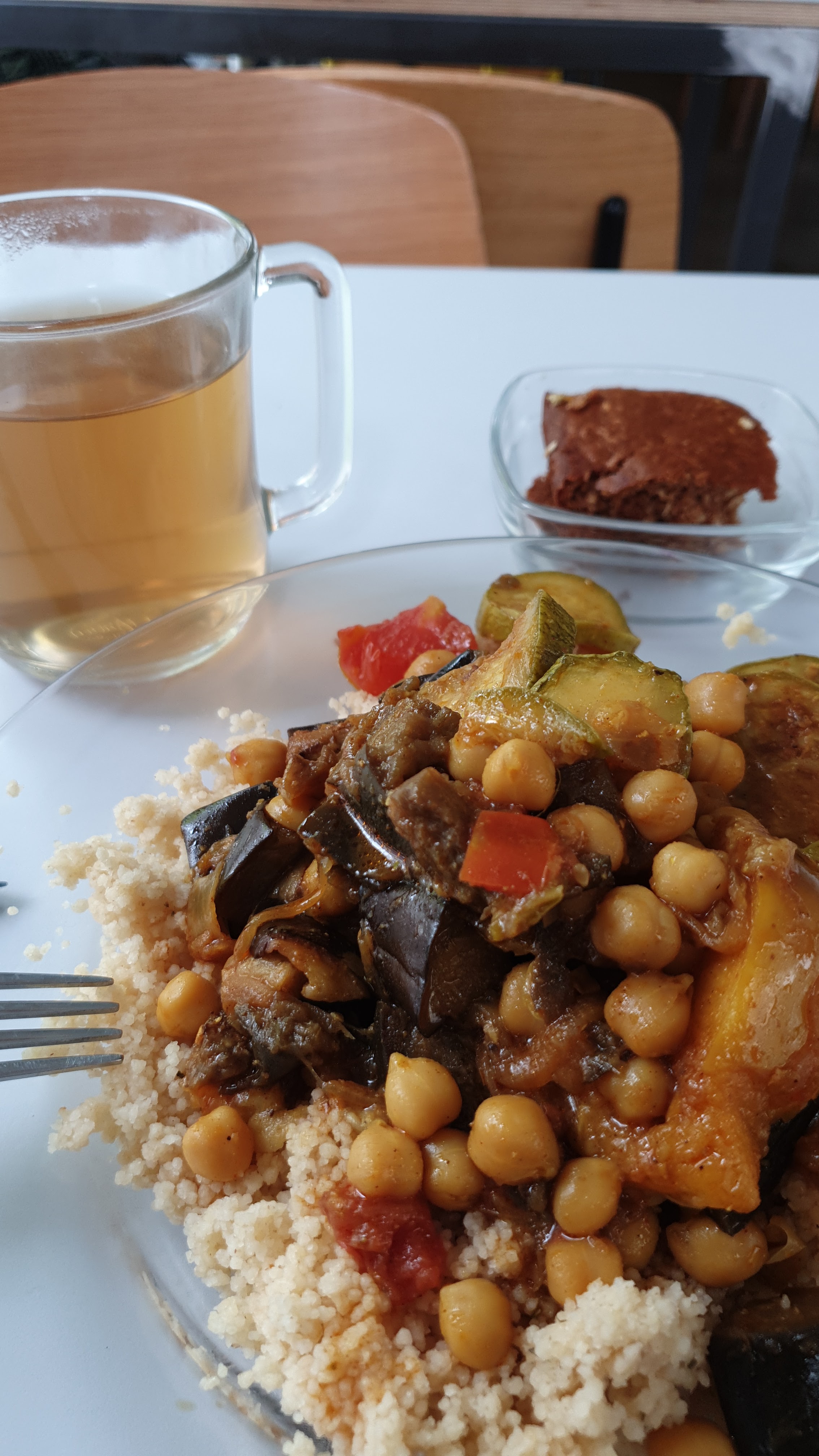 Très bon restaurant vegan pas très cher sur Château Rouge ! 16e la formule midi avec une citronnade fraîche maison et entrée+ plat ou plat + dessert . J'ai pris un grand mezze à 15,80€ qui comprend une partie des 3 plats du jour : idéal pour ceux qui n'arrivent pas à se décider !