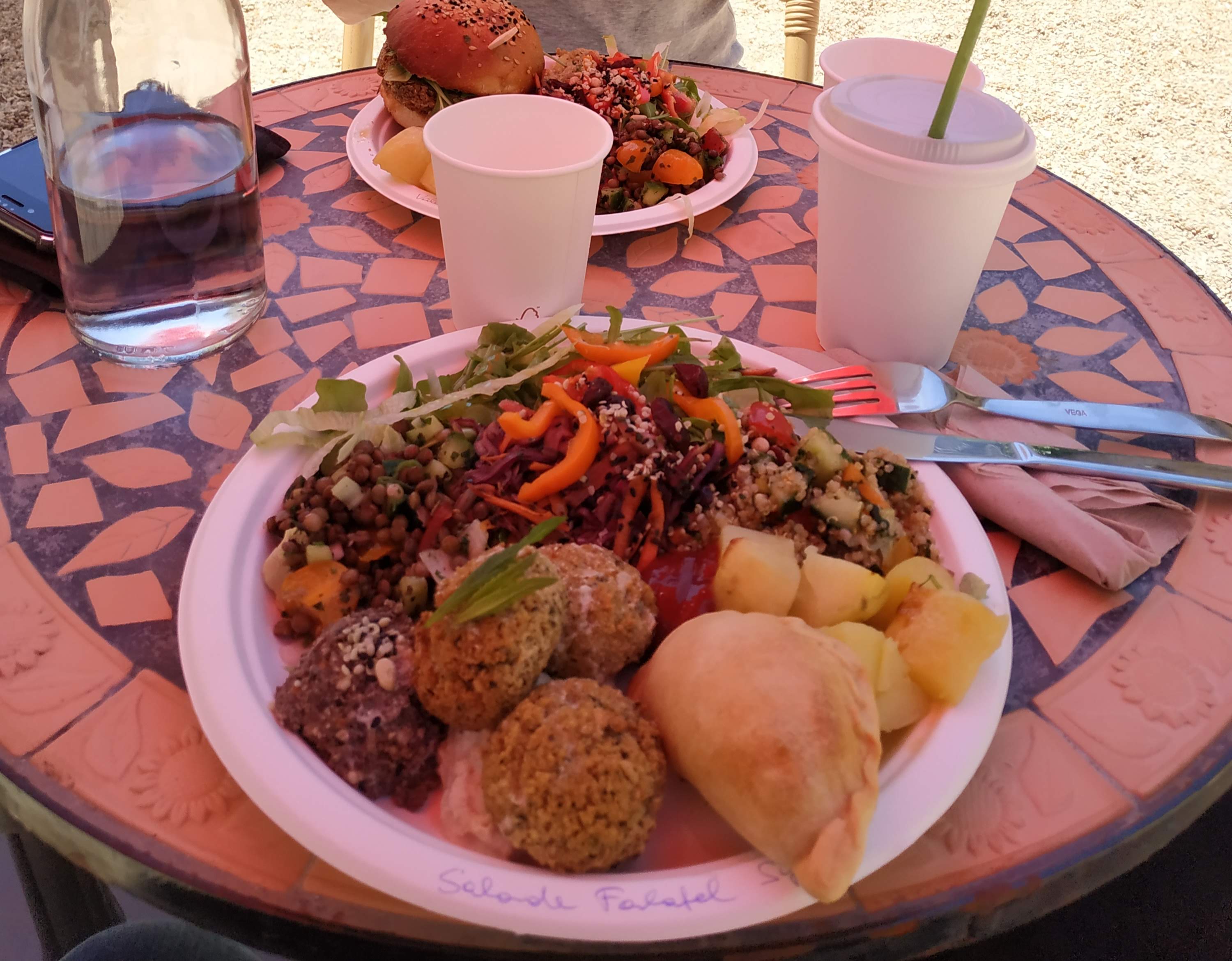 Incroyable! Restaurant végétalien avec des produits de haute qualité au milieu de la campagne française. L'atmosphère de jardin est charmante. Avec moins de plastique et de vraies assiettes j'aurais donné la 5ème étoile...