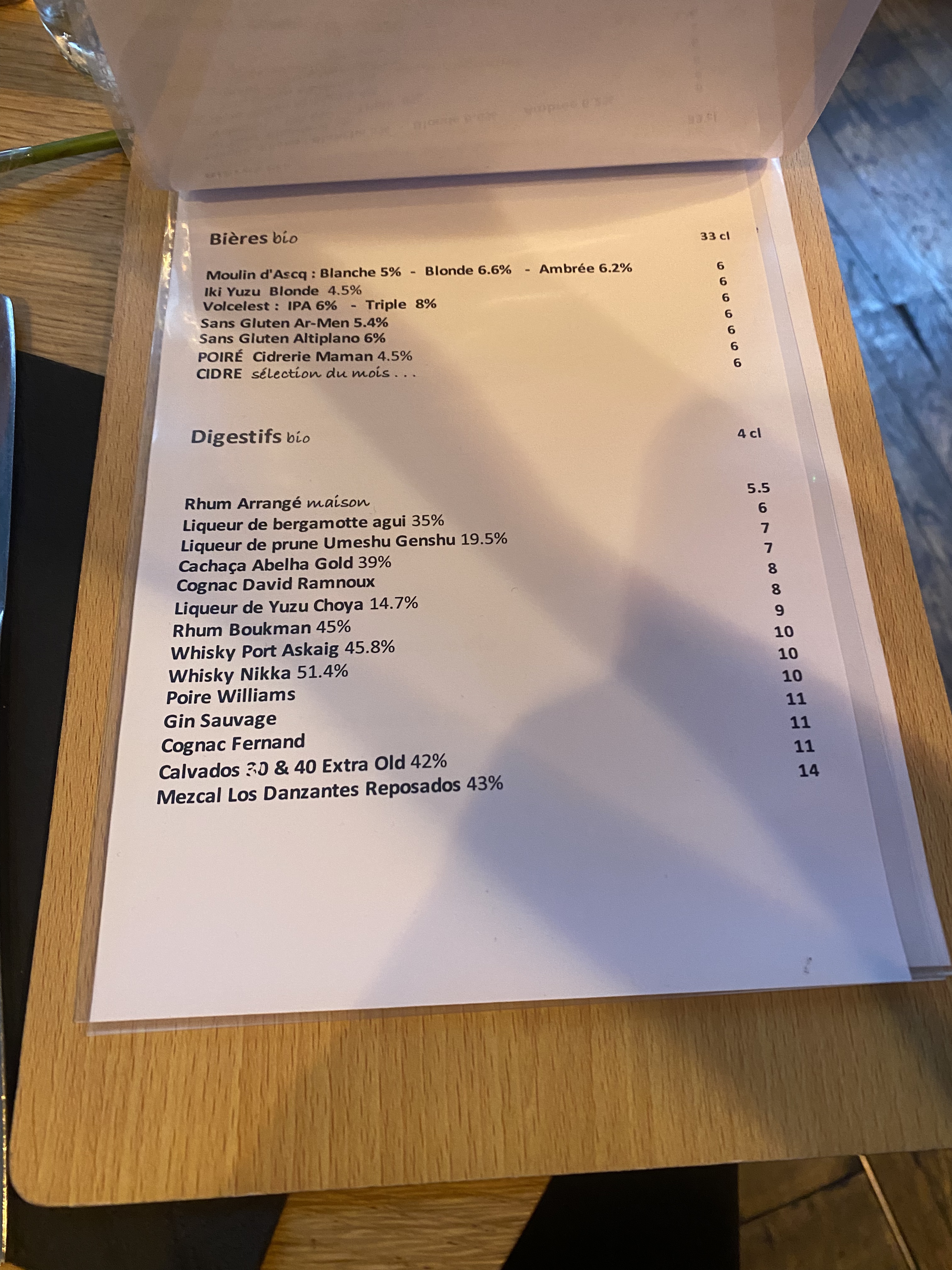 Prix excessif. Endroit sympa, belle assiette. Bon mais addition indigeste. Tranches de légumes étroites, les tables aussi ! Accueil distant, je ne retrouve pas l’accueil chaleureux décrit dans de nombreux commentaires (préciser le jour de présence de la serveuse charmante, merci) Flash ton code et débrouille-toi ! Quand le personnel devine qu’il a des clients qui viennent pour la première fois il devrait être plus attentionné et fournir quelques informations et suggestions. Service minimum, aucune attention particulière. Vin blanc Chardonnay, le garçon a-t-il un peu d'empathie pour le vin qu'il sert ? Aucune info (région...). Vin non bio. Restaurant parfait pour les bobos incapables de se servir d’une couteau d’office, ceux qui aiment bien se la pêter en dépensant leur argent et en se sentant obligé de noter à la hauteur de leur dépense !