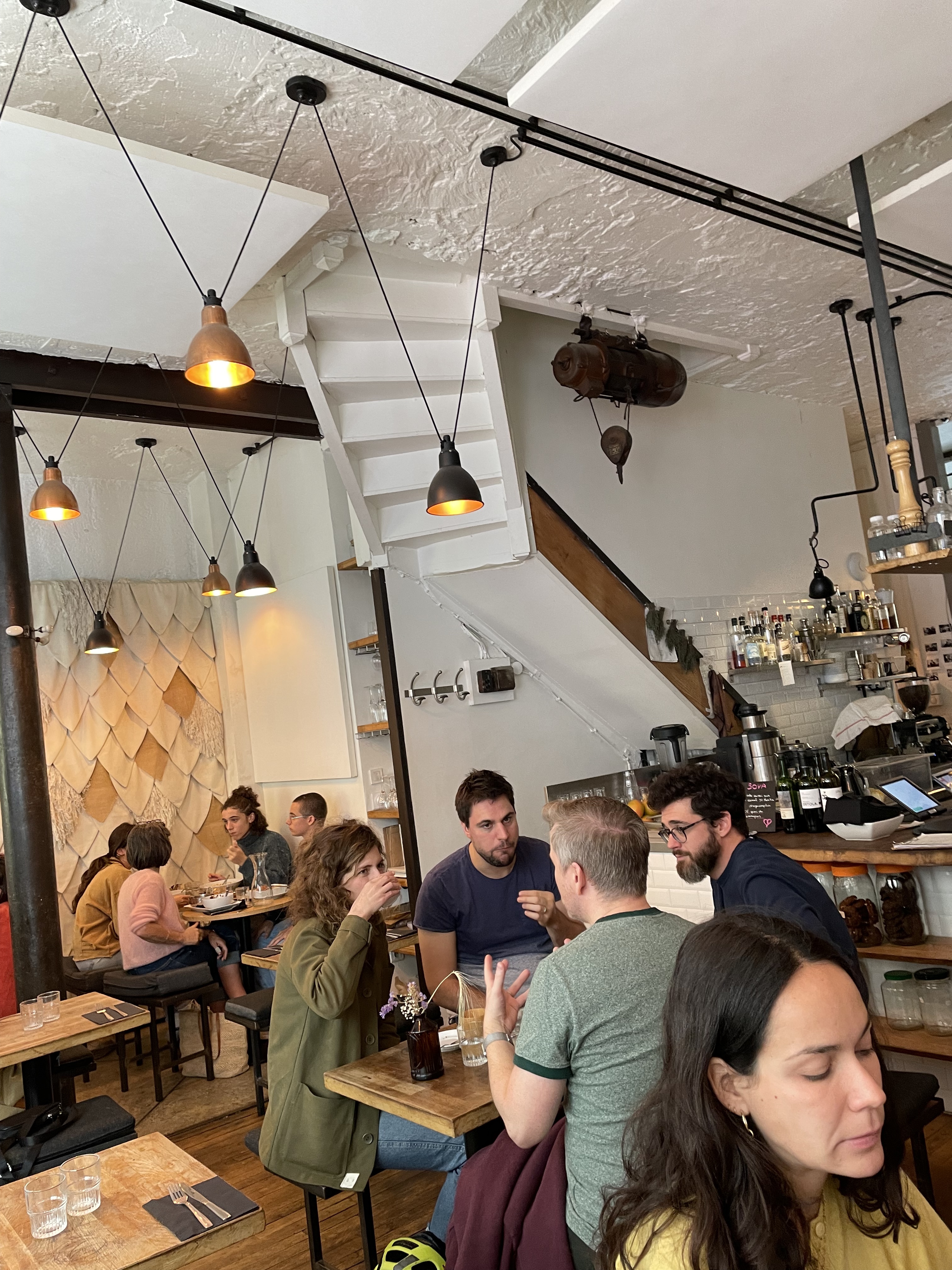 Une équipe chaleureuse, attentionnée. Une bonne ambiance. J'ai testé le brunch du dimanche, ce fut une très belle expérience. J'ai pris un peu de tout, même les plats qui ne me donnaient pas spécialement envie et tout était incroyablement bon, beaucoup de parfums différents qui s'harmonisaient entre eux, une explosion de saveurs en bouche, j'ai adoré. C'est un vrai coup de cœur !