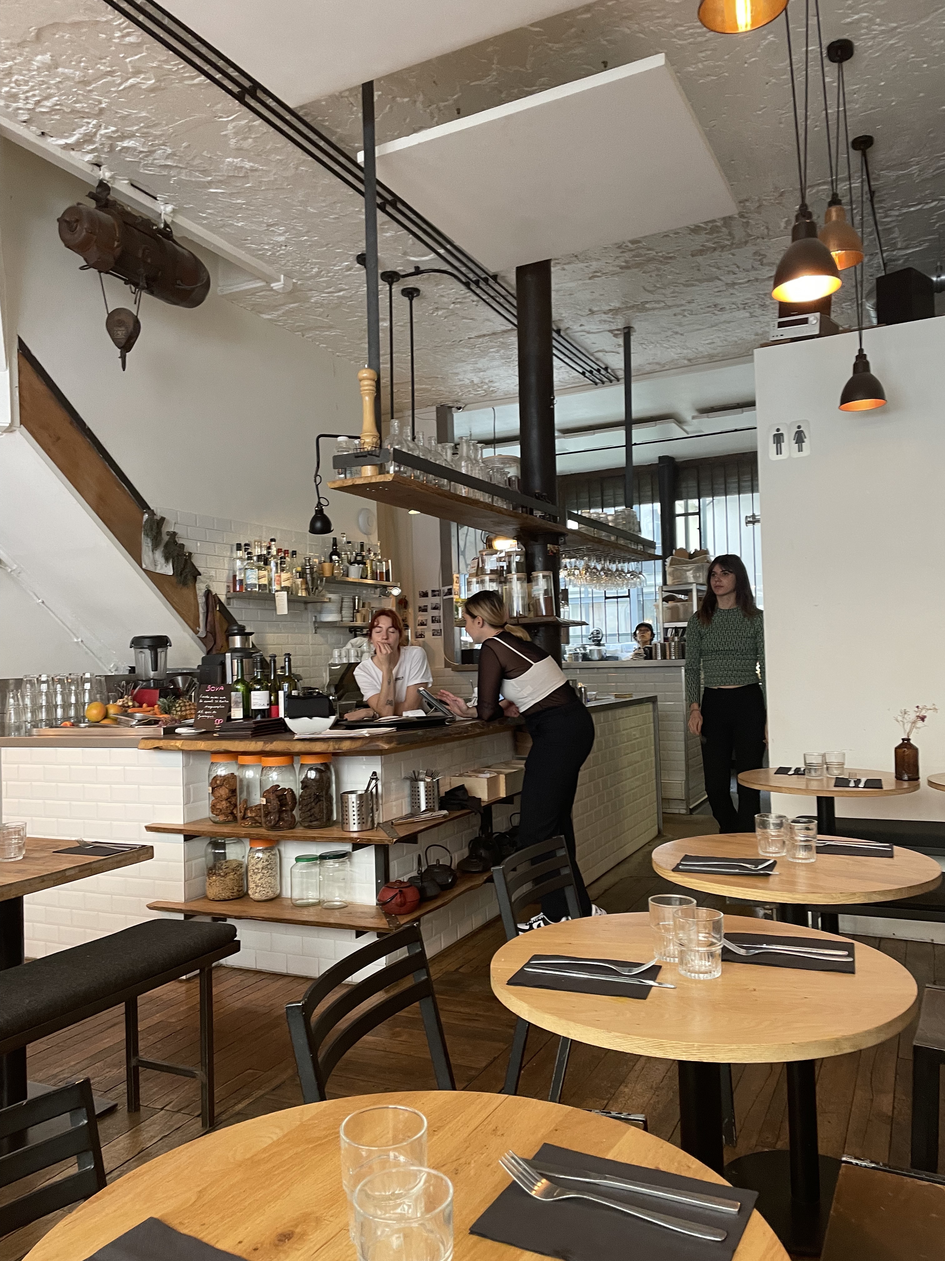 Super restaurant! Nourriture delicieuse meme pour des non vegans. Je conseille le samedi matin pour un brunch tranquille. Le dimanche il faut absolument reserver et c'est tres bruyant/bondé. Une adresse a tester absolument!
