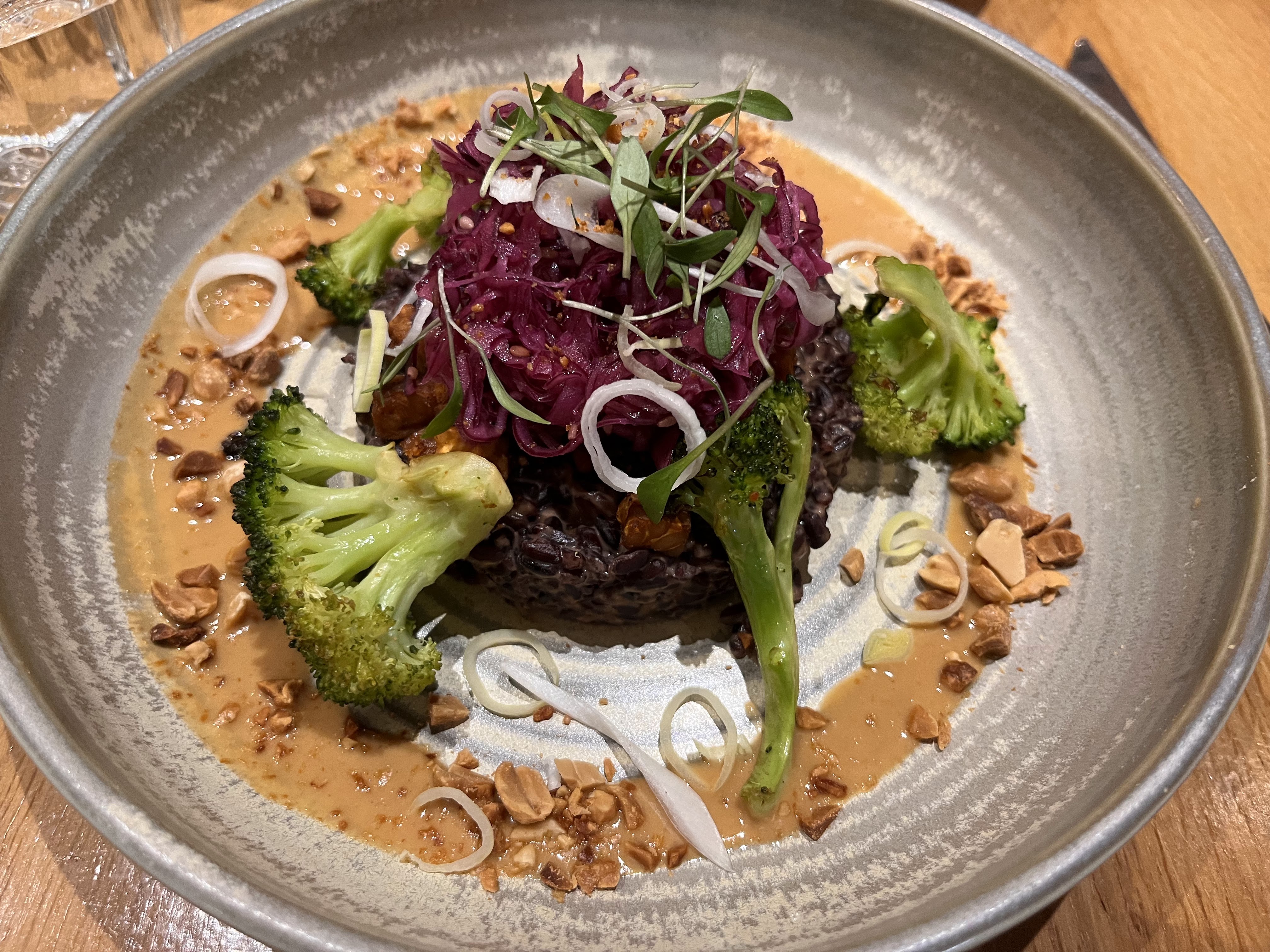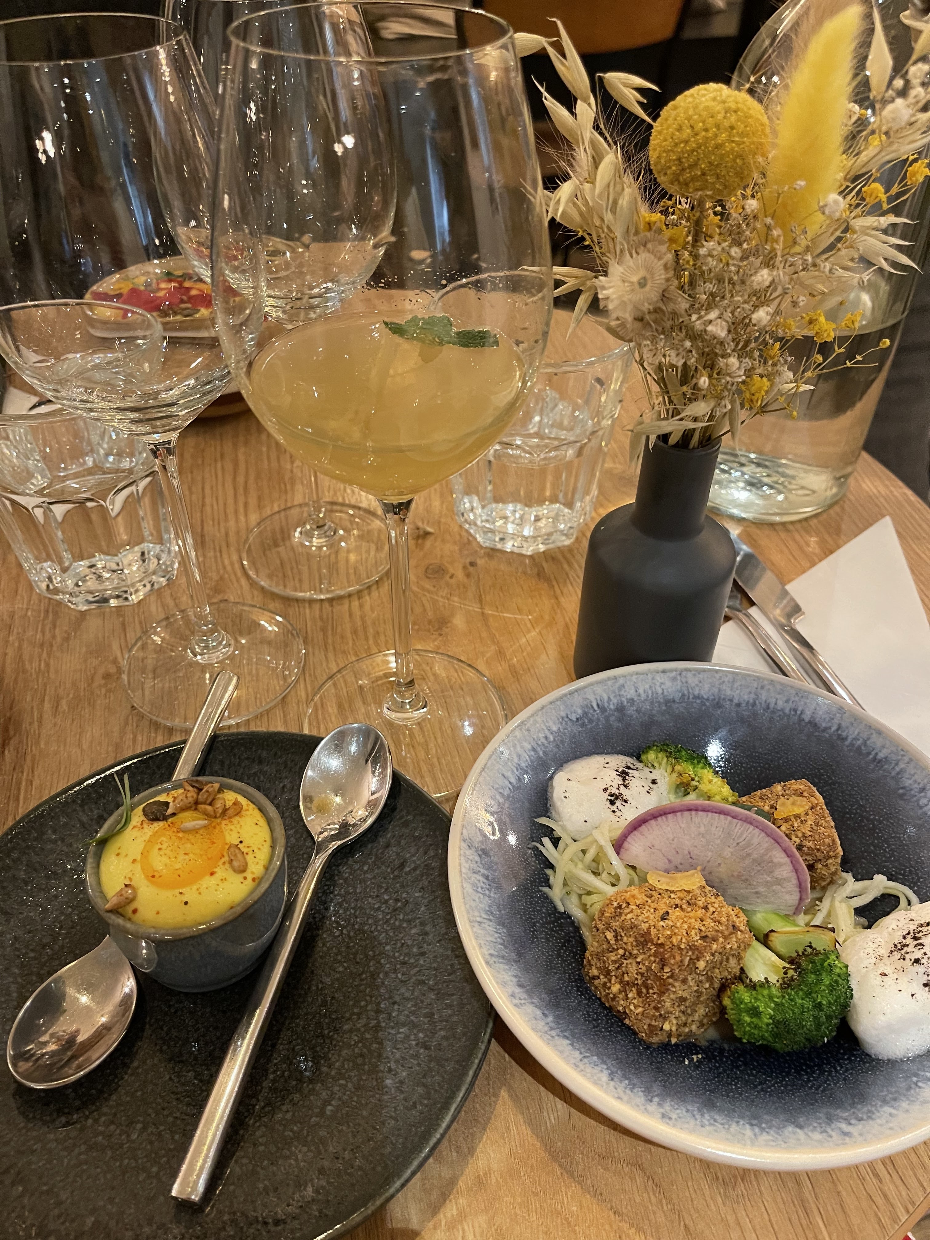 Très bonne cuisine, créative et goûteuse. Service agréable Juste un peu bruyant mais il y avait beaucoup de monde À recommander aux amateurs de gastronomie vegan