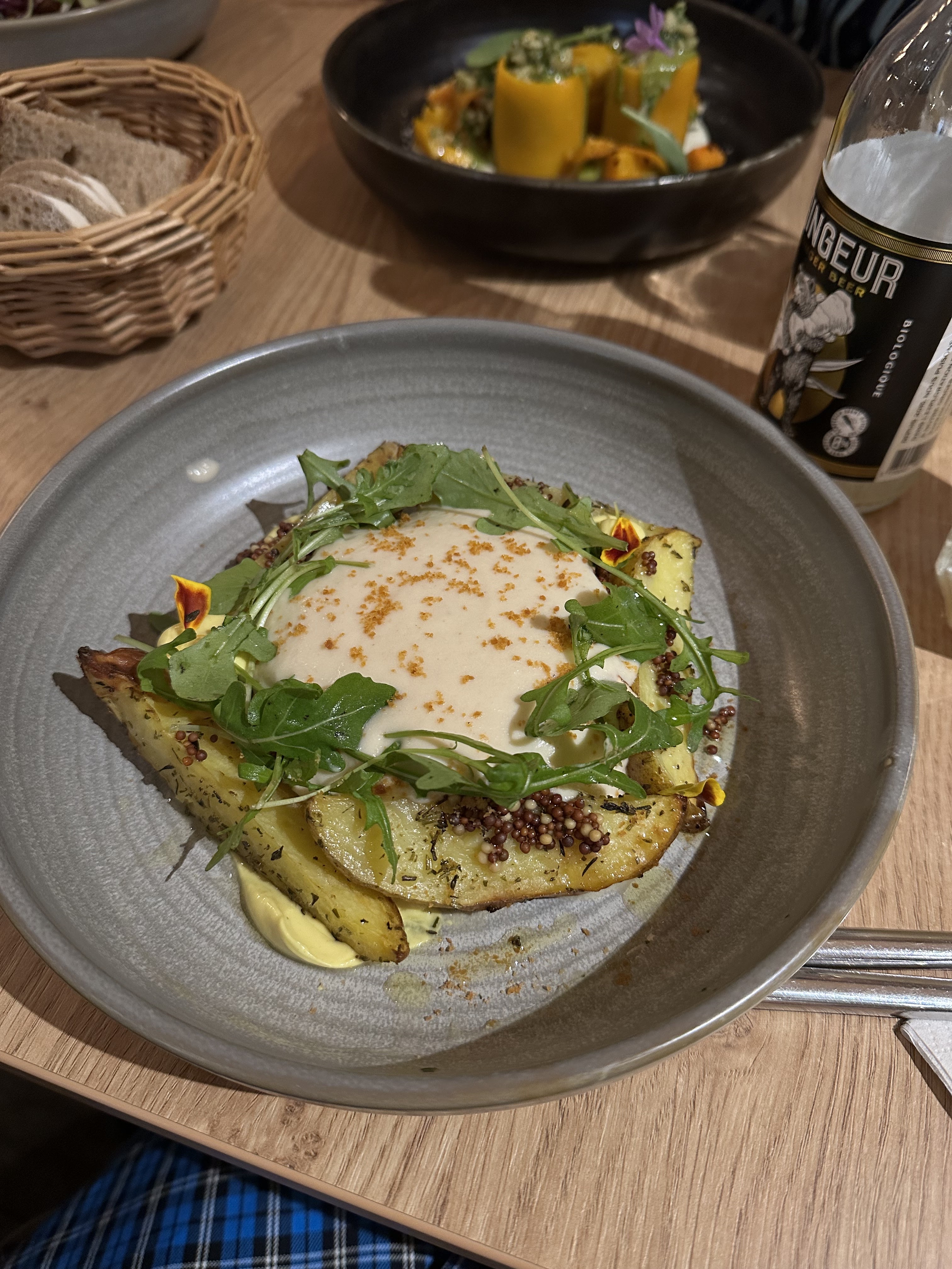 Ce restaurant est une véritable surprise. Nous avons pris: Tacos de sucrine, pomme de terres écrasées, potimarri roti, plateau de fromage. Jolie presentation et toutes les sauces excellentes, qu'on veut absolument finir avec le bon pain qui accompagne. Les plats sont tous deux excellents, de même que l'entrée. Riche en goûts avec des ingrédients très variés sur chaque plat. Le plateau de fromage était une vraie surprise. C'est la 1ère fois qu'on goûte à du fromage végétal et c'était tellement exquis. Les 3 types de fromage étaient excellents et avaient tous un goût particulier, spécifique. Ils se tartinaient tous très facilement, et le fromage bleu en particulier, on a vraiment du mal à croire que c'est végétale tellement ça ressemblait à du vrai fromage sur tous les aspects (sauf l'odeur bien sûr). Aussi, ma mère a également savouré le pain au point qu'elle a pris la part que je n'ai réussi à finir. Expérience INCROYABLE !