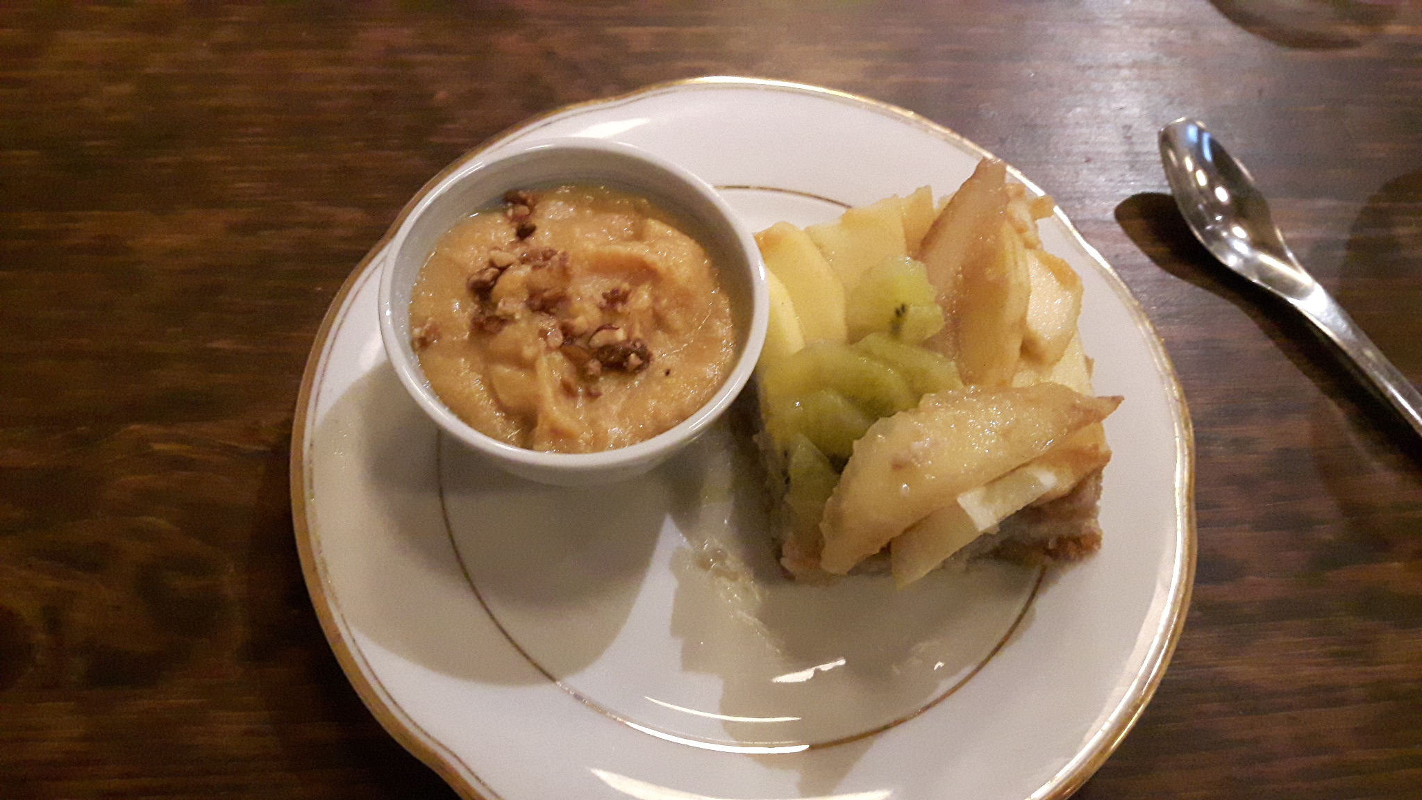 Lieu très agréable et service attentionné Plat : belle présentation mais quand même très déçue ... 17euros pour quelques tranches de potimarron et surtout des lentilles (mon plat quotidien de quand je ne veux pas trop dépenser...) ça fait cher et... j'avais faim mais je n'ai pas réussi à finir.. très très très sec ... Dessert : le gâteau rhubarbe-figue est très bon ! Une addition salée pour peu de gourmandise