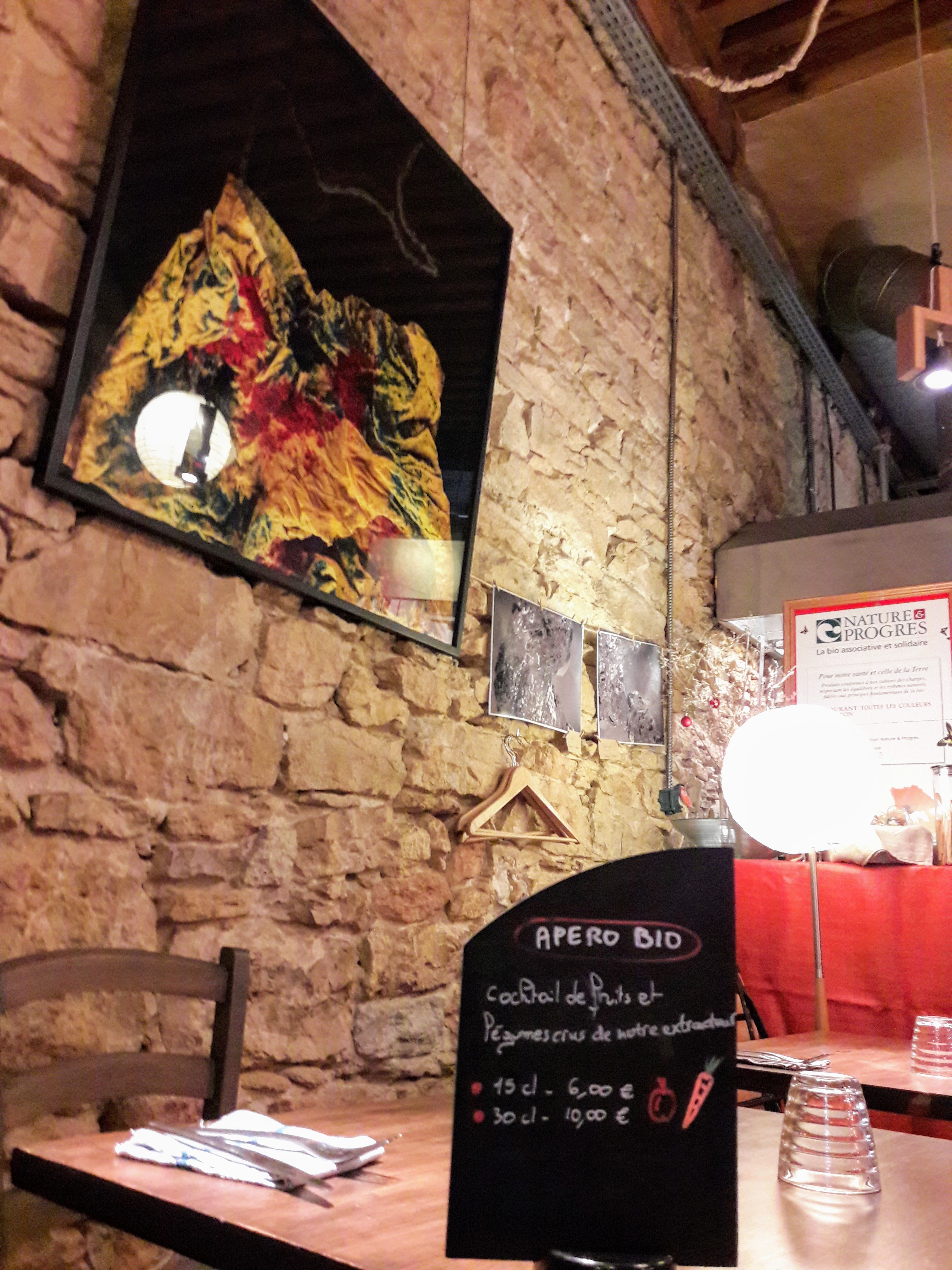 Très bonne soirée passée dans ce restaurant bio et veggie! Le couscous de boulghour aux légumes était particulièrement succulent. Ambiance très sympa et décor original.