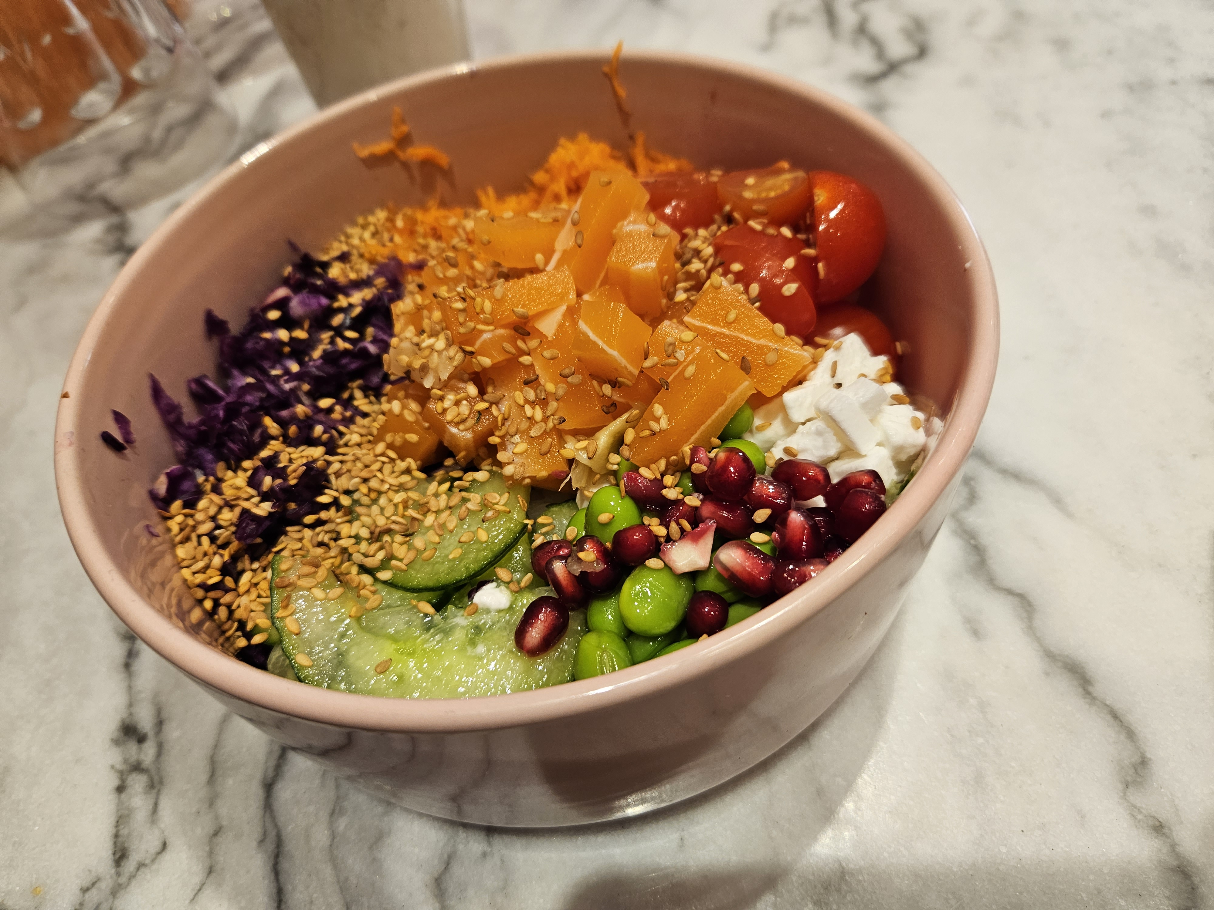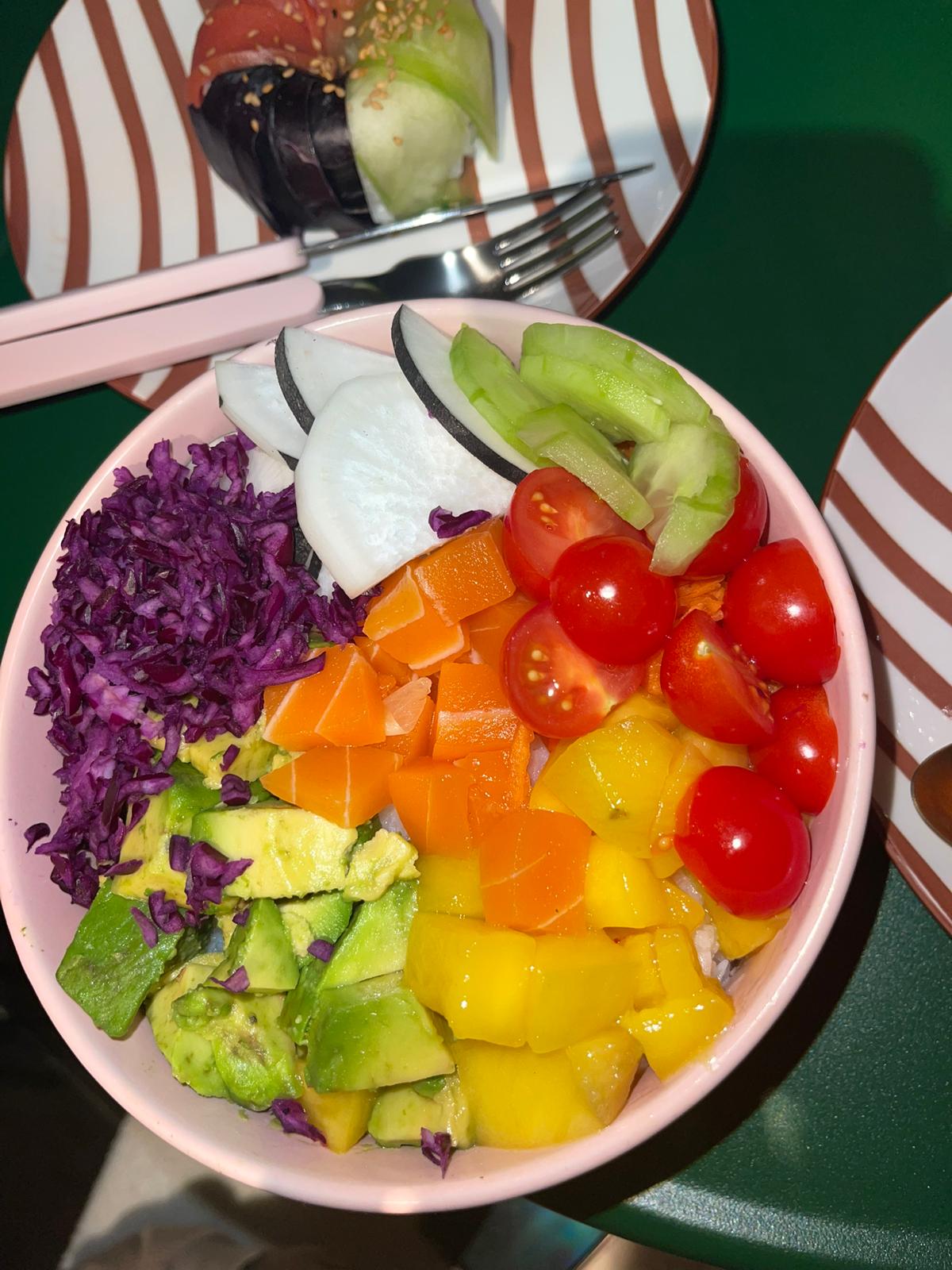 Super poke bowl ! Le saumon avait l’air vrai, il est fait avec le tapioca pour donner une texture délicieuse. Beaucoup de légumes et service rapide !
