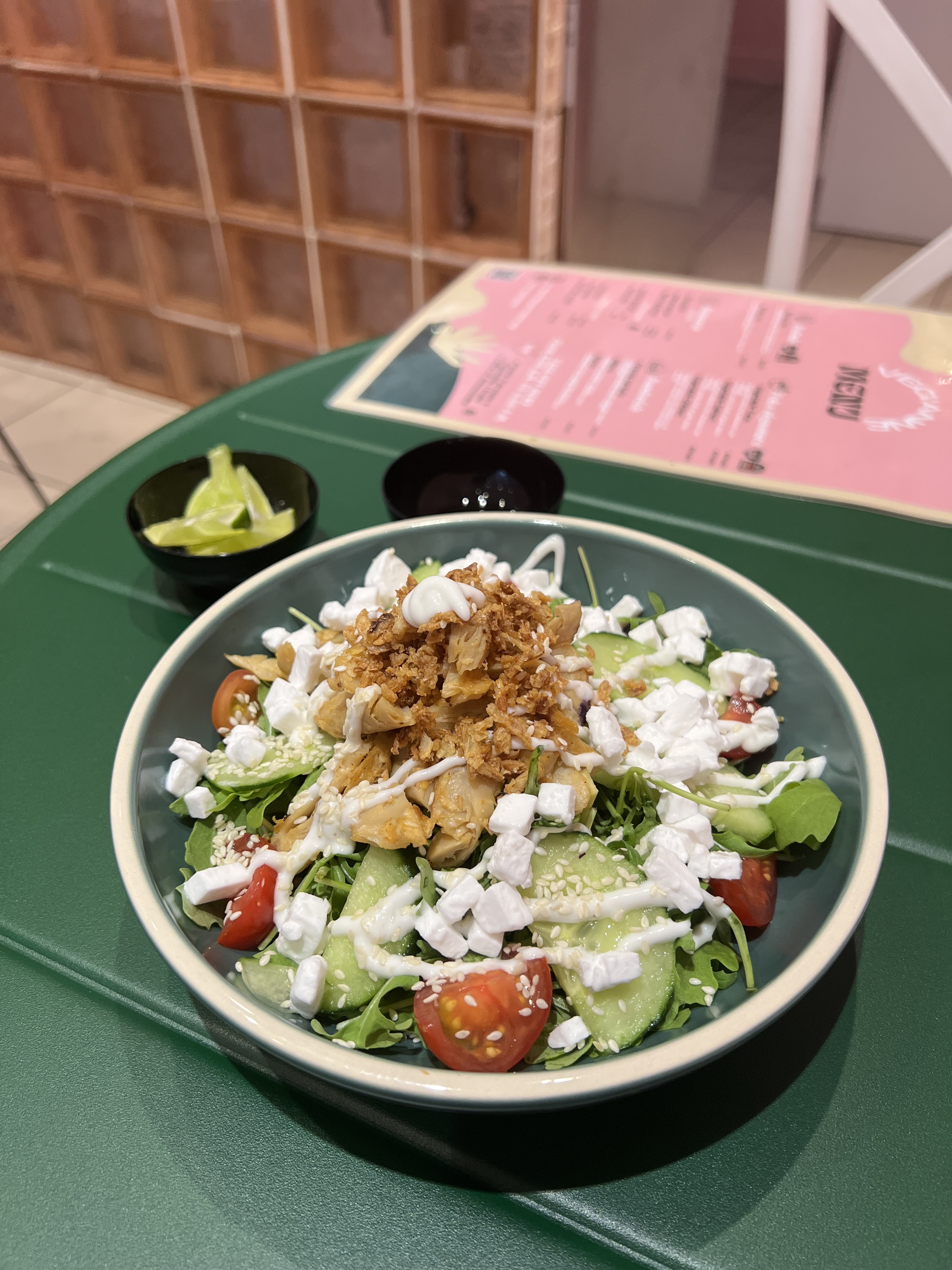 C est la première fois que je venais, j ai pris un poke poulet vegetal, les produits sont frais, c est copieux, au top j adore. La deco toute rose surprend. Je reviendrai c était tres bon