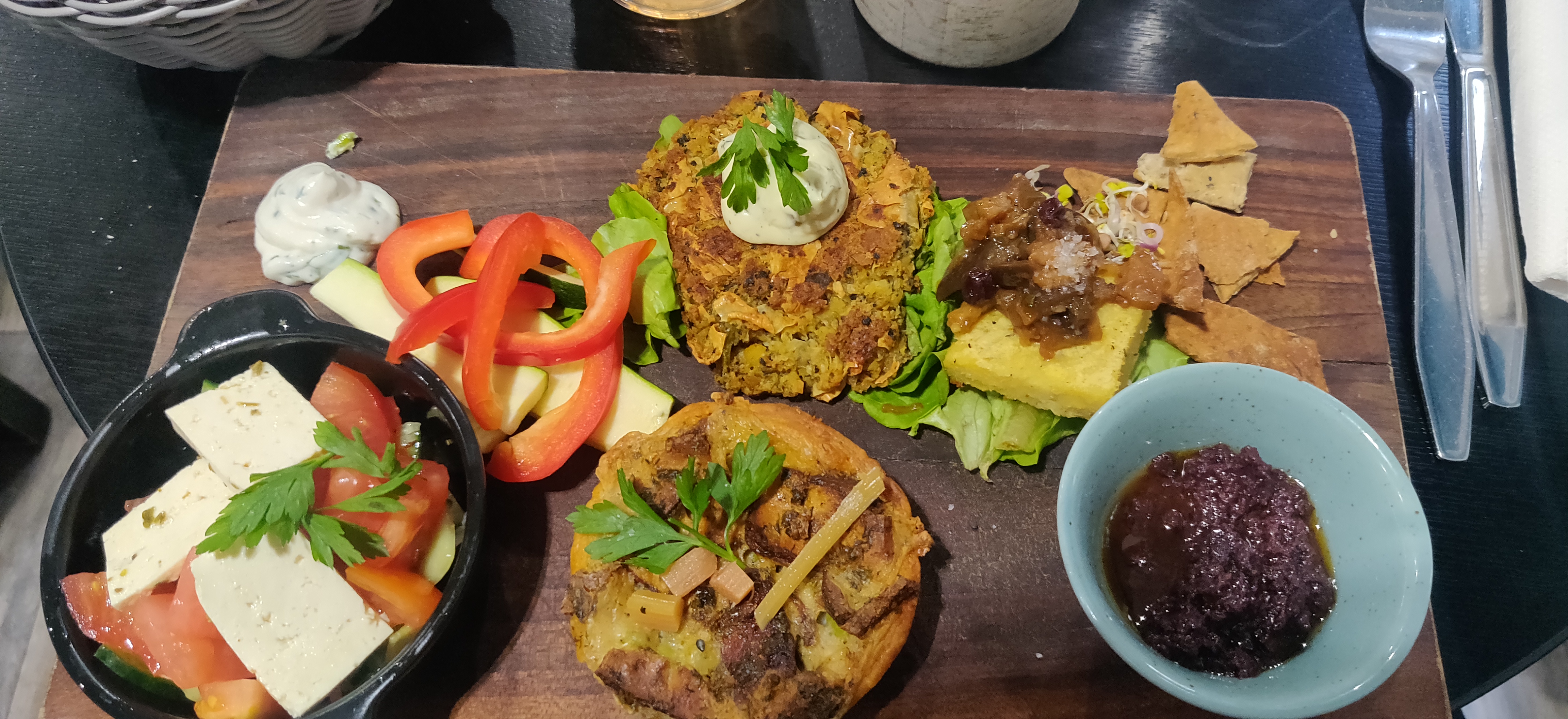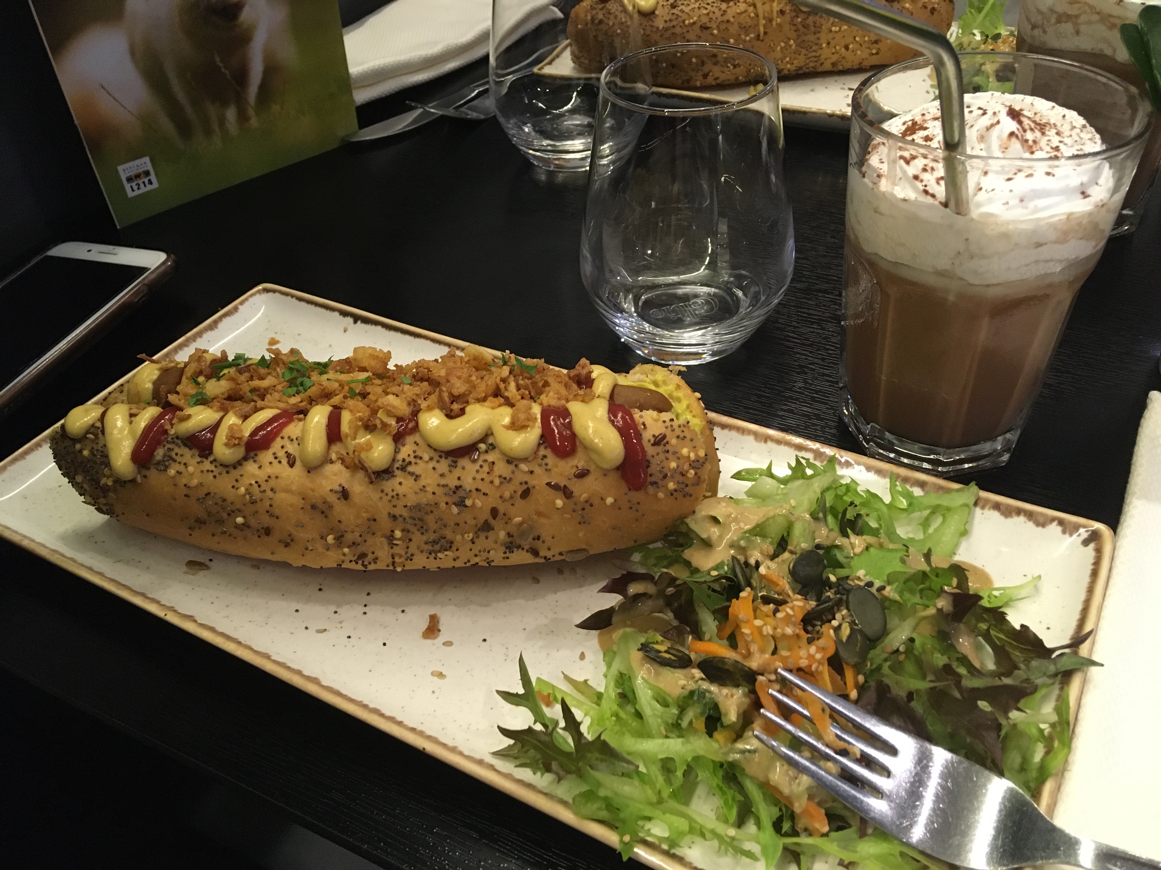 Première expérience vegan pour nous. Nous avons commandé la planche méditerranéenne et le Hot Vog. Ce n’était pas mauvais, mais pas spécialement bon non plus. Si vous n’êtes pas vegan, vous ne trouverez certainement aucune plus-value. Par contre, bonne surprise pour la forêt noire qui est légère et délicate.