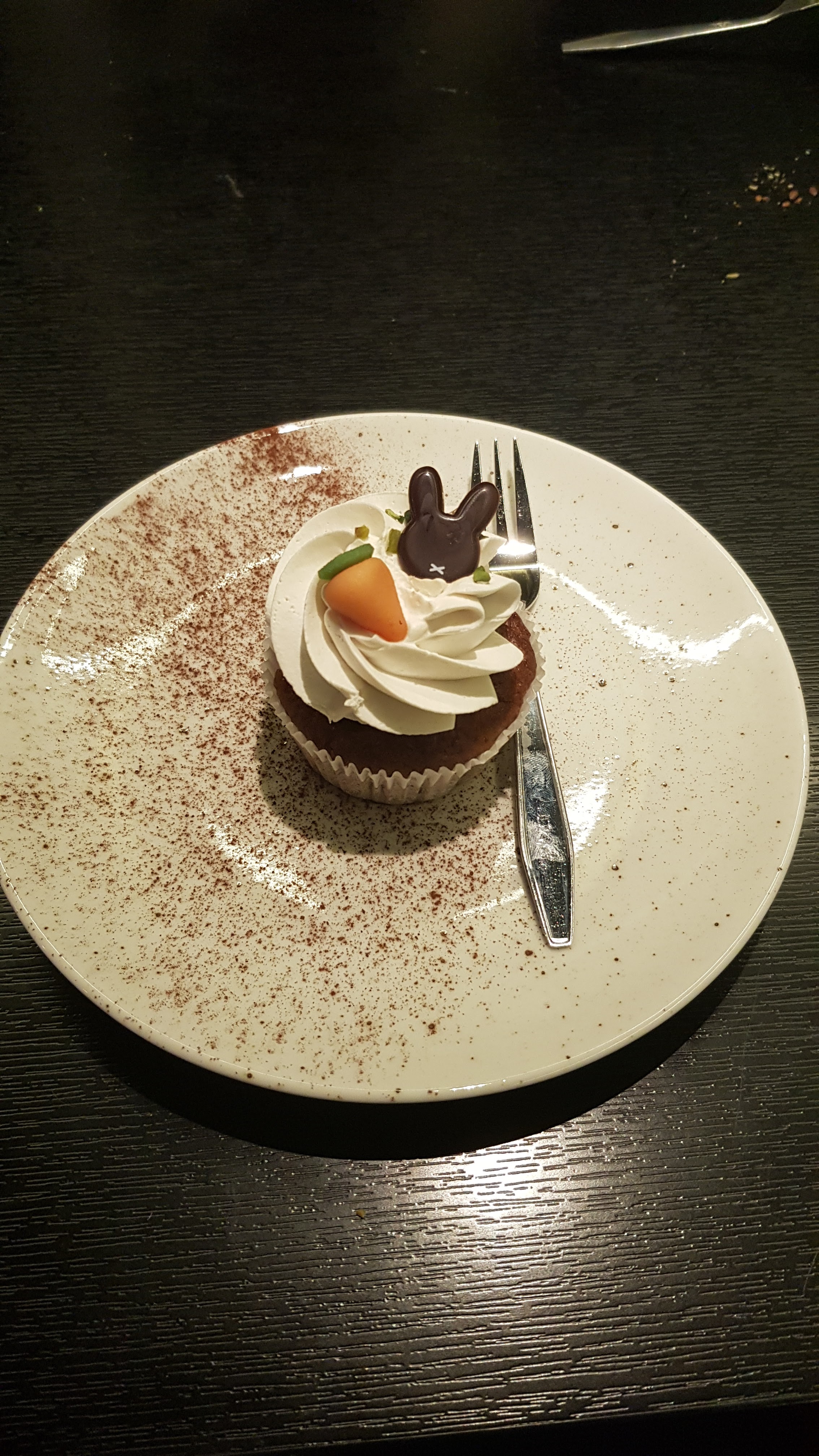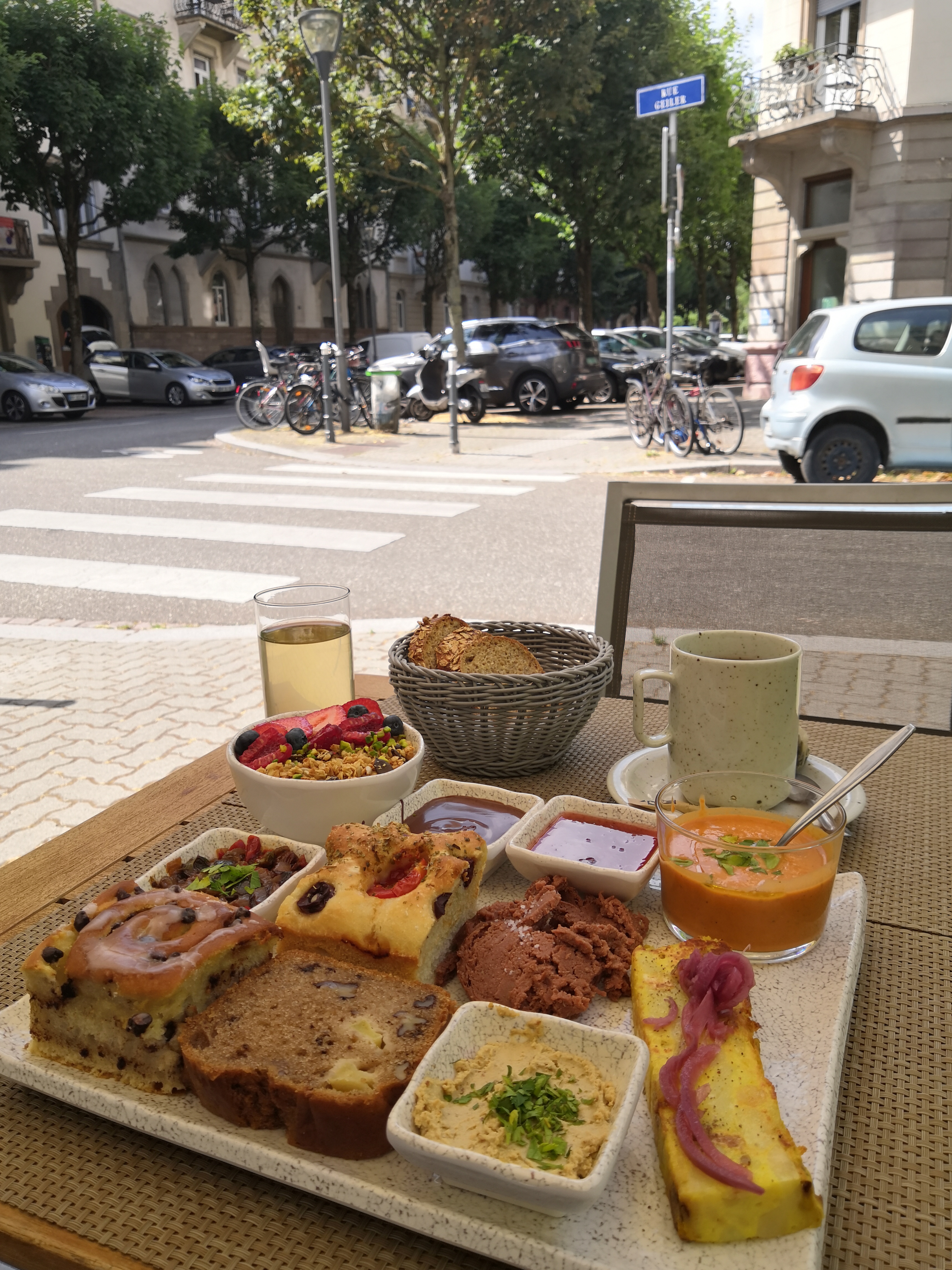 Le lieu est agréable, le service également et c'est le paradis dans l'assiette. La suggestion d'automne au quinoa est juste à tomber. Croquant, fondant, frais, parfumé... Parfait. J'ai pris en dessert un cupcacke praliné. C'est le meilleur que j'ai jamais mangé. J'avais un énorme appriori positif avant de venir et j'en sors convaincue. Je reviendrai à chaque fois que je serais à Strasbourg.