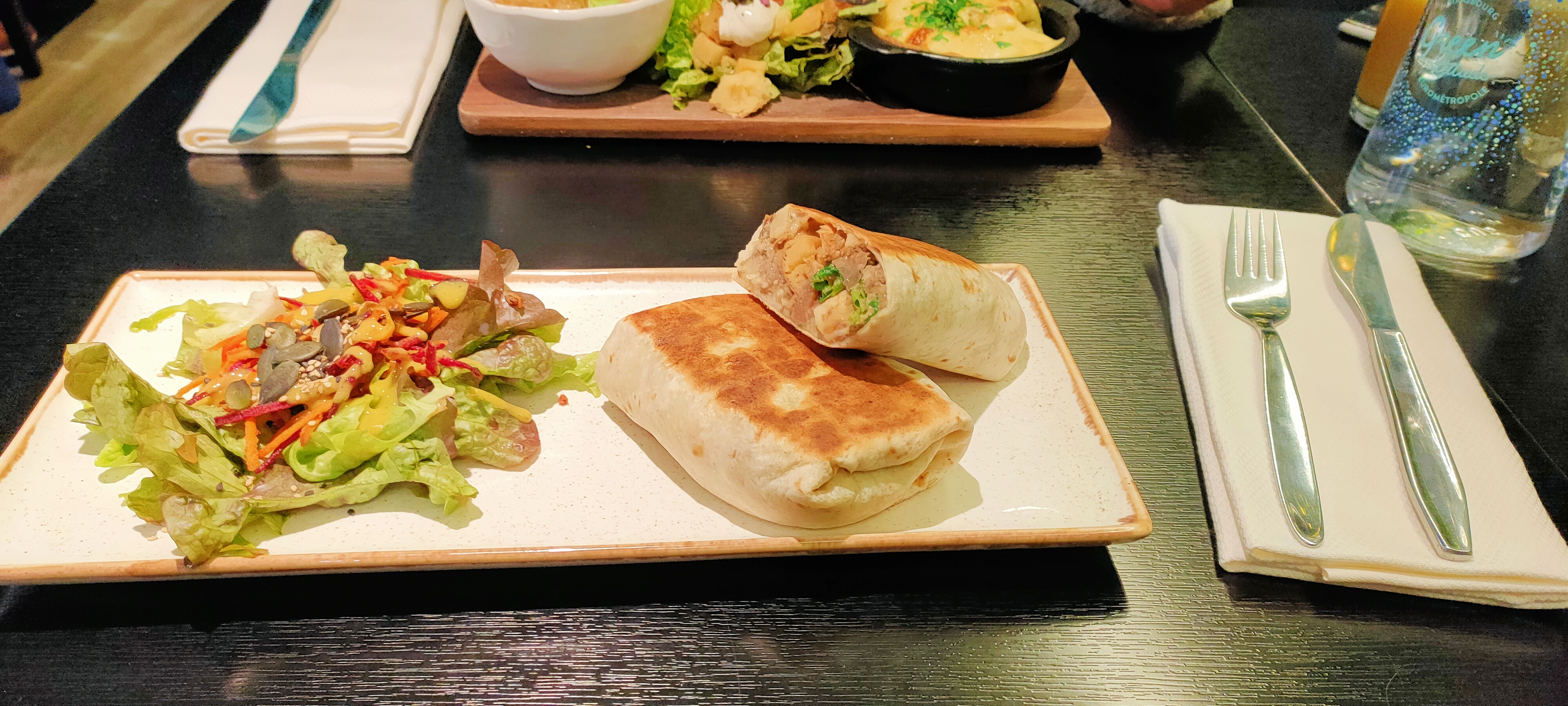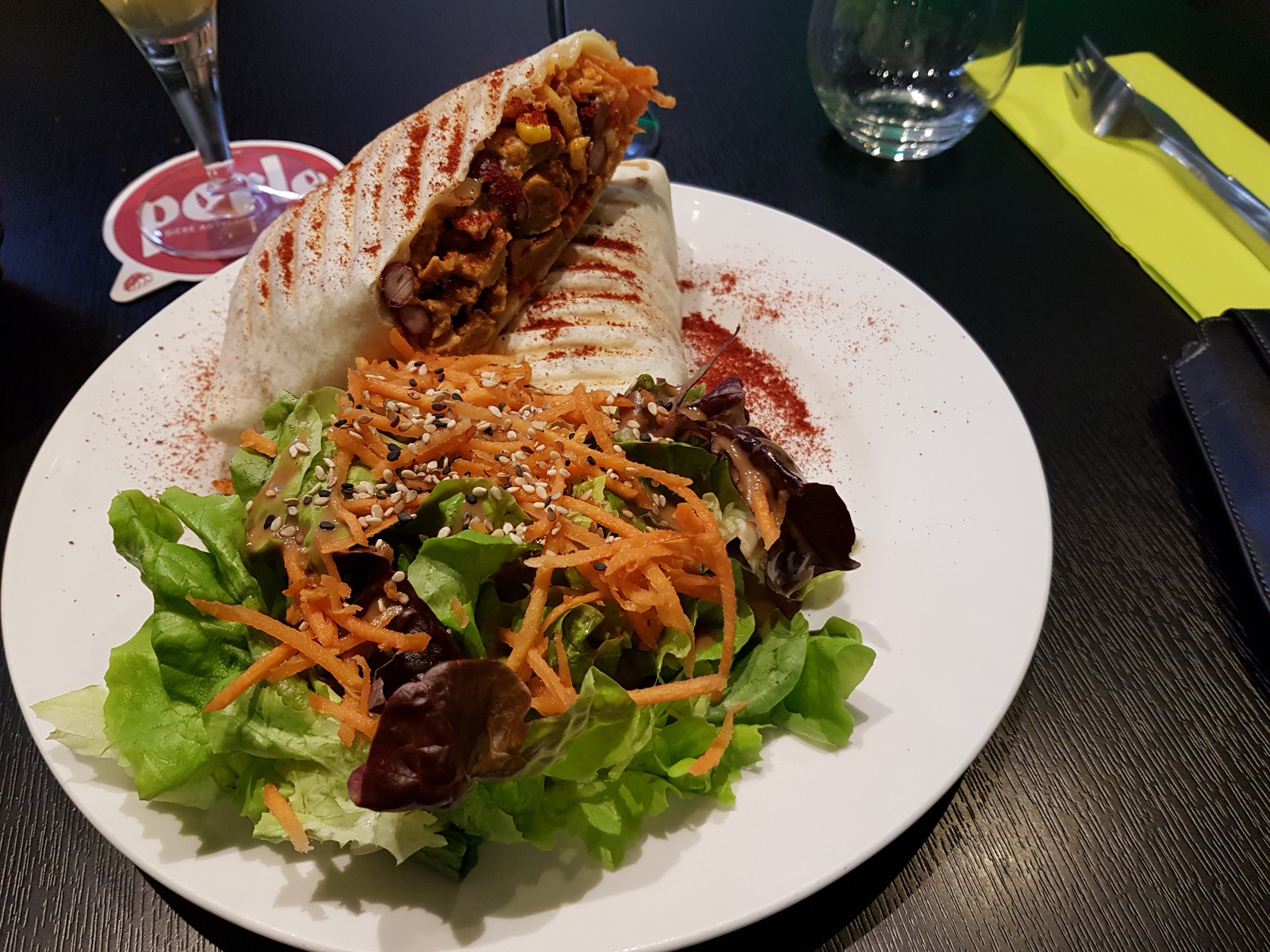 Pas vegan convaincu, j'ai apprécié la cuisine pour les saveurs. Ne pas prendre peur sur les entrées légères. Les plats sont fins, aux saveurs subtiles mais également consistant (photo du Wrap). Je recommande. Le service gagnerait avec un deuxième serveur. Le seul présent était débordé et du coup peu locace...