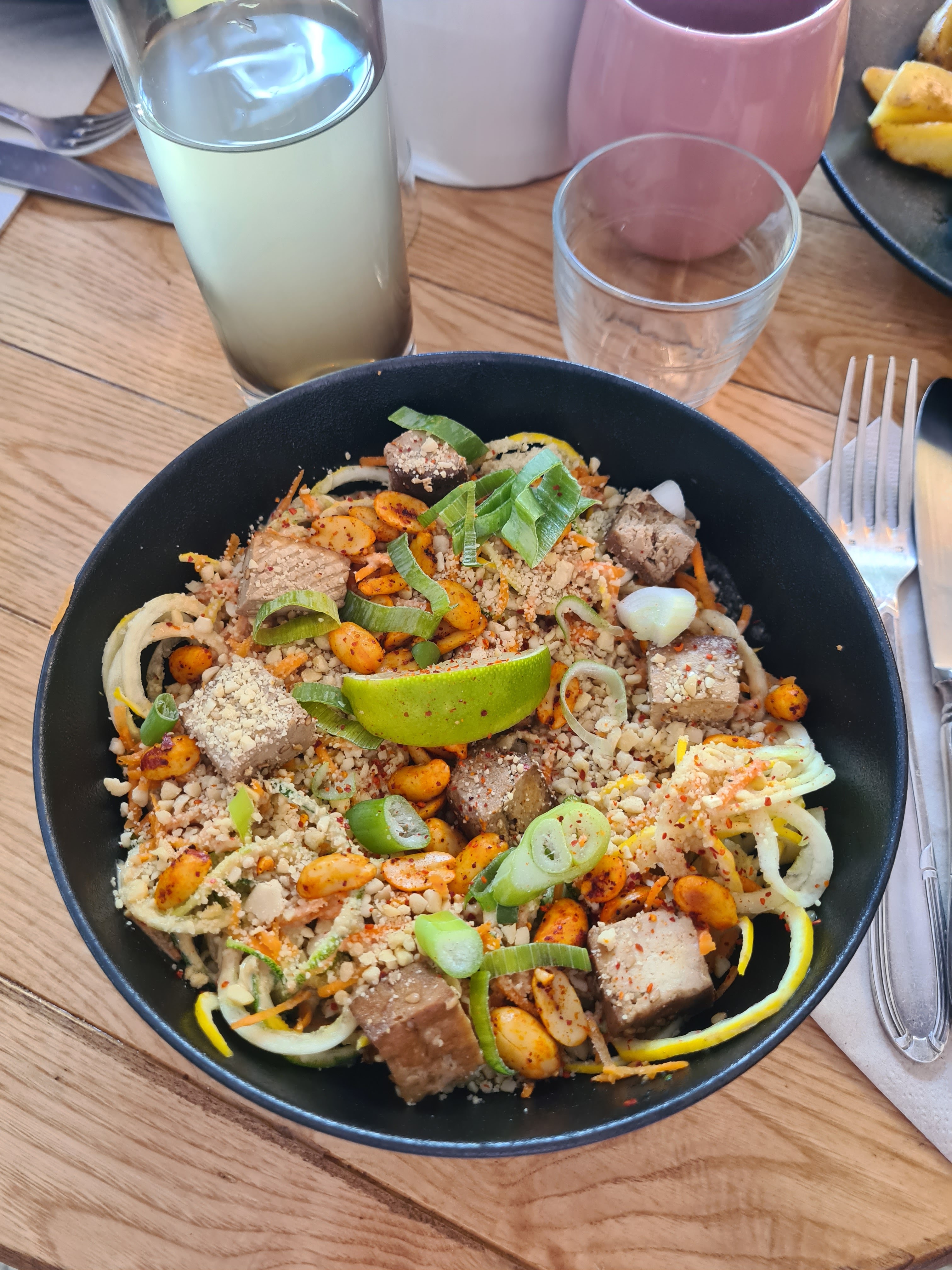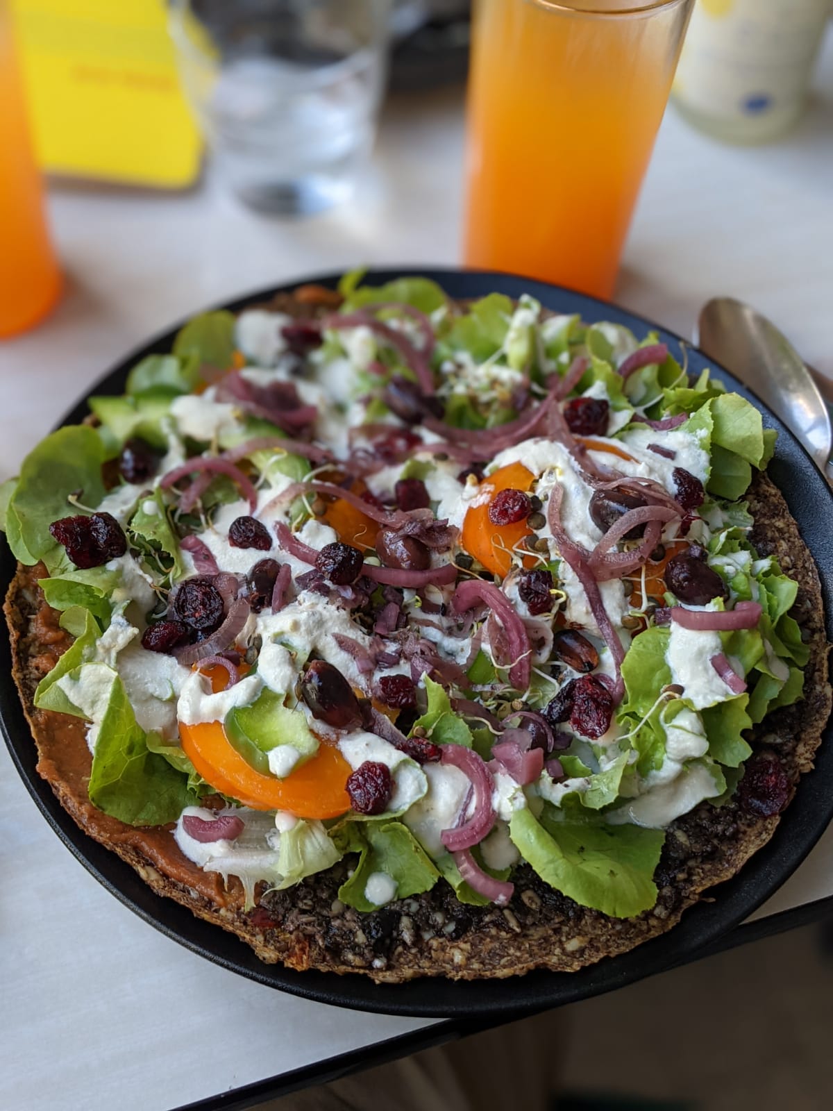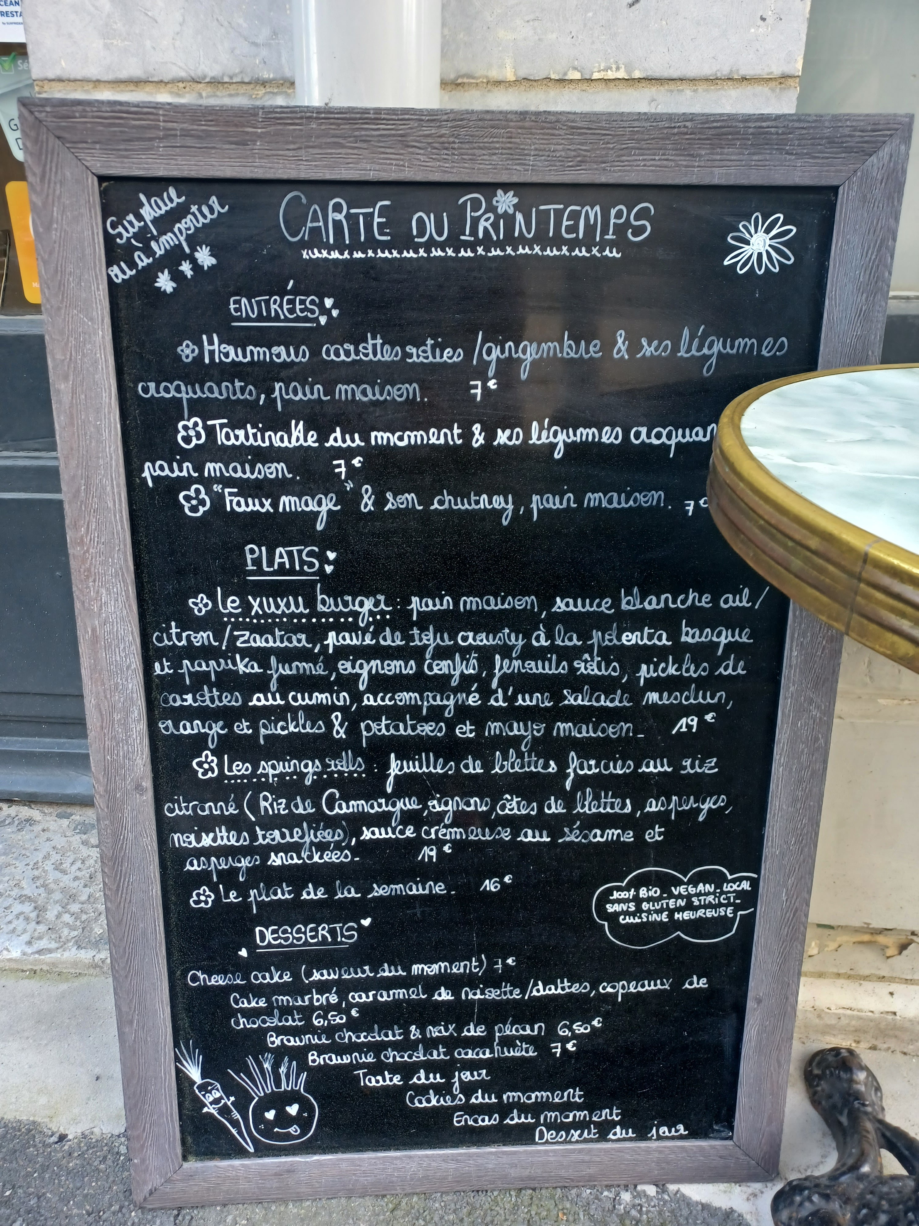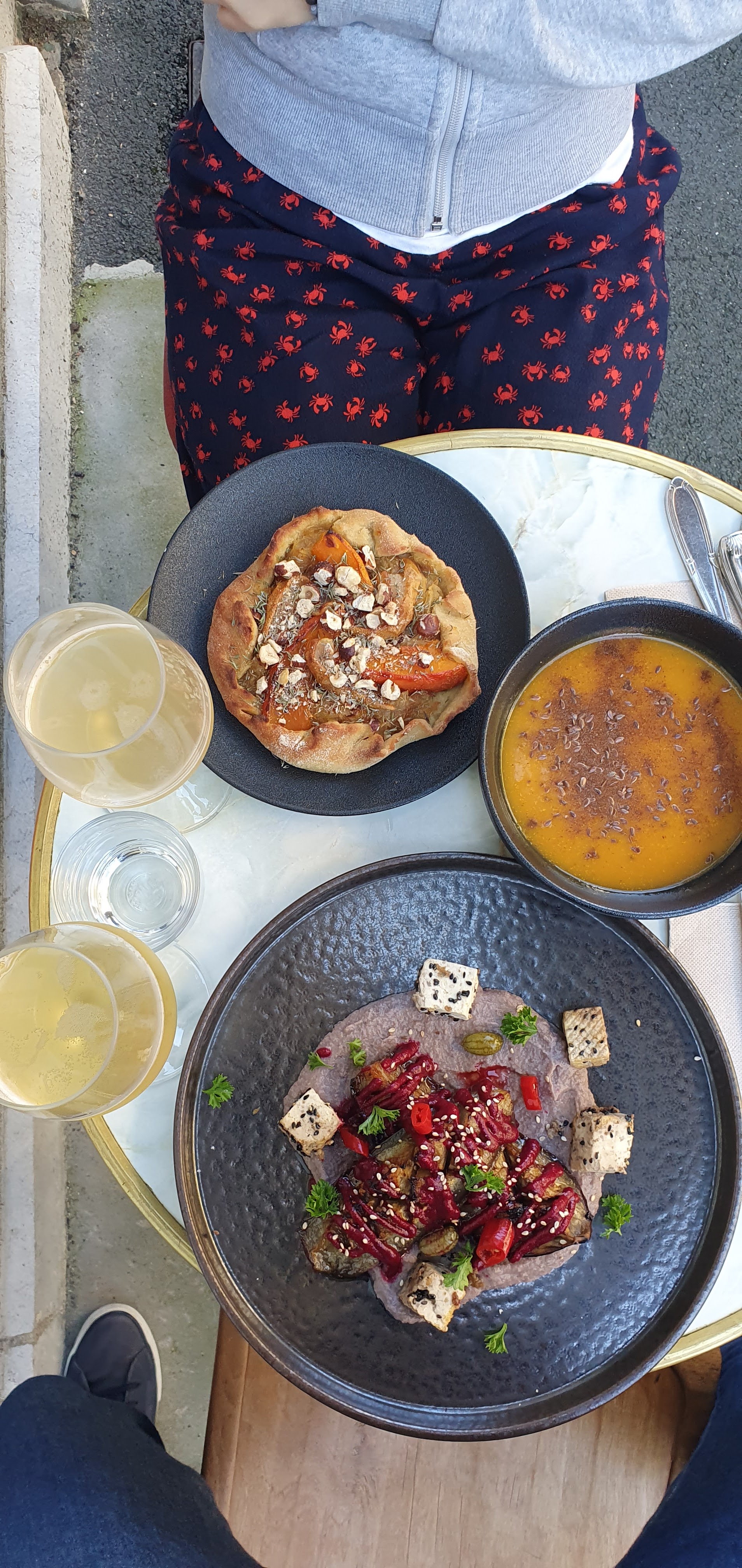 De passage sur Biarritz, on était curieux de manger végétalien. On s'est régalé ! Nous ne sommes toujours par convaincus par le tofu, mais agréablement surpris par le fauxmage et fan des cookies.