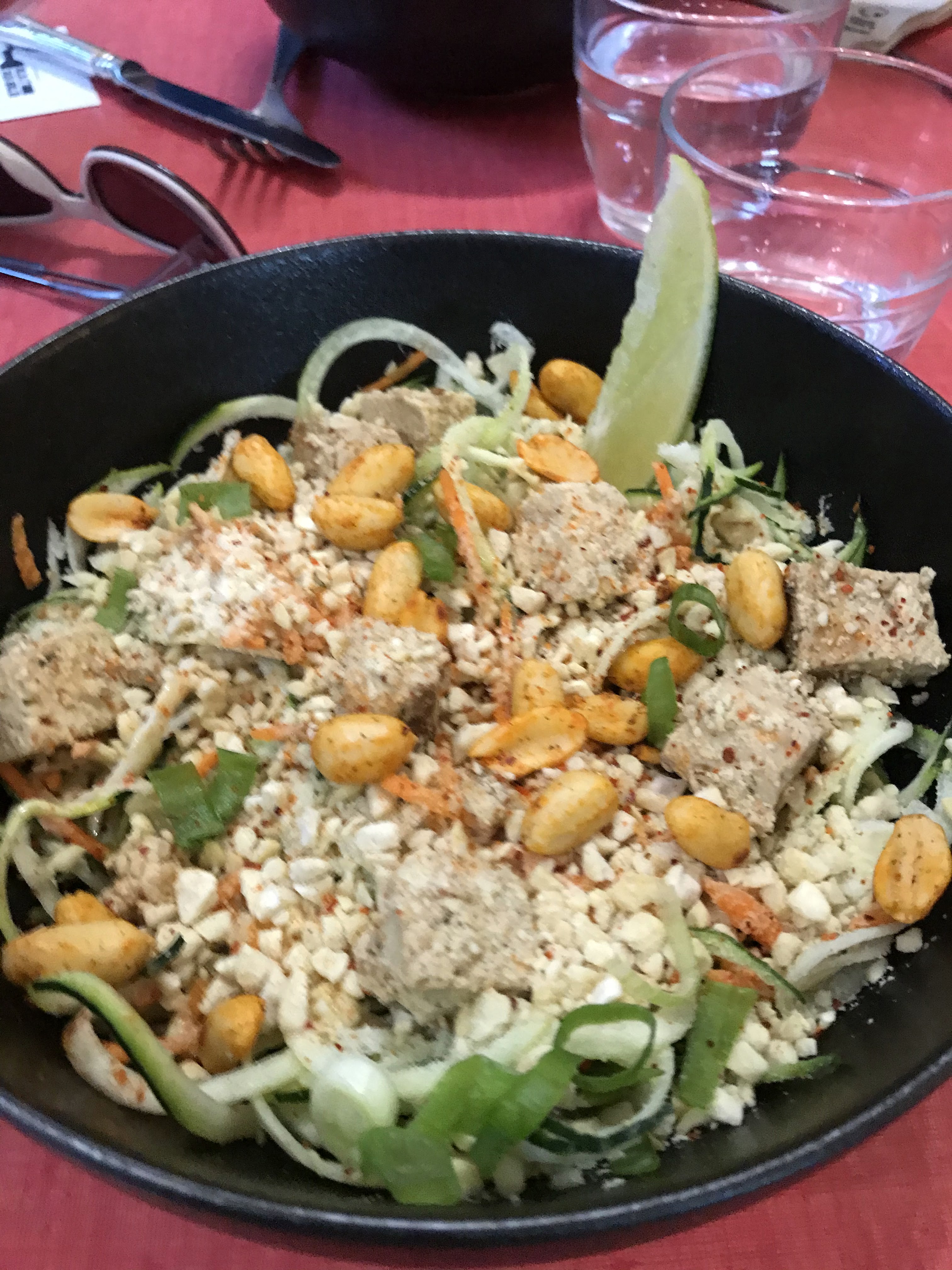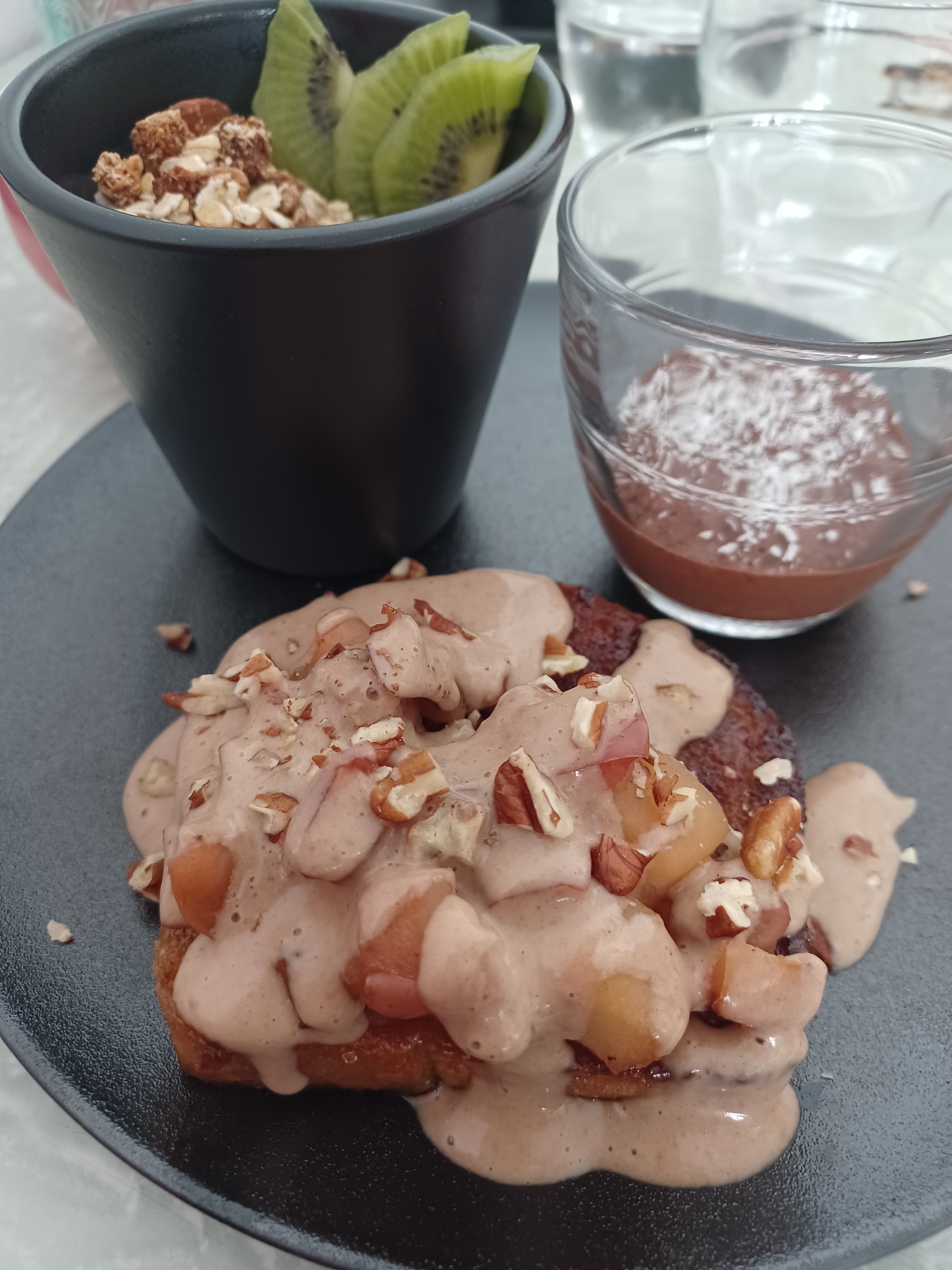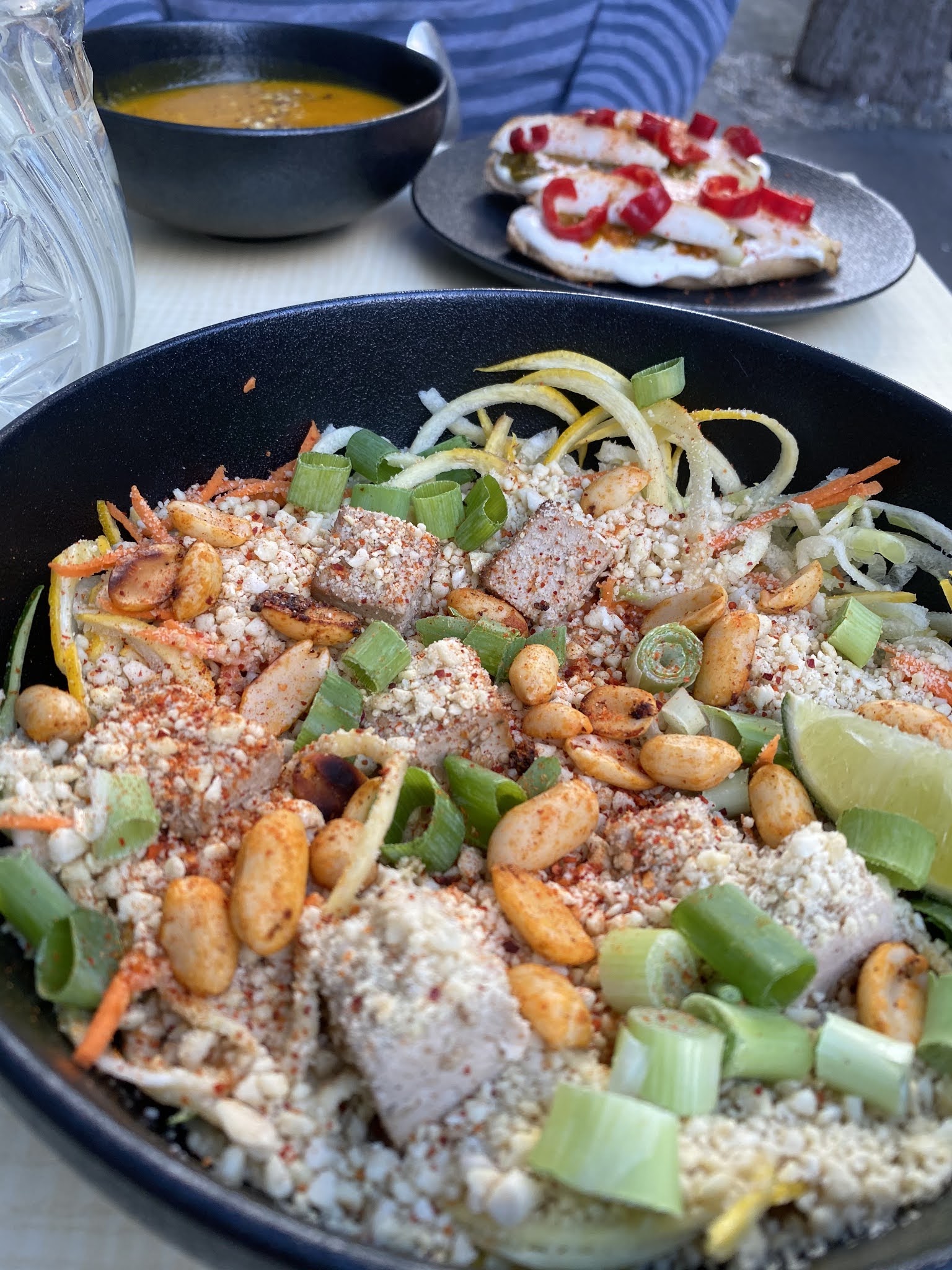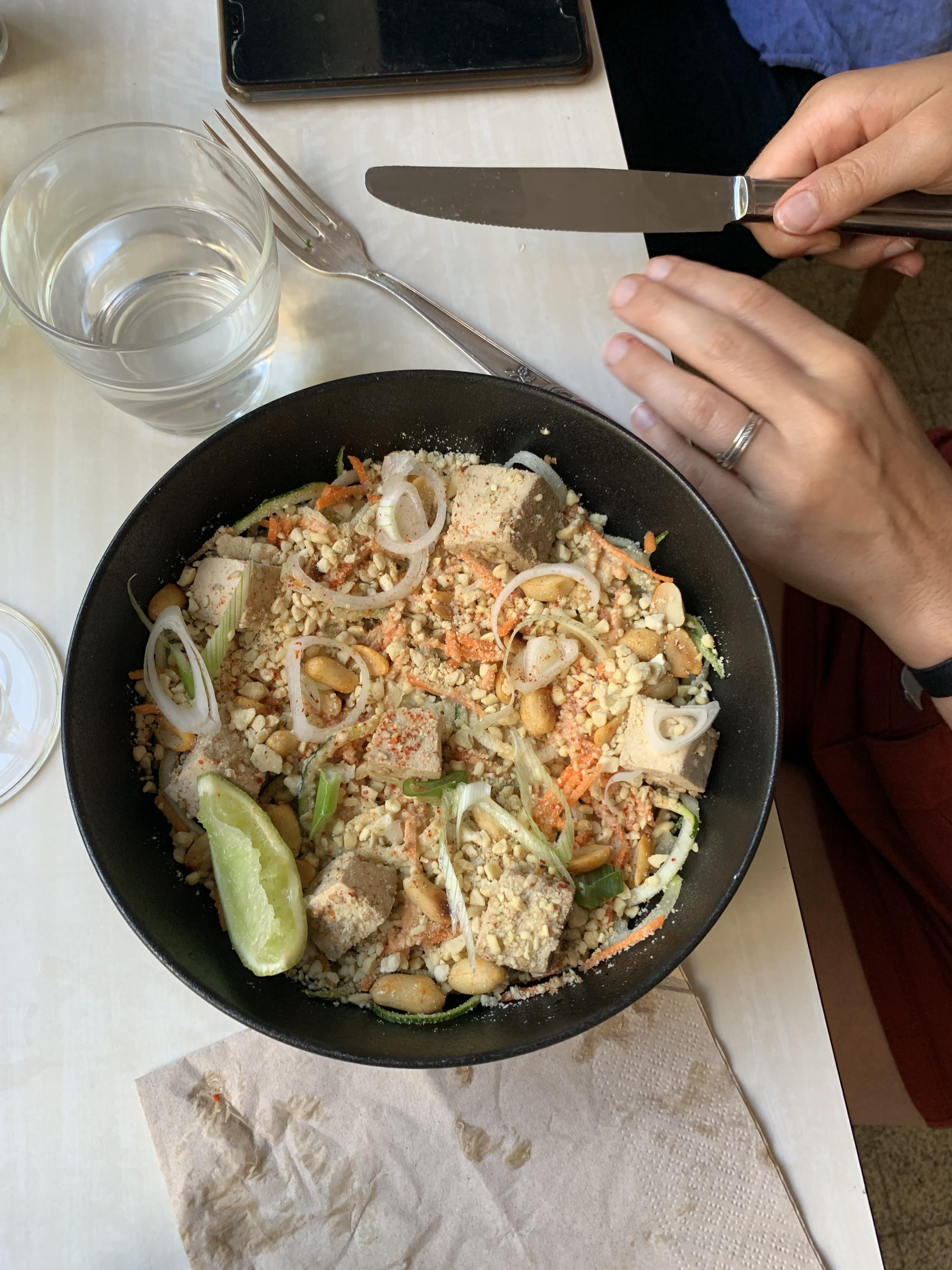 De passage sur Biarritz, on était curieux de manger végétalien. On s'est régalé ! Nous ne sommes toujours par convaincus par le tofu, mais agréablement surpris par le fauxmage et fan des cookies.