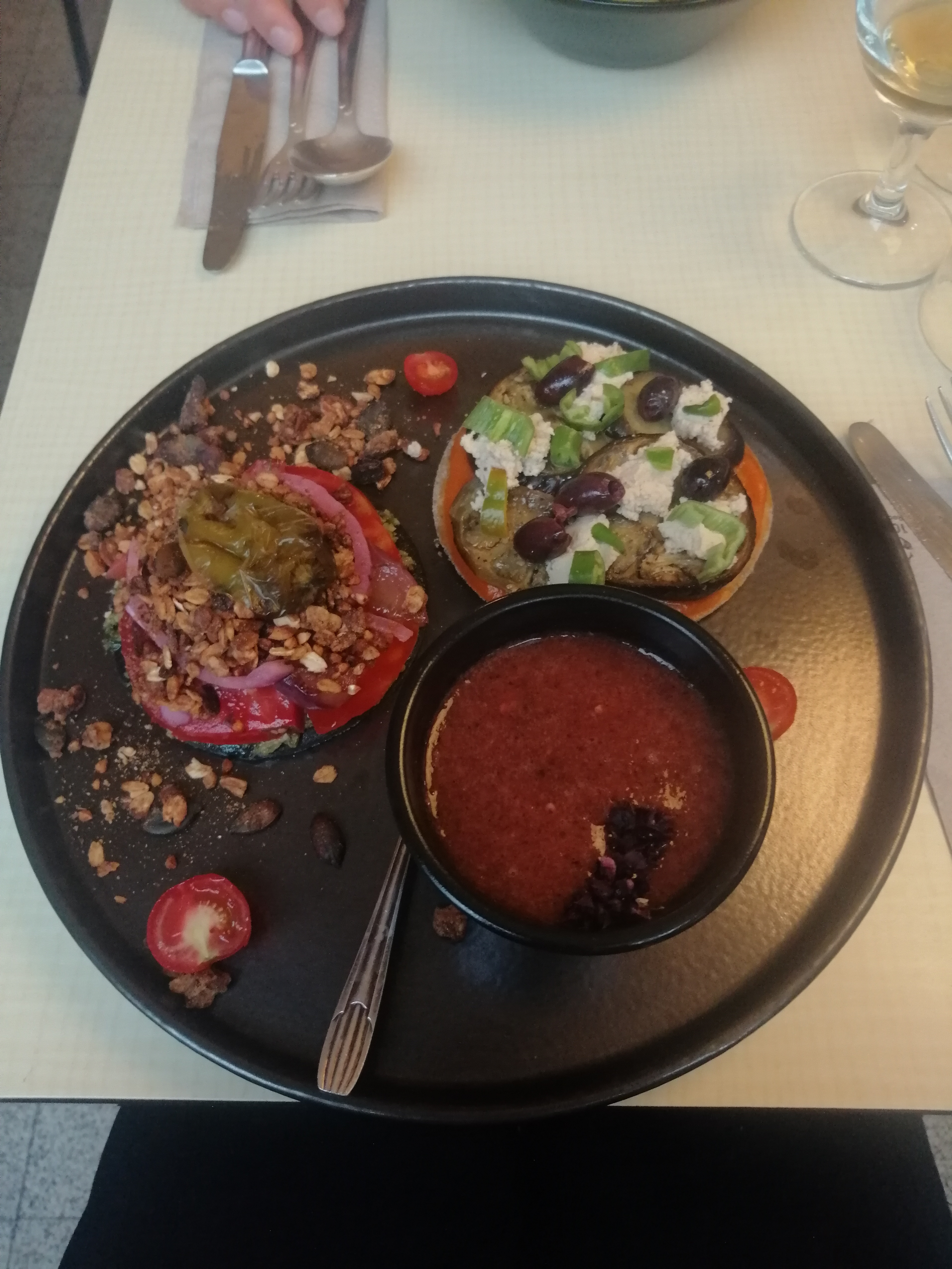 Vous connaissez le célèbre dessin animé Ratatouille ? Et bien ici aussi c’est l’explosion des papilles ! ! Le mélange des saveurs est aussi étonnante que délicieuse. Je ne connais pas l’histoire de ce restaurant mais on y ressent la passion et surtout la parfaite entende des deux personnes. Le choix des plats et desserts est juste impressionnante et on a envie de tout prendre pour goûter. Bref un chouette lieu qui mérite VRAIMENT d’être découvert. Vegan, bio, sans gluten …… elles ont tout compris Je recommande