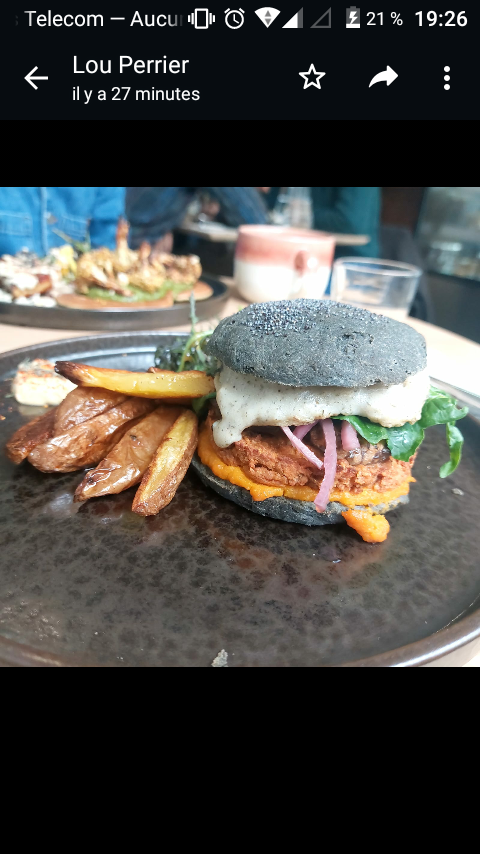 Cuisine vegan, fraiche et de saison, bio et créative. L'aspect sans gluten rend les pains/buns un peu denses mais l'ensemble était très bon et apporte une nouvelle touche.